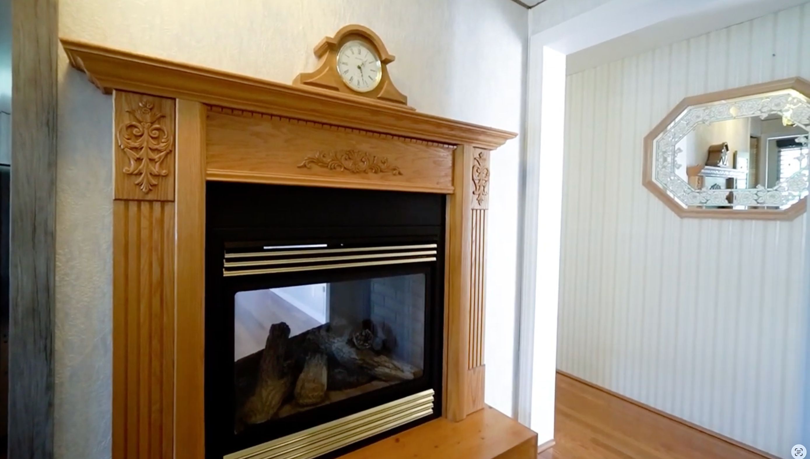 • Spacious living room with a cozy gas fireplace.