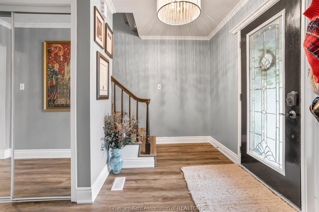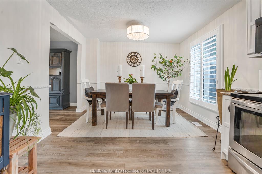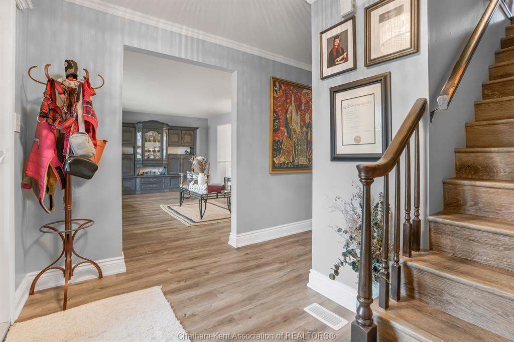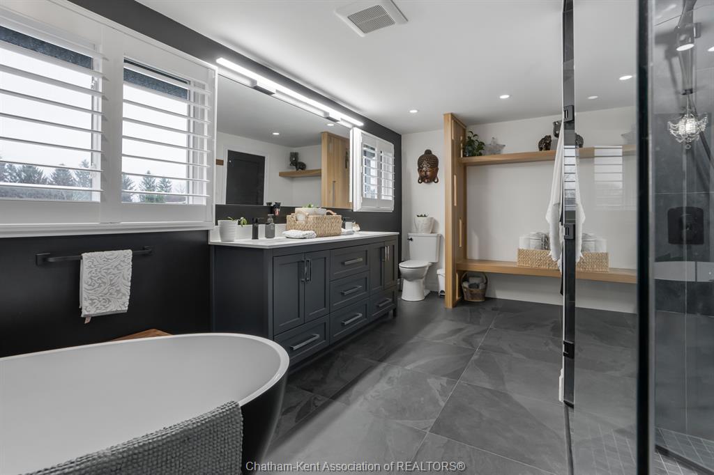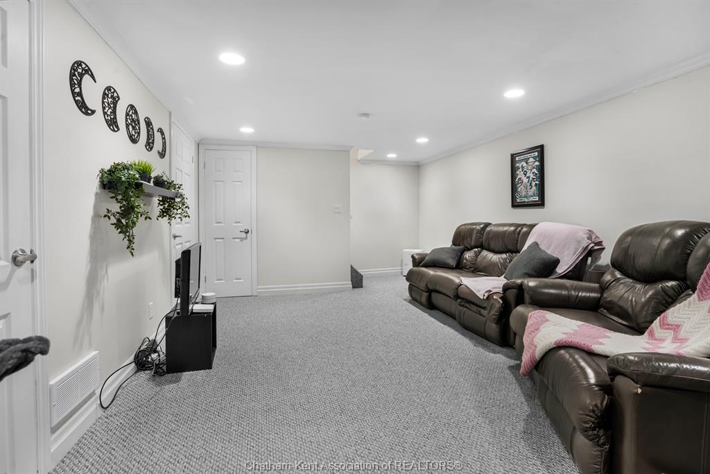 Welcome to this beautifully updated and truly turn-key two-storey home on chatham’s desirable north side—where thoughtful upgrades meet everyday comfort and backyard luxury. This inviting family home features 3 spacious bedrooms on the upper level and 2 well-appointed bathrooms, including a stunning, fully renovated main bath showcasing heated italian tile flooring, a heated custom glass shower with dual heads (including rainfall), a soaker tub, and a solid wood vanity topped with quartz and double sinks—your own private retreat. The main floor offers a warm and functional layout, highlighted by a cozy gas fireplace, updated powder room with a custom wood vanity and granite countertop, and modern finishes throughout. Recent upgrades within the past five years include a steel roof, siding, insulation, fascia, soffits, downspouts, front bay window, and garage improvements—providing peace of mind and long-term value. Downstairs, the fully finished basement expands your living space with a rec room with proper egress window, den (currently used as a home gym), additional shower, new carpet—perfect for guests or growing families. Step outside to your private backyard oasis featuring an in-ground pool with heater, updated pool systems, a charming gazebo, and a custom cedar privacy wall—ideal for entertaining or relaxing all summer long. Eavestrough covers add to the home’s low-maintenance appeal. With updated flooring throughout, solid wood interior doors, and meticulous care evident at every turn, this home blends style, comfort, and functionality in one exceptional package. A rare opportunity to own a move-in-ready home in a sought-after neighbourhood—don’t miss it.