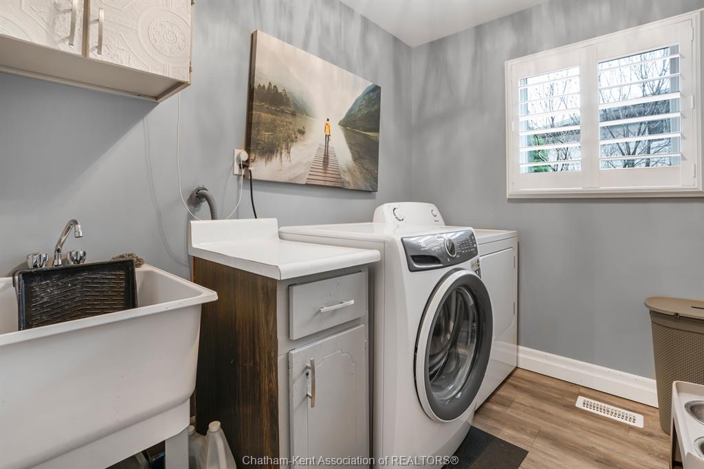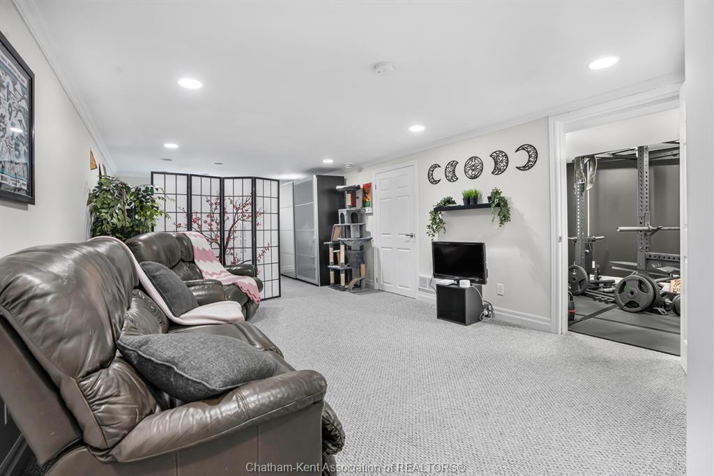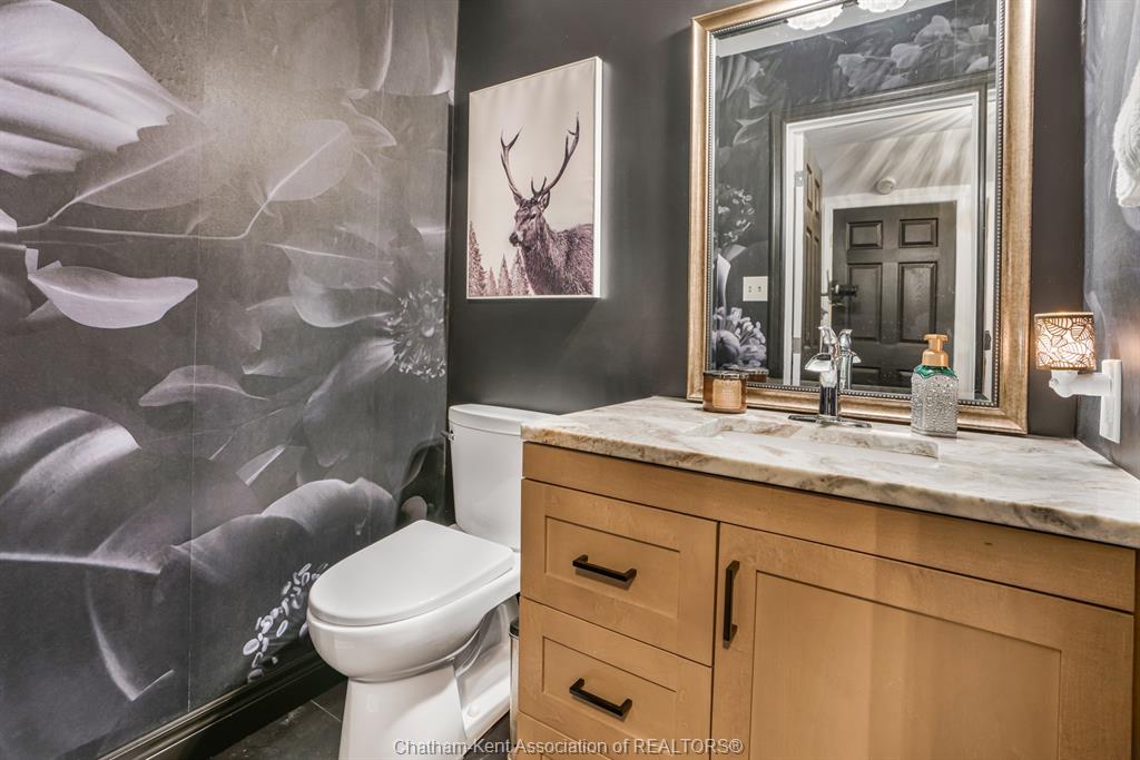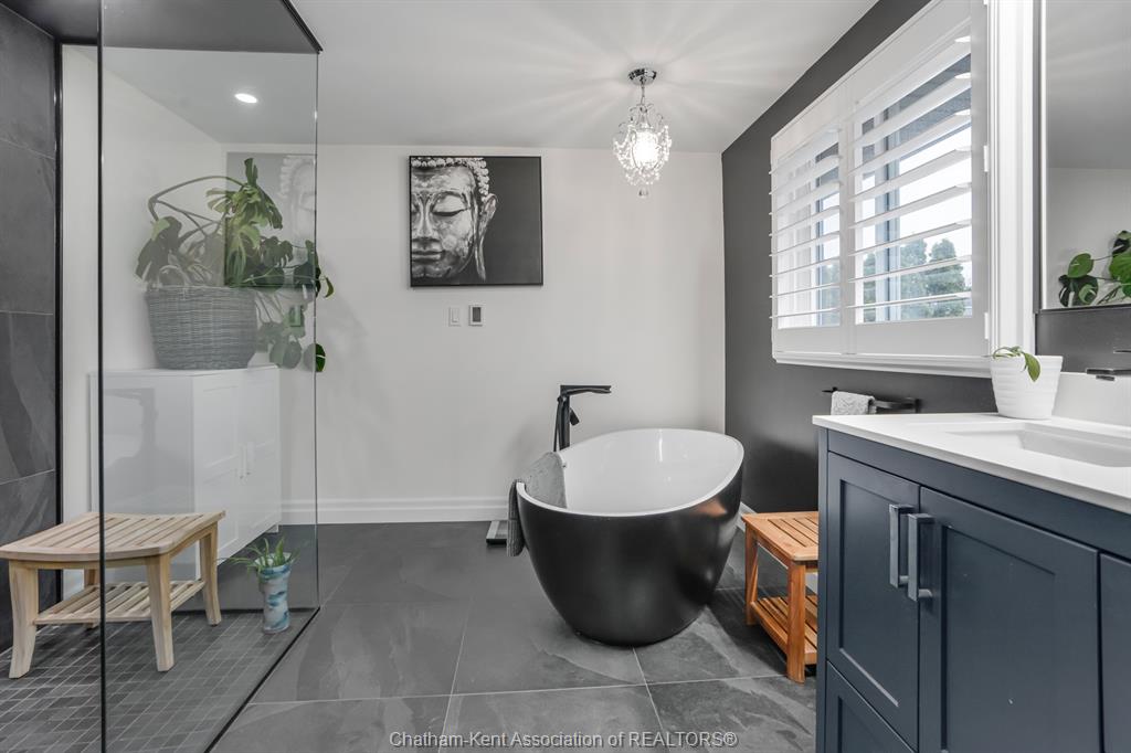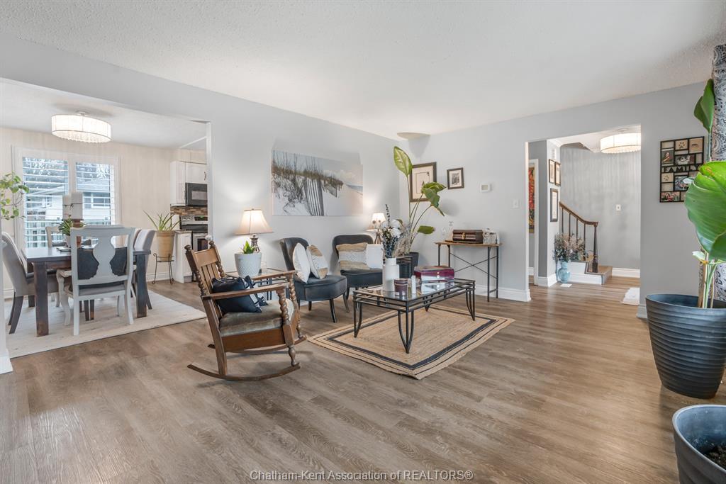 Welcome to this beautifully updated and truly turn-key two-storey home on chatham’s desirable north side—where thoughtful upgrades meet everyday comfort and backyard luxury. This inviting family home features 3 spacious bedrooms on the upper level and 2 well-appointed bathrooms, including a stunning, fully renovated main bath showcasing heated italian tile flooring, a heated custom glass shower with dual heads (including rainfall), a soaker tub, and a solid wood vanity topped with quartz and double sinks—your own private retreat. The main floor offers a warm and functional layout, highlighted by a cozy gas fireplace, updated powder room with a custom wood vanity and granite countertop, and modern finishes throughout. Recent upgrades within the past five years include a steel roof, siding, insulation, fascia, soffits, downspouts, front bay window, and garage improvements—providing peace of mind and long-term value. Downstairs, the fully finished basement expands your living space with a rec room with proper egress window, den (currently used as a home gym), additional shower, new carpet—perfect for guests or growing families. Step outside to your private backyard oasis featuring an in-ground pool with heater, updated pool systems, a charming gazebo, and a custom cedar privacy wall—ideal for entertaining or relaxing all summer long. Eavestrough covers add to the home’s low-maintenance appeal. With updated flooring throughout, solid wood interior doors, and meticulous care evident at every turn, this home blends style, comfort, and functionality in one exceptional package. A rare opportunity to own a move-in-ready home in a sought-after neighbourhood—don’t miss it.