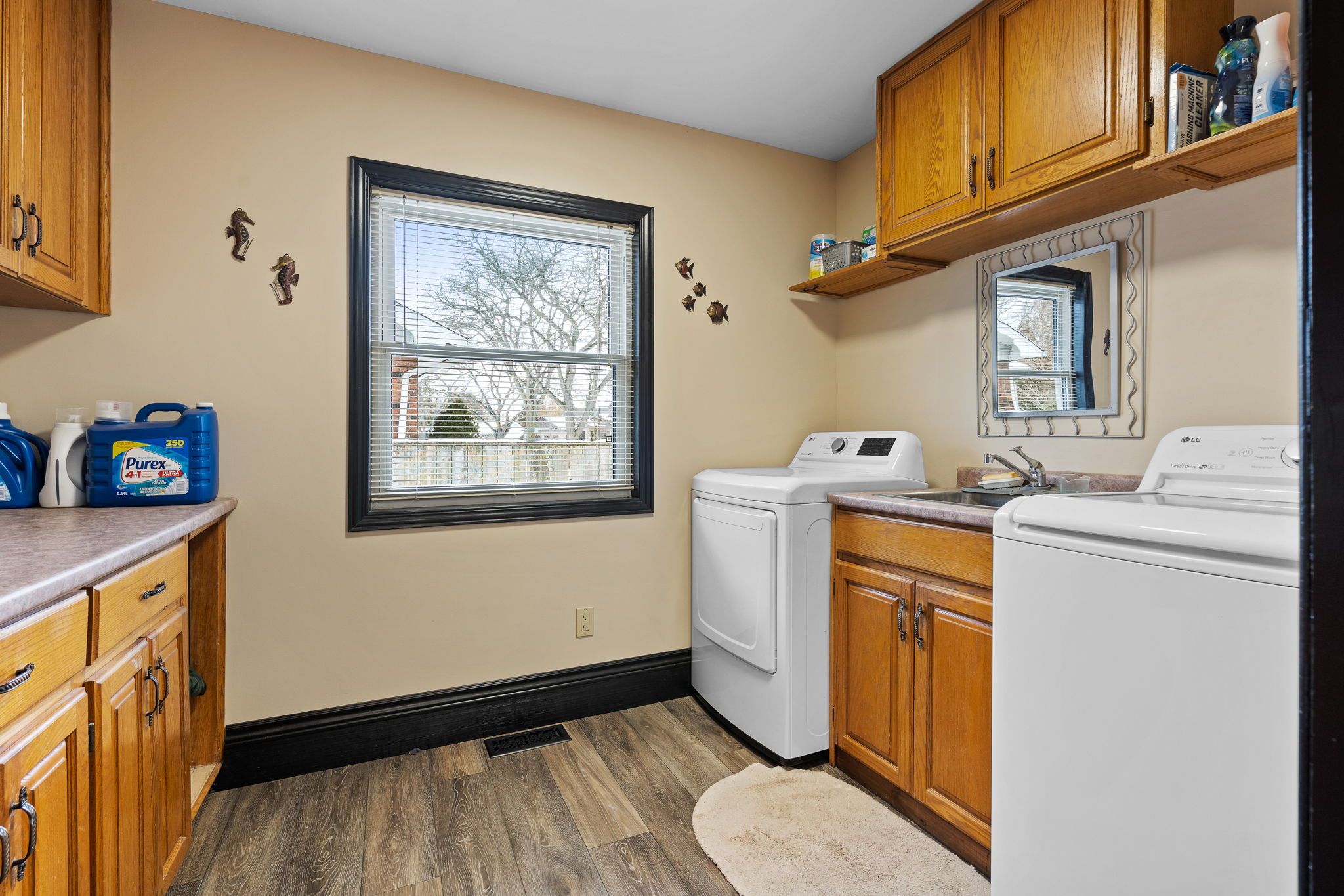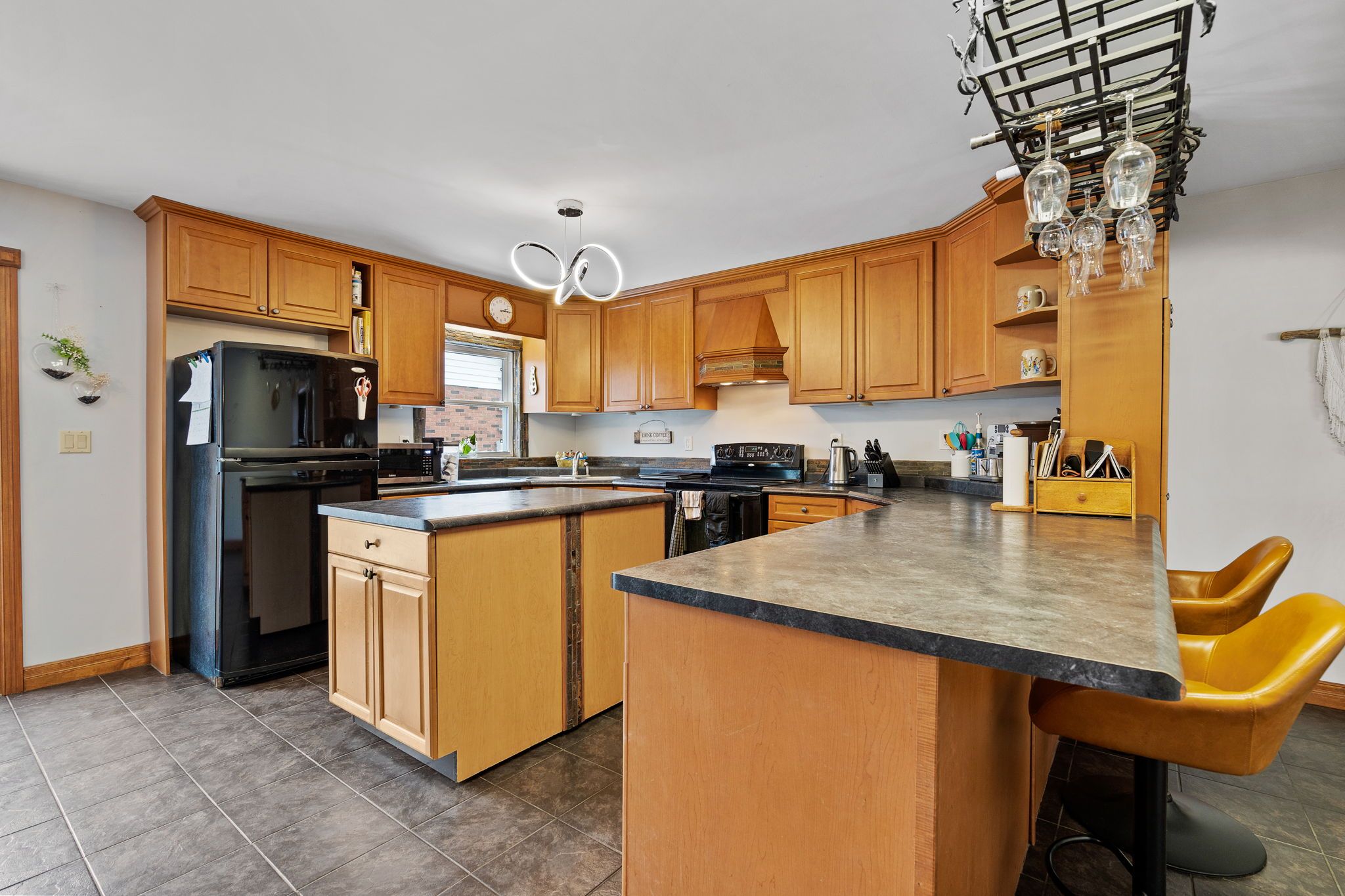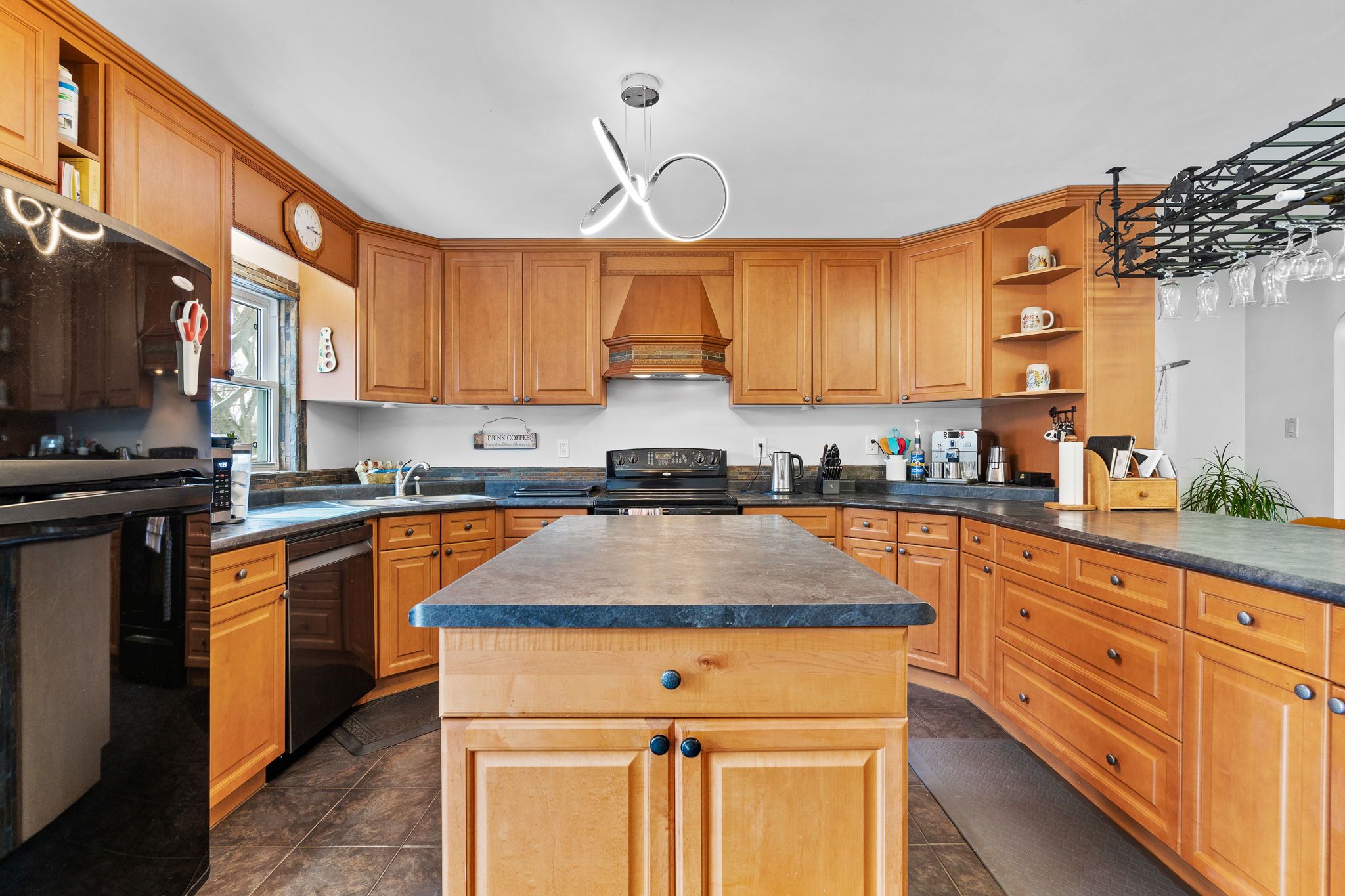 • Updated kitchen with a large island and plenty of cabinetry for entertaining.