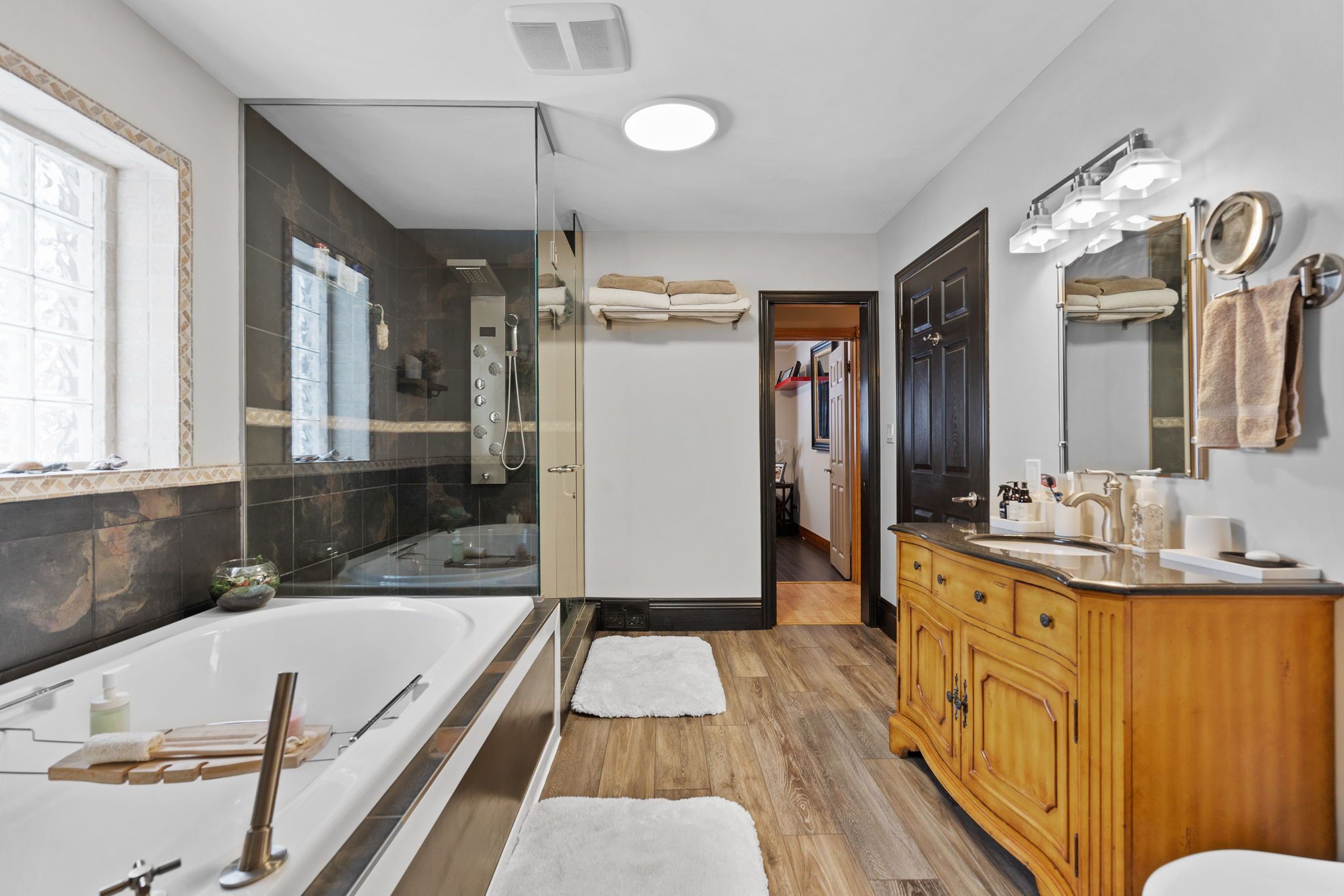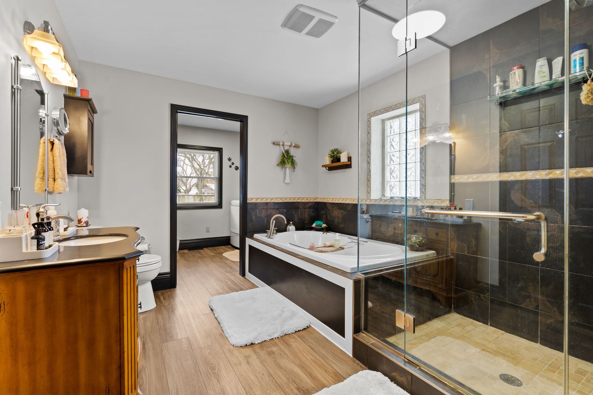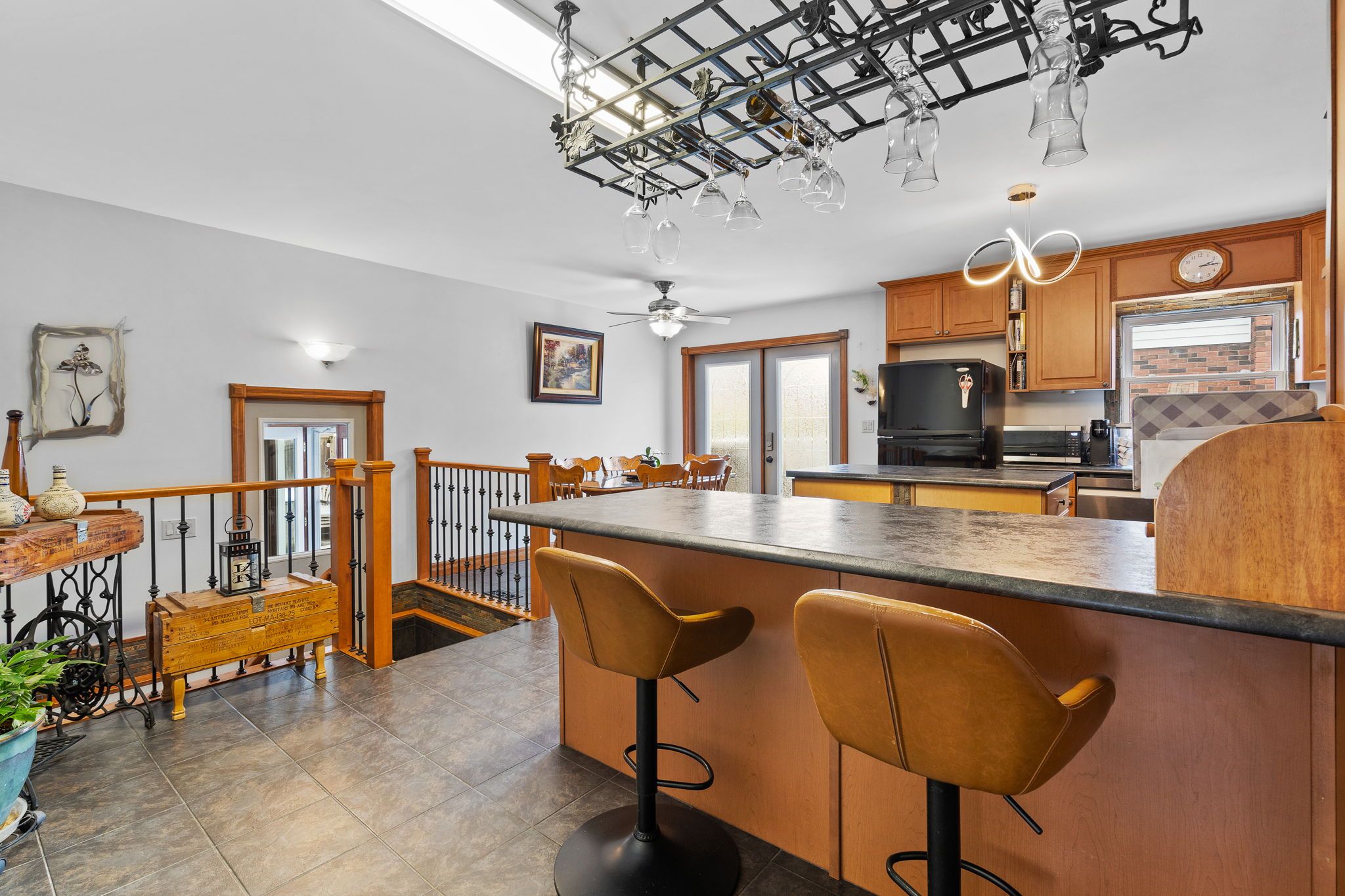 Welcome to 12 aquadale drive, a beautifully maintained 3+1 bedroom bungalow located in one of north st. Catharines' most desirable family-friendly neighbourhoods. Offering approximately 1,750 sq. Ft. Of finished living space, including a well-planned 2007 addition, this home delivers the perfect blend of comfort, functionality, and curb appeal. The bright and inviting main floor features a spacious living room highlighted by a cozy wood-burning fireplace-ideal for relaxing evenings. The updated kitchen is designed for both everyday living and entertaining, complete with a large island, ample cabinetry, and a dedicated dining area. A generous 4-piece bathroom includes a soaker tub and separate glass shower. Main floor laundry adds convenience, while a practical breezeway/mudroom provides interior access to the insulated garage. The fully finished basement extends your living space with a comfortable rec room, an additional bedroom, a 3-piece bathroom, and a welcoming family room with a gas fireplace-perfect for guests, teens, or multi-generational living. Situated on a beautifully landscaped and fully fenced corner lot, the exterior offers exceptional outdoor living with a charming covered front porch, a rear patio with gas bbq hookup, and two separate driveways-ideal for rv parking, multiple vehicles, or additional storage. Close to excellent schools, parks, shopping, and all amenities, this move-in-ready home is an outstanding opportunity in a sought-after north end location.