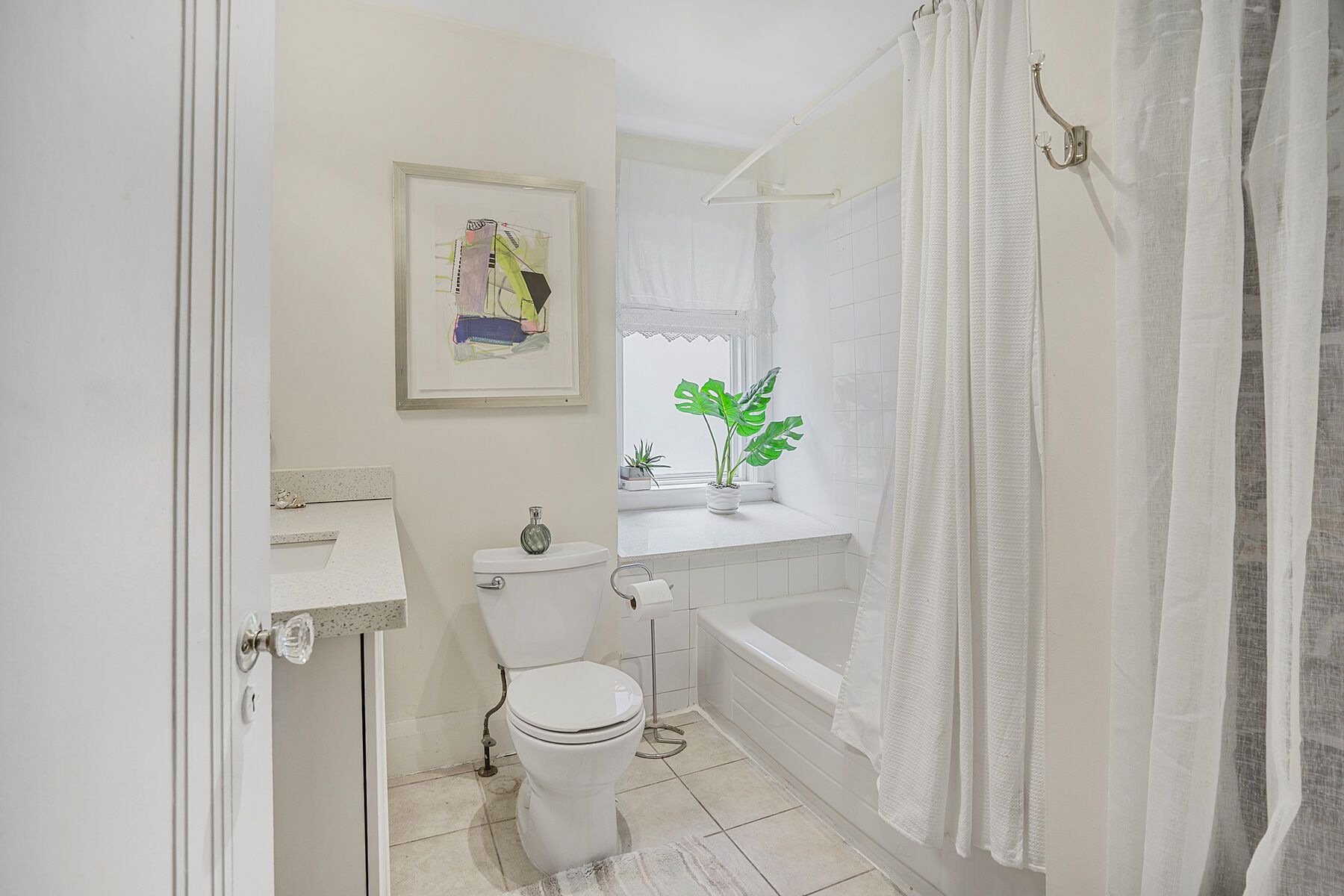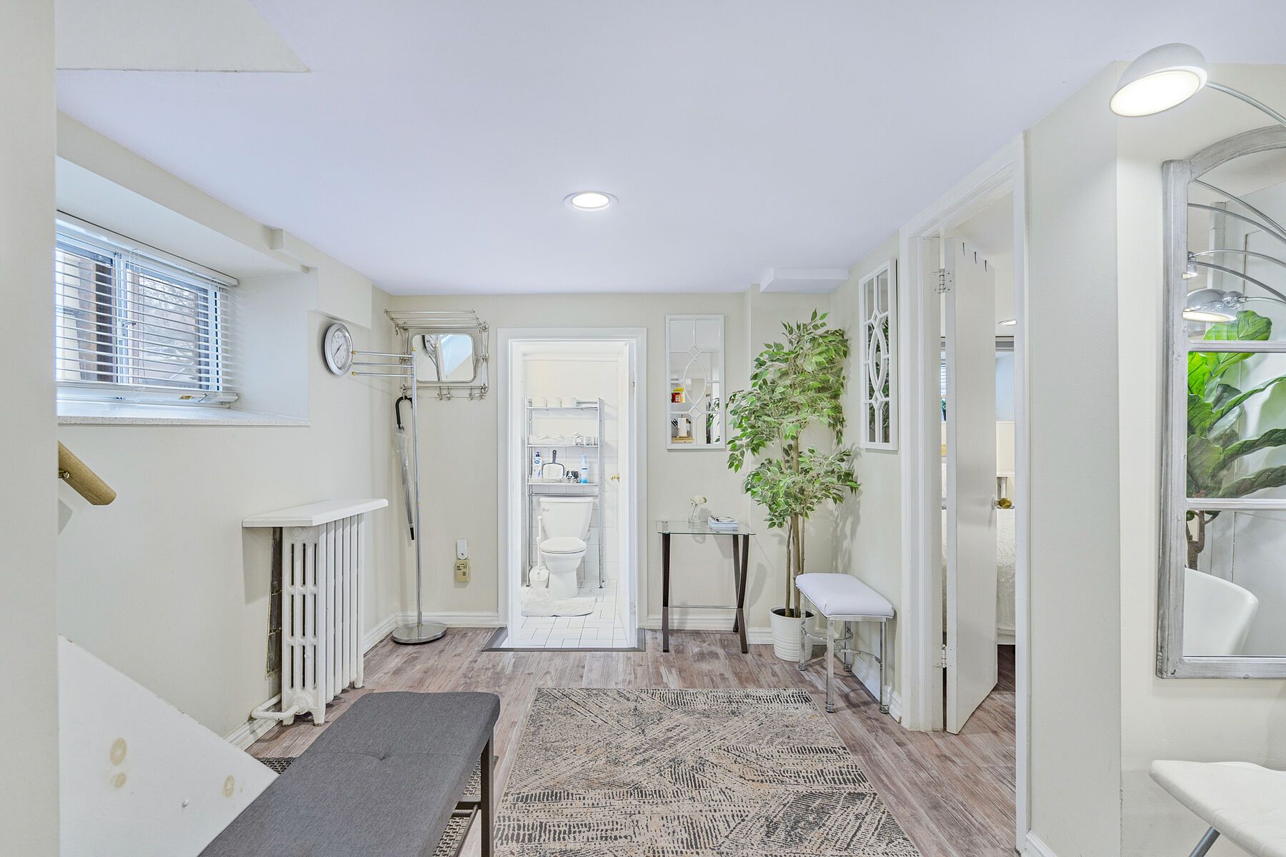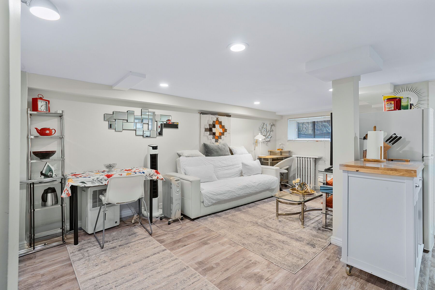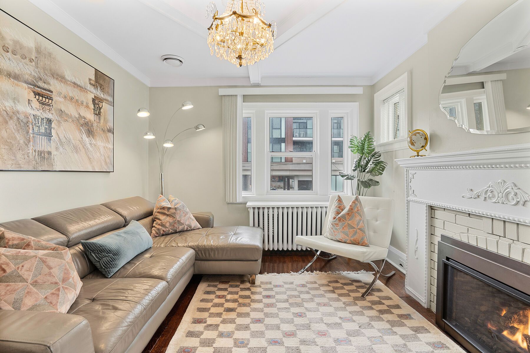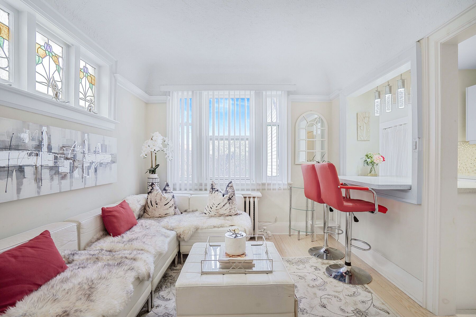 • Stylish main floor one-bedroom apartment with original brick and stained glass.
