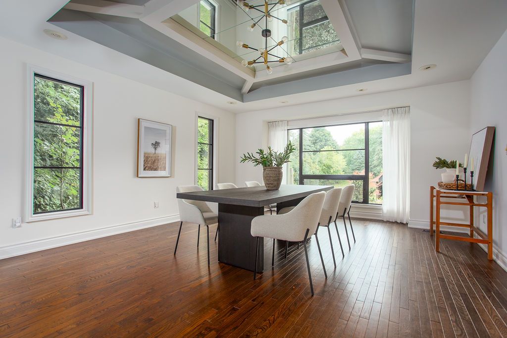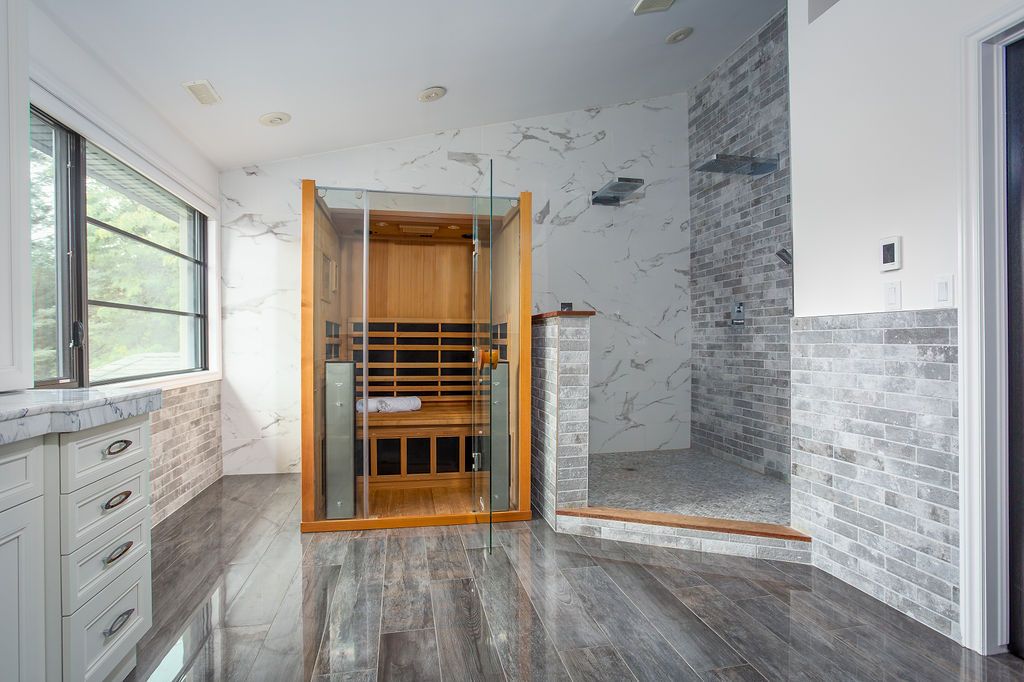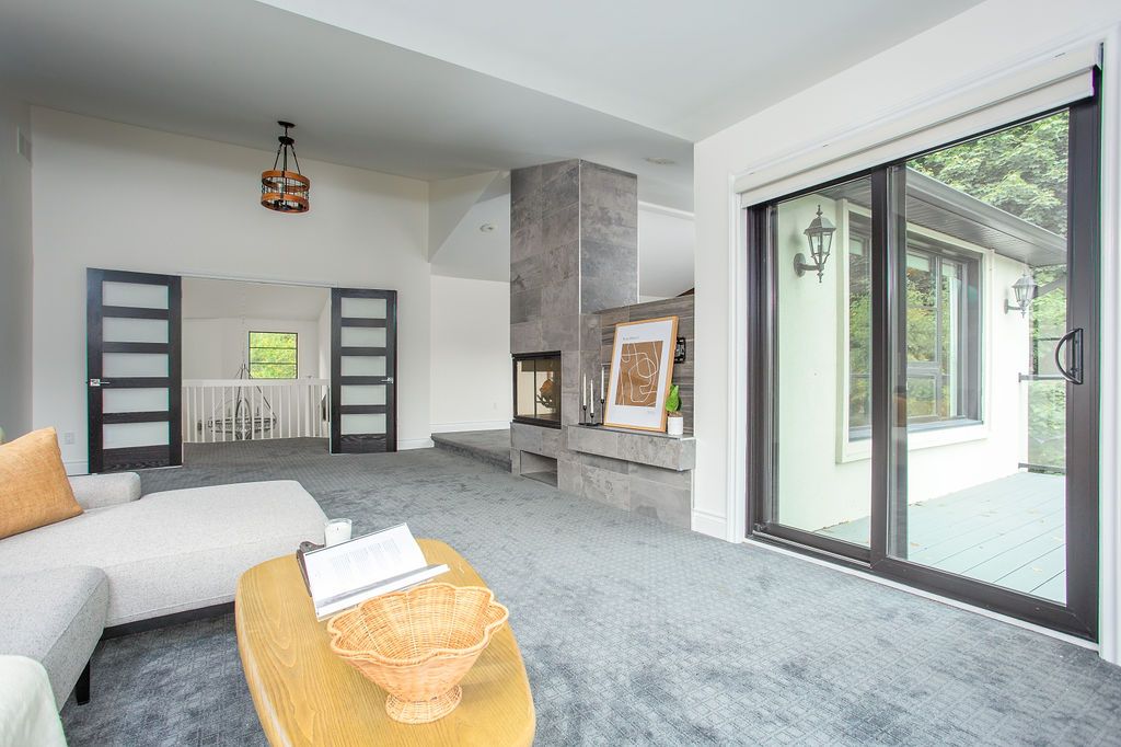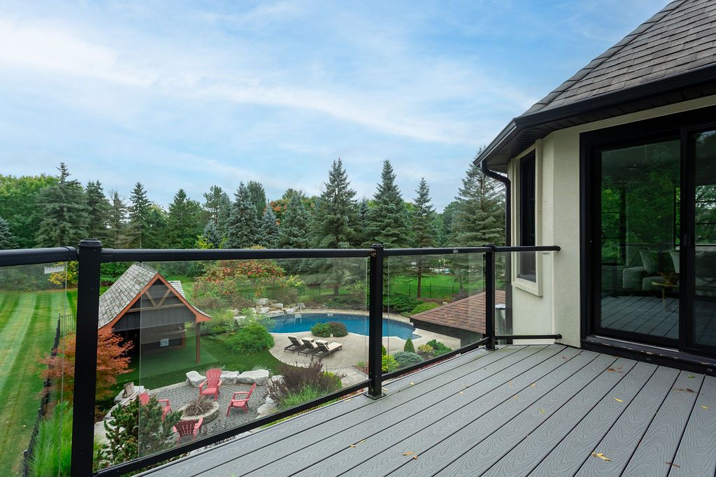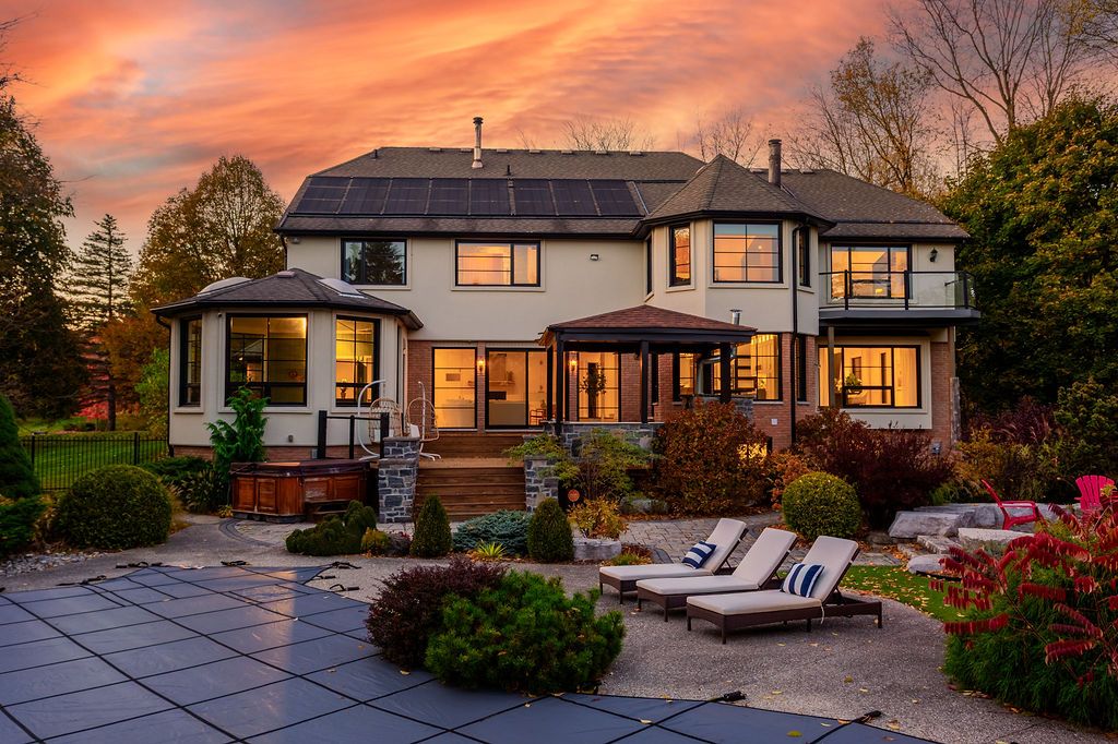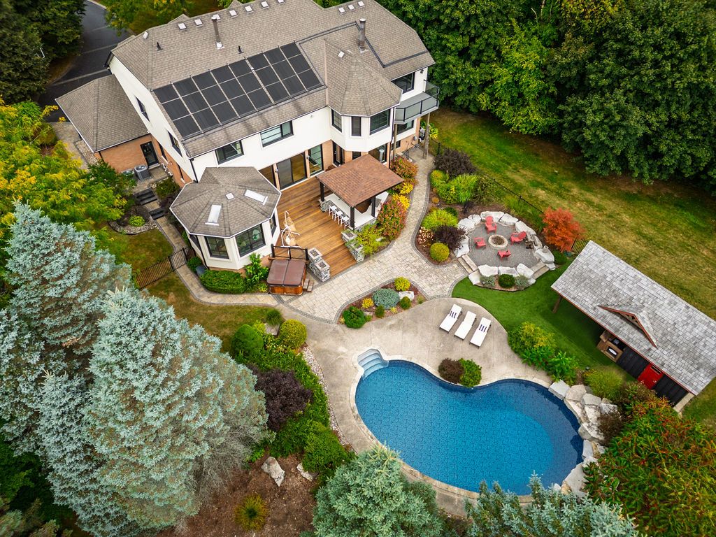 Set on a prestigious estate street, this exceptional residence offers comfort, connection, and quiet luxury in one of carlisle's most welcoming and safe neighbourhoods-where evening walks, community spirit, and everyday ease define the lifestyle. A soaring 22-foot foyer opens to over 5,400 sq ft above grade, plus an expansive walkout lower level designed for living and gathering. The main floor balances architectural presence with warmth, featuring a sunken oak-panelled office, a grand living room with 19-foot vaulted ceilings, and a formal dining room overlooking the private backyard. The chef's kitchen boasts solid wood dovetailed cabinetry, marble countertops, professional appliances, walk-in pantry, and breakfast room, flowing into the family room with wood-burning fireplace, wet bar, and oversized sliders to the deck. A sun-filled sunroom, main-floor bedroom or office with ensuite, and full laundry add flexibility and ease. Upstairs, the primary retreat offers vaulted ceilings, seating area, two-sided fireplace, private balcony, and a spa-inspired ensuite with heated floors, marble counters, dual rain shower, water closet, and indoor sauna. Three additional bedrooms share a four-piece bath, while a second staircase leads to a private bonus room with ensuite-ideal for work or creativity. The walkout lower level features epoxy flooring, home theatre, fitness area, full bath, and ample storage. Outdoors, the south-facing backyard is a private retreat with heated saltwater pool, outdoor sauna, fire-pit, ipe deck, and stone kitchen with wood-fired pizza oven. With extensive updates, a heated four-car garage, and outstanding curb appeal, this is carlisle living at its finest-more than a home, it's the setting for the life you've been waiting to live.