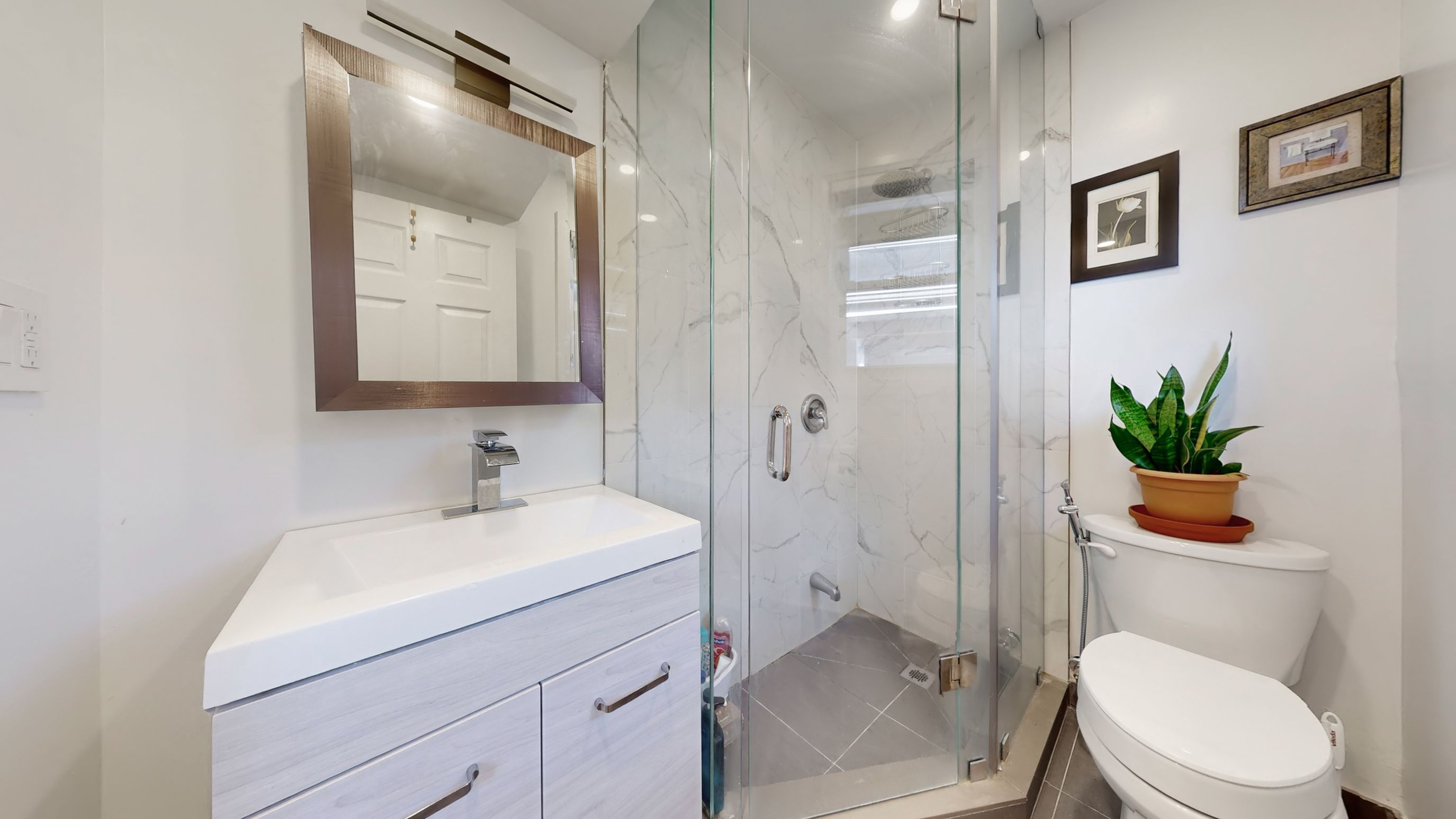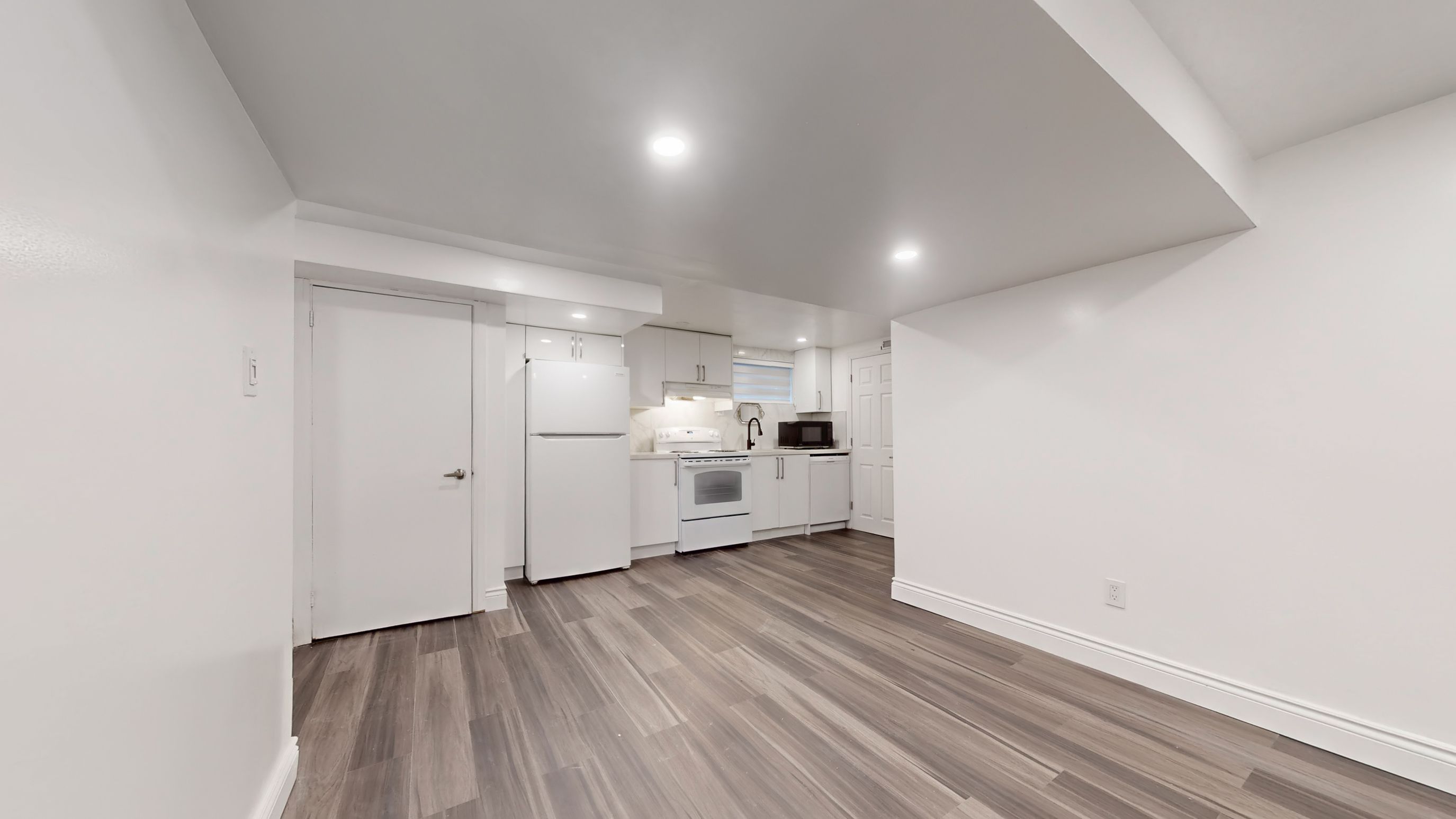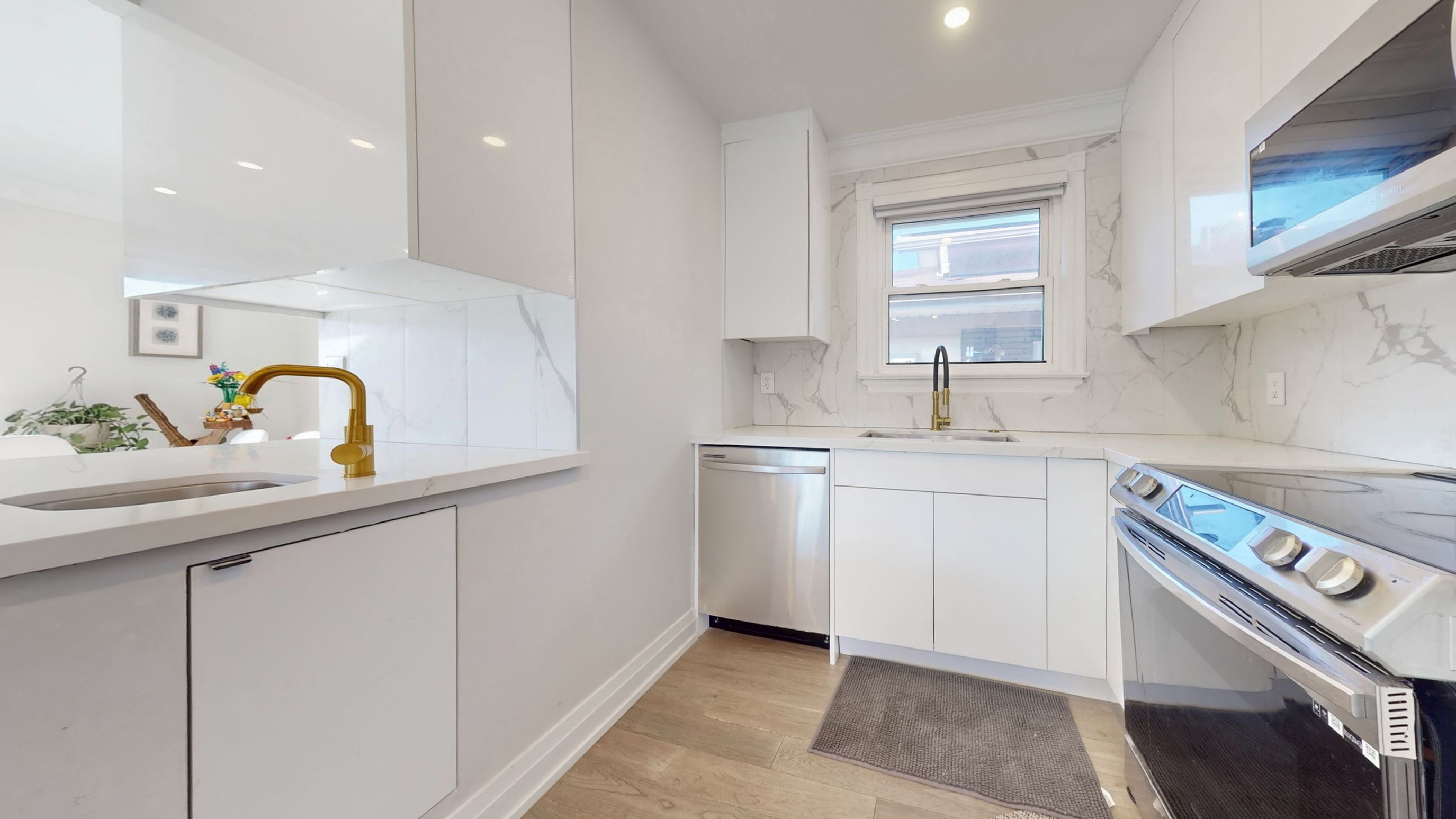 • Modern kitchen features quartz countertops and updated appliances.