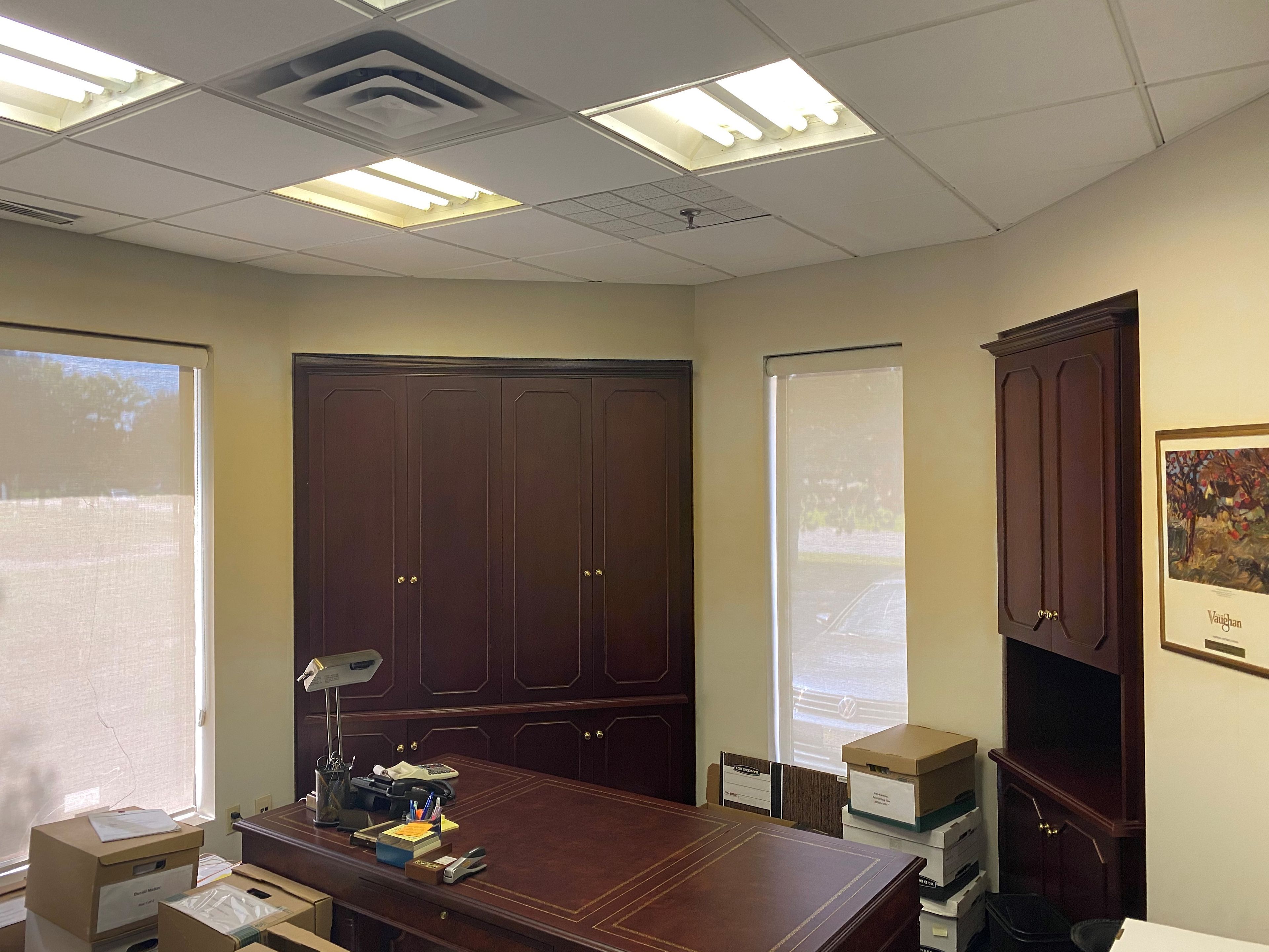 • Includes reception area, three large offices, and a boardroom.