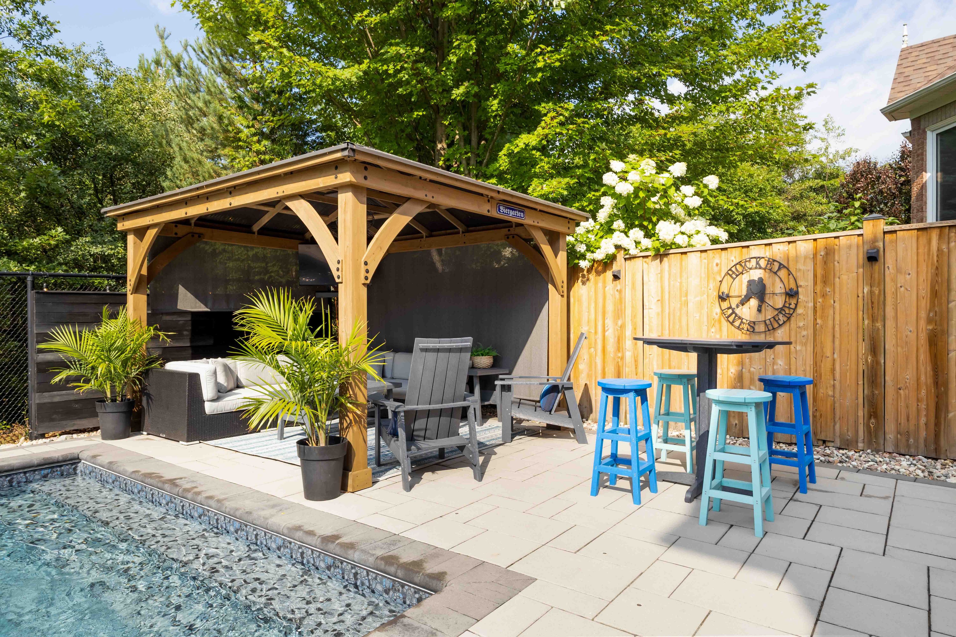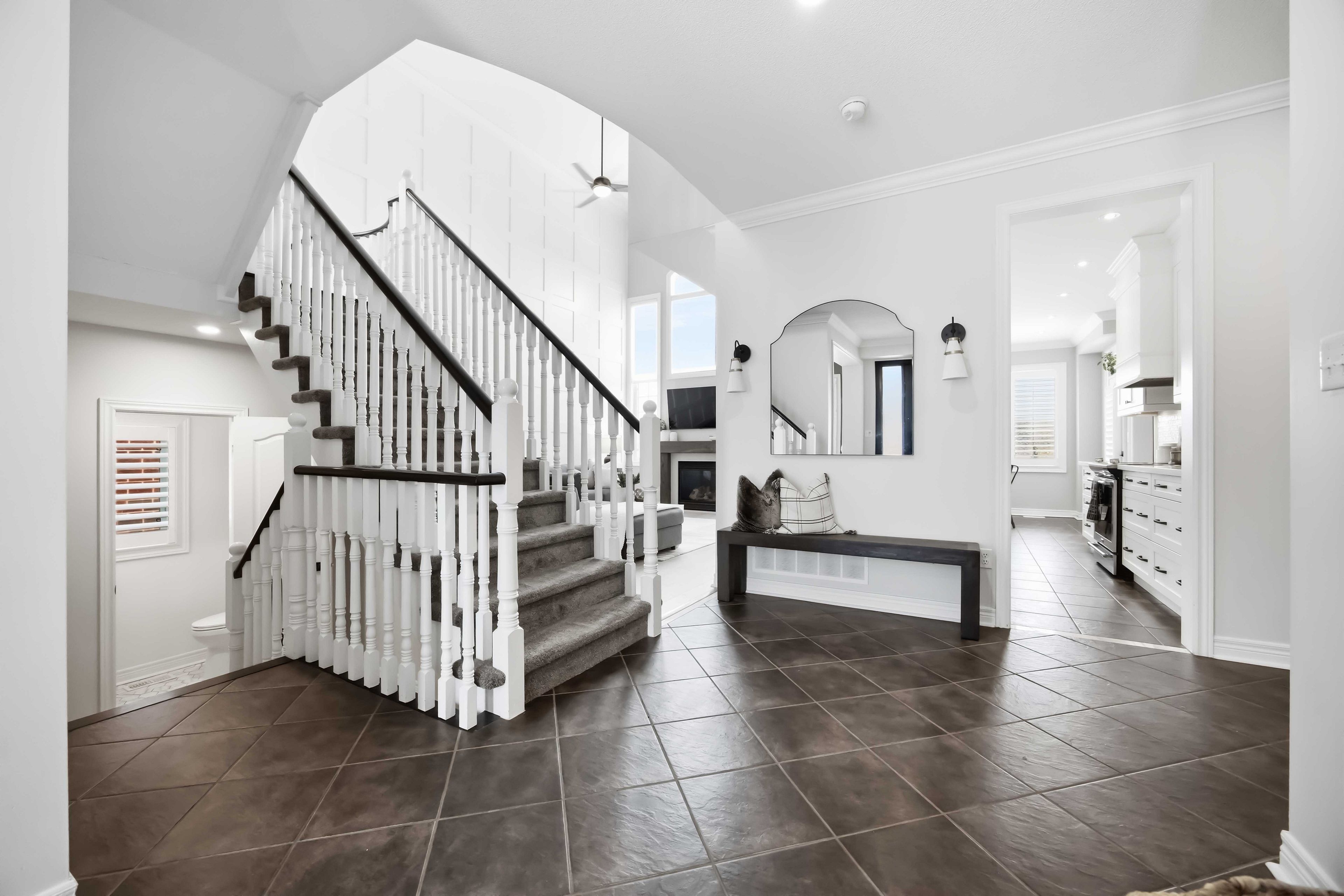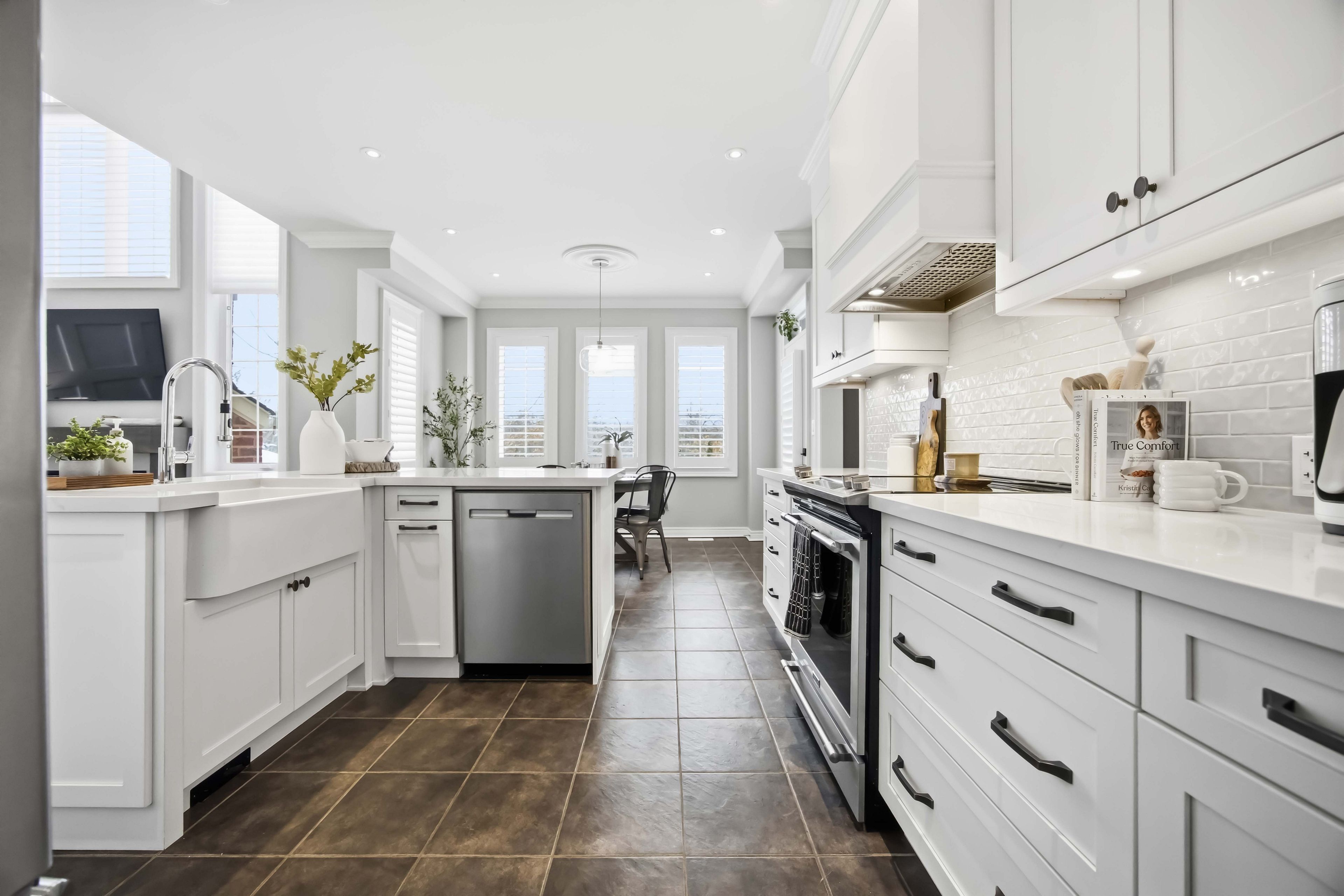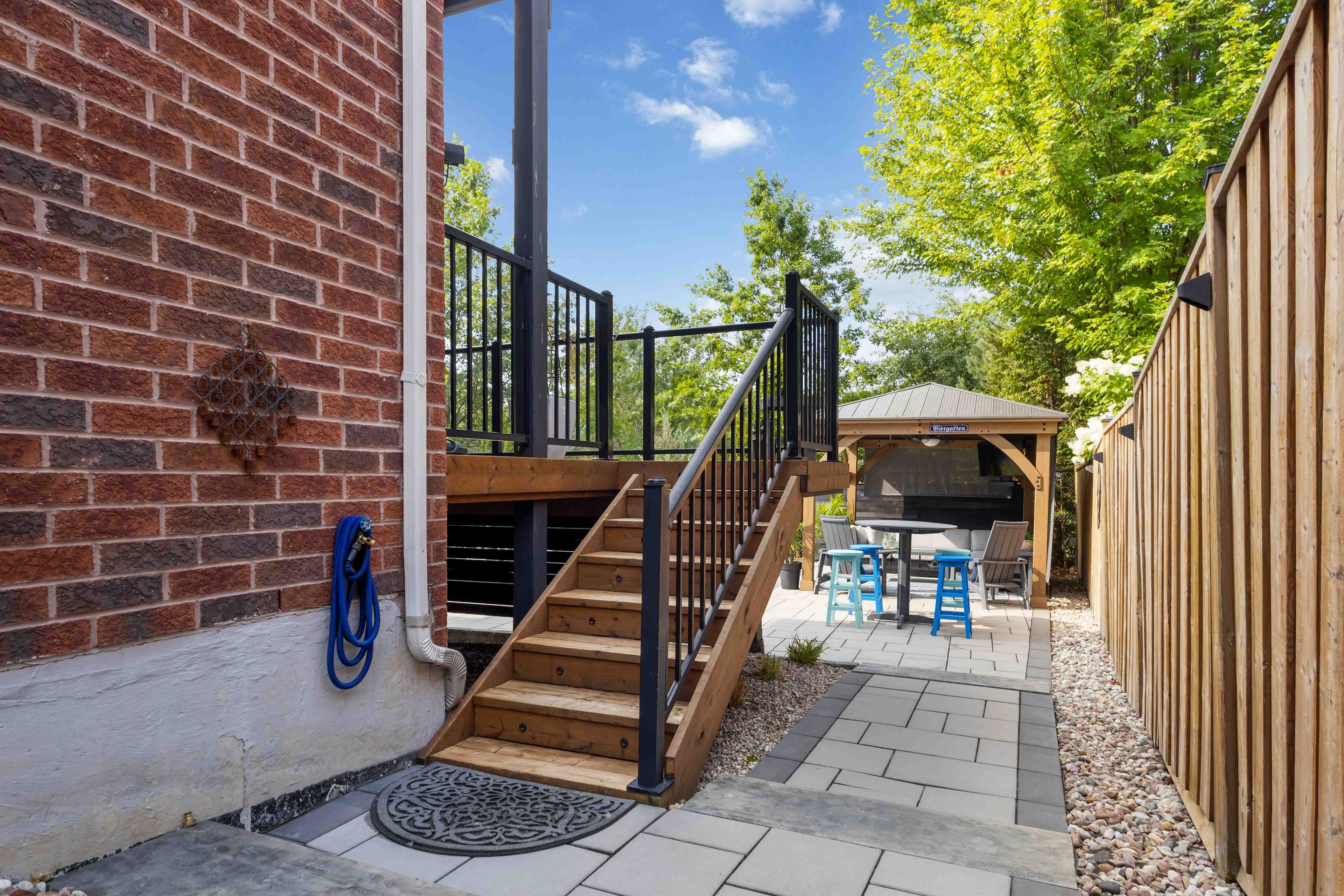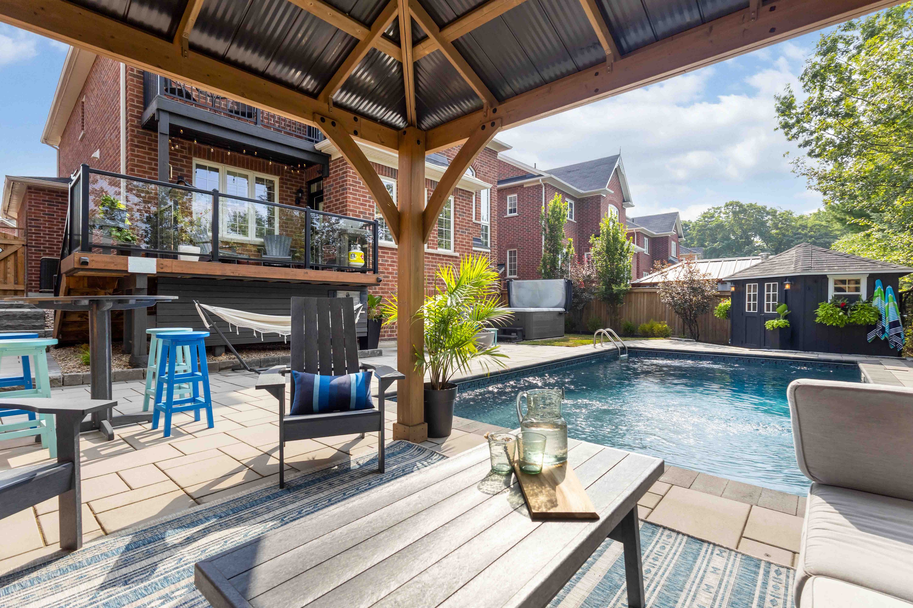 Tranquil ravine setting with inground pool, hot tub & a private backyard oasis! Beautifully upgraded fernbrook built, 3+1 bedroom, 4 bath home offering exceptional curb appeal with professionally landscaped front & back gardens. The backyard is designed for entertaining featuring a timber gazebo, large deck, interlocking patio, inground saltwater pool, hot tub & scenic treed ravine views providing ultimate privacy. The inviting foyer welcomes you to a sun filled open concept main floor with extensive crown moulding, wainscoting & california shutters throughout. Convenient main floor office ideal for working from home or study space. Main floor laundry room with direct garage access. Gourmet kitchen showcases silestone quartz countertops, raywal cabinetry, ceramic backsplash, stainless steel appliances, pantry with custom pull out shelves & centre island with breakfast bar. Spacious breakfast area offers a garden door walkout to the entertainer's deck with panoramic ravine views. The impressive great room features soaring cathedral ceilings, gas fireplace with custom mantle & elegant detailing - perfect for family gatherings. Upstairs offers 3 generous bedrooms. The primary retreat features a huge walk-in closet & private balcony overlooking the ravine - perfect for morning coffee. Spa inspired 5 piece ensuite includes soaker tub, large glass shower & granite vanity. Additional bedrooms are spacious & bright with well appointed ensuite baths. Partially finished basement includes a 4th bedroom with barn door entry & a bright rec room with oversized windows offering additional living space for growing families. Situated in a highly desirable community just steps to parks, schools, trails & downtown brooklin shops. A rare opportunity combining luxury finishes, functional family layout & resort style outdoor living in a premium ravine location!