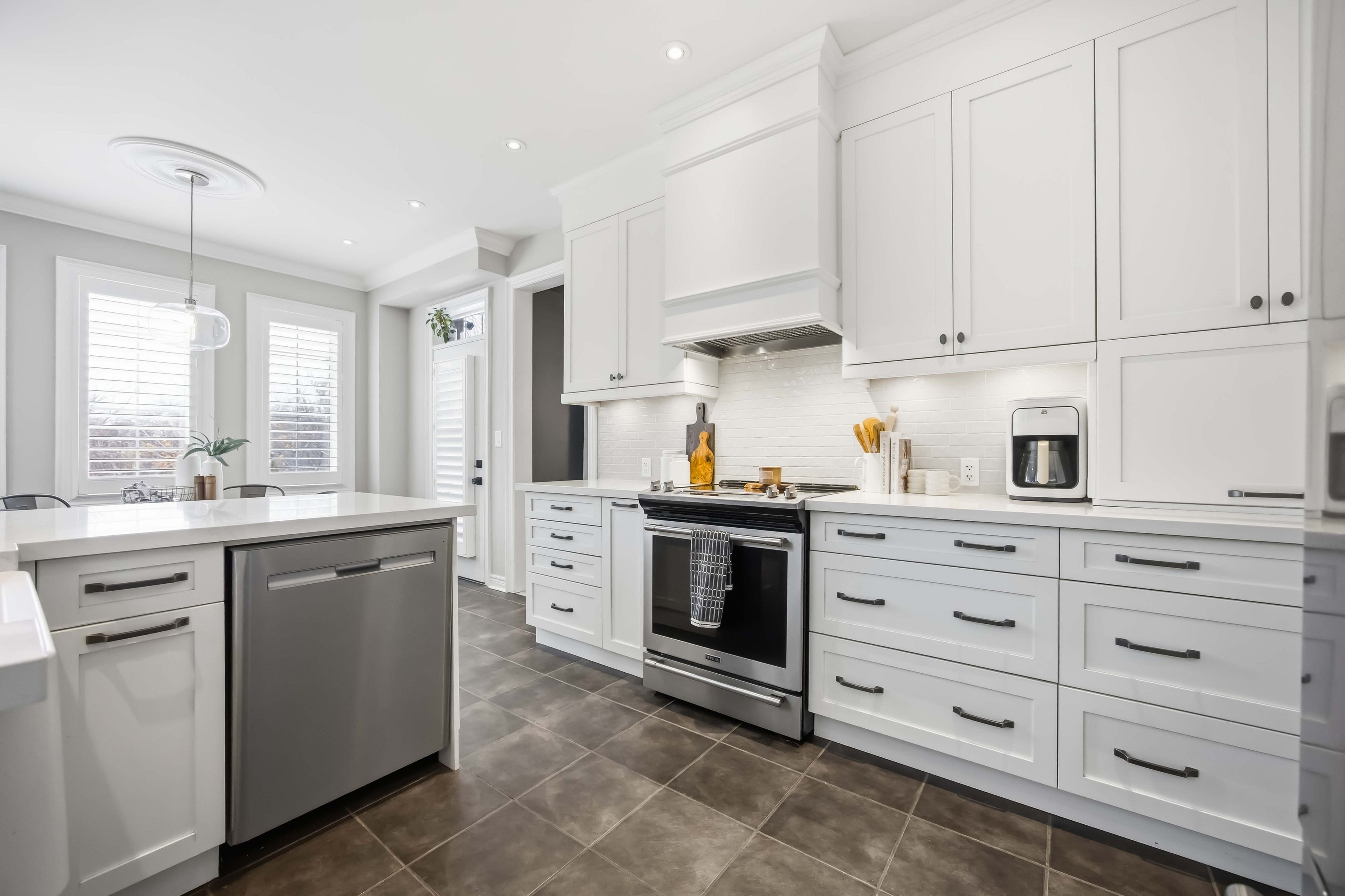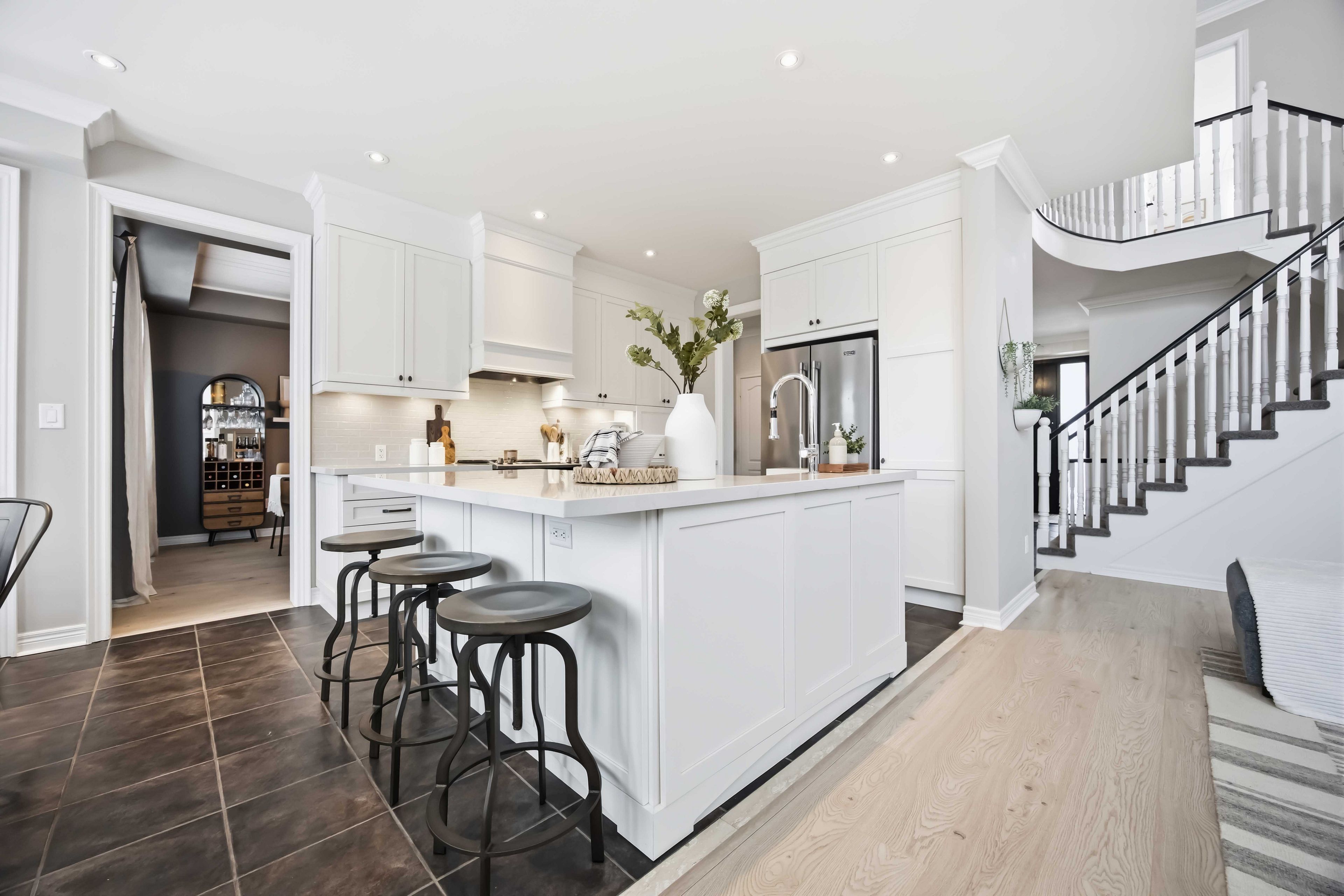 • Open concept main floor with sun-filled spaces and extensive crown moulding.