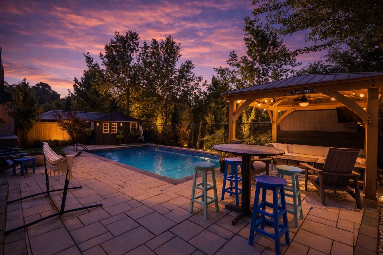 • Tranquil ravine setting with a private backyard oasis and inground pool.