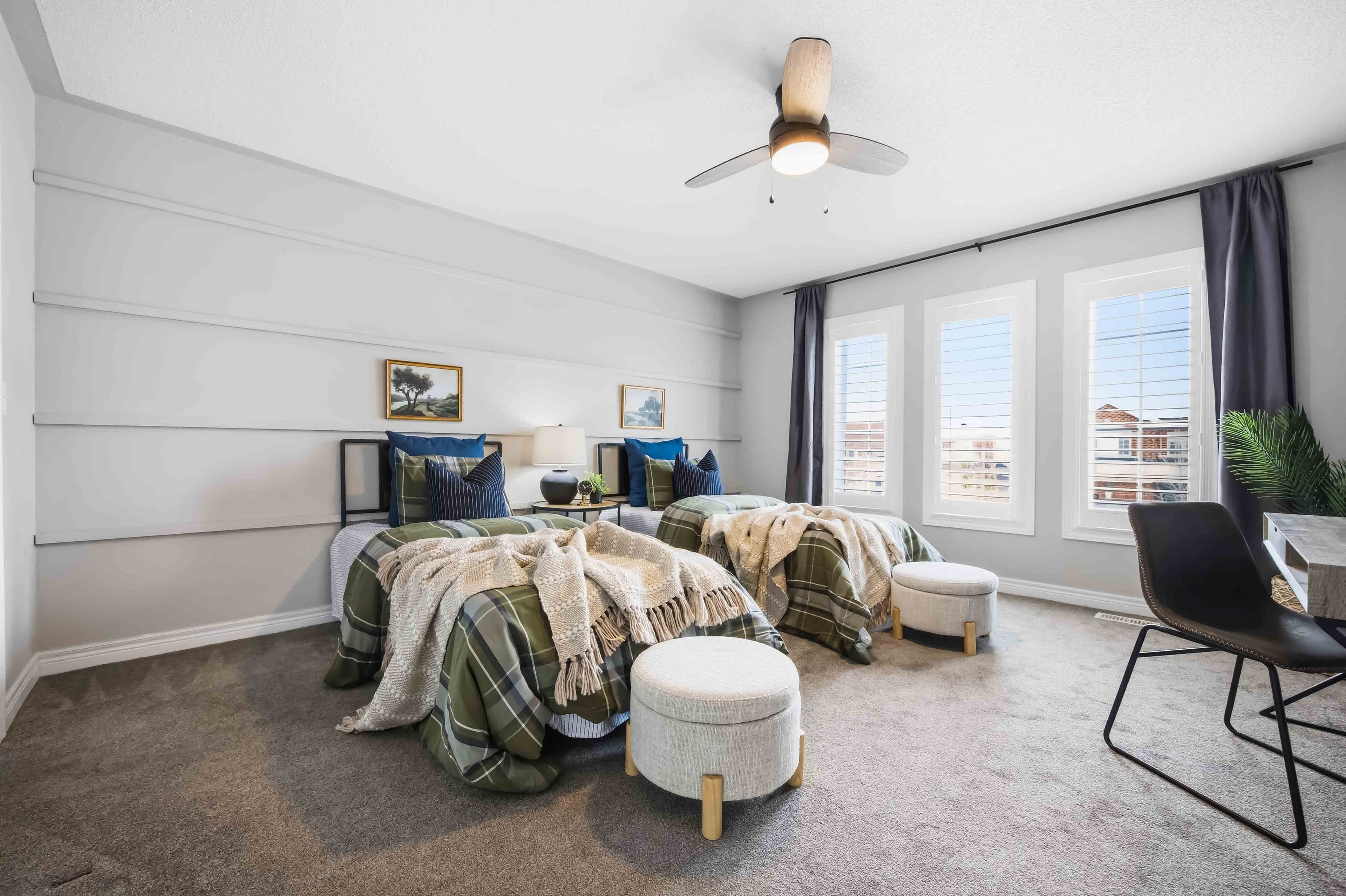 • Primary retreat includes a walk-in closet and private balcony with ravine views.