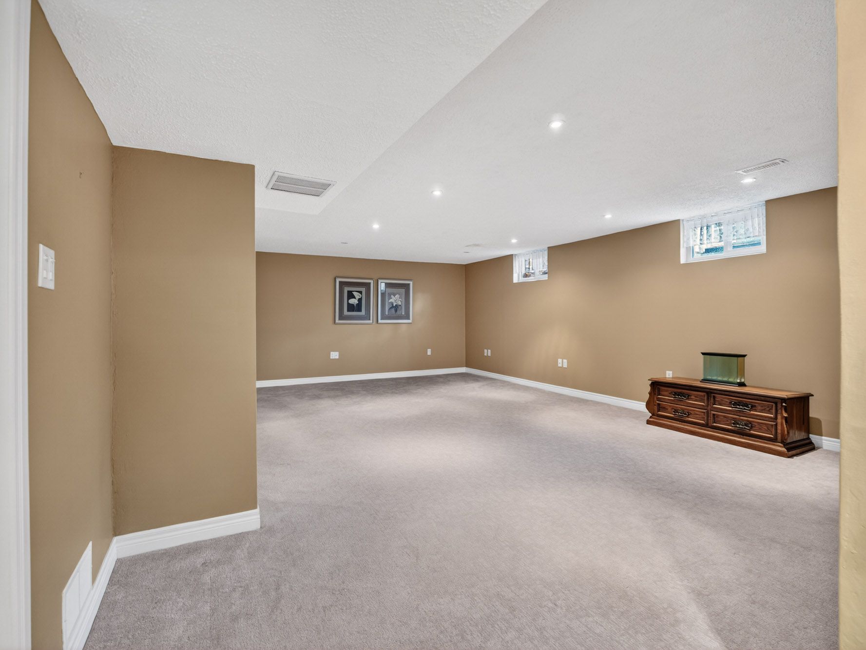 • Fully finished basement featuring a large rec room and wet bar.