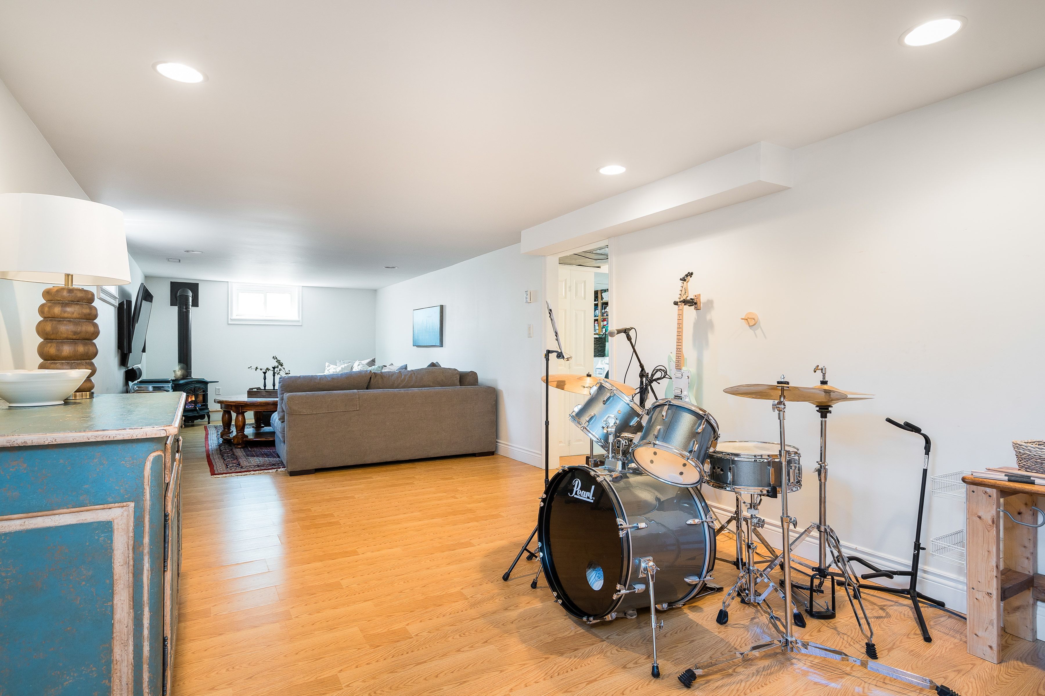 • Lower level provides large rec room with cozy gas fireplace.