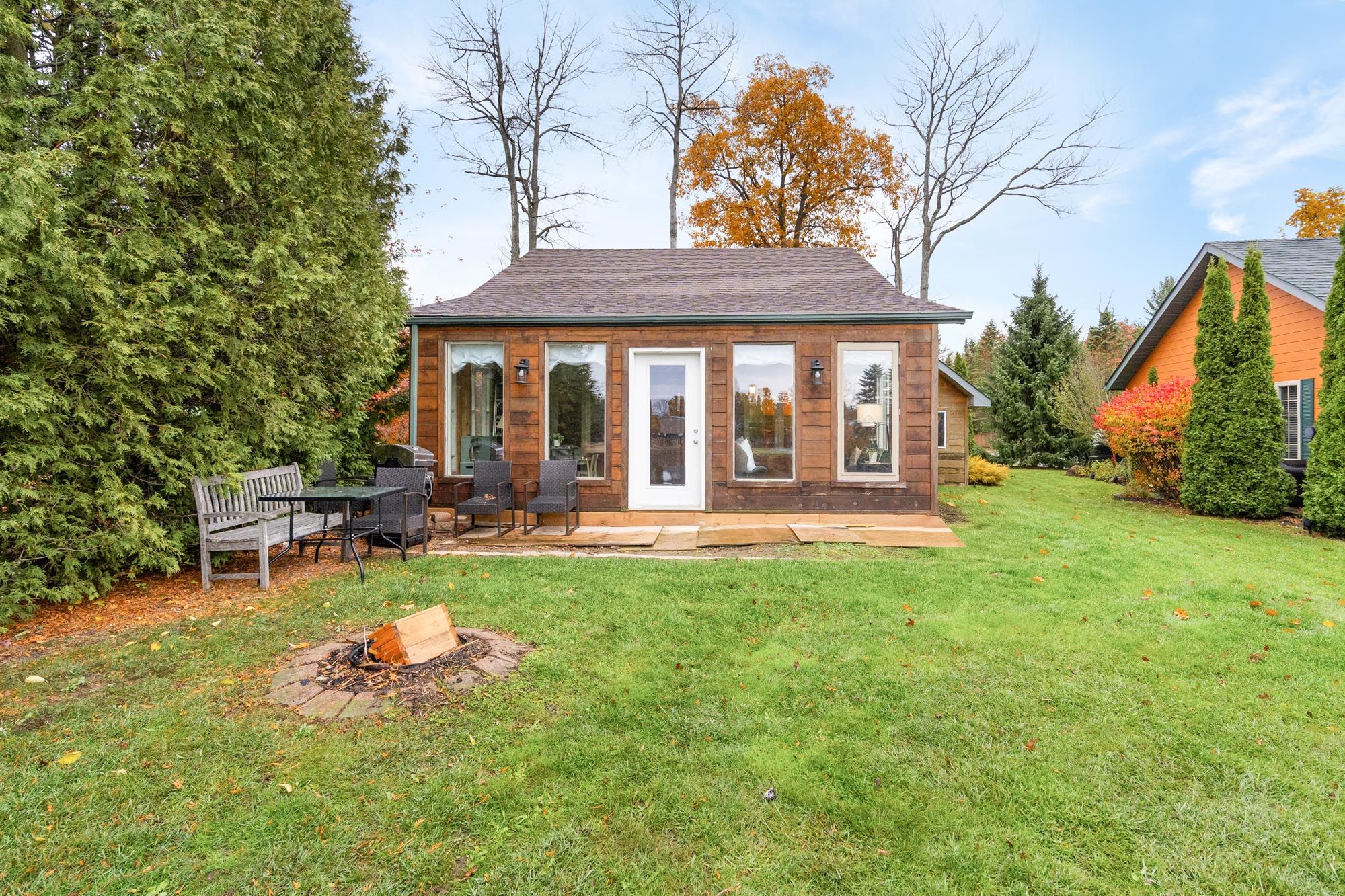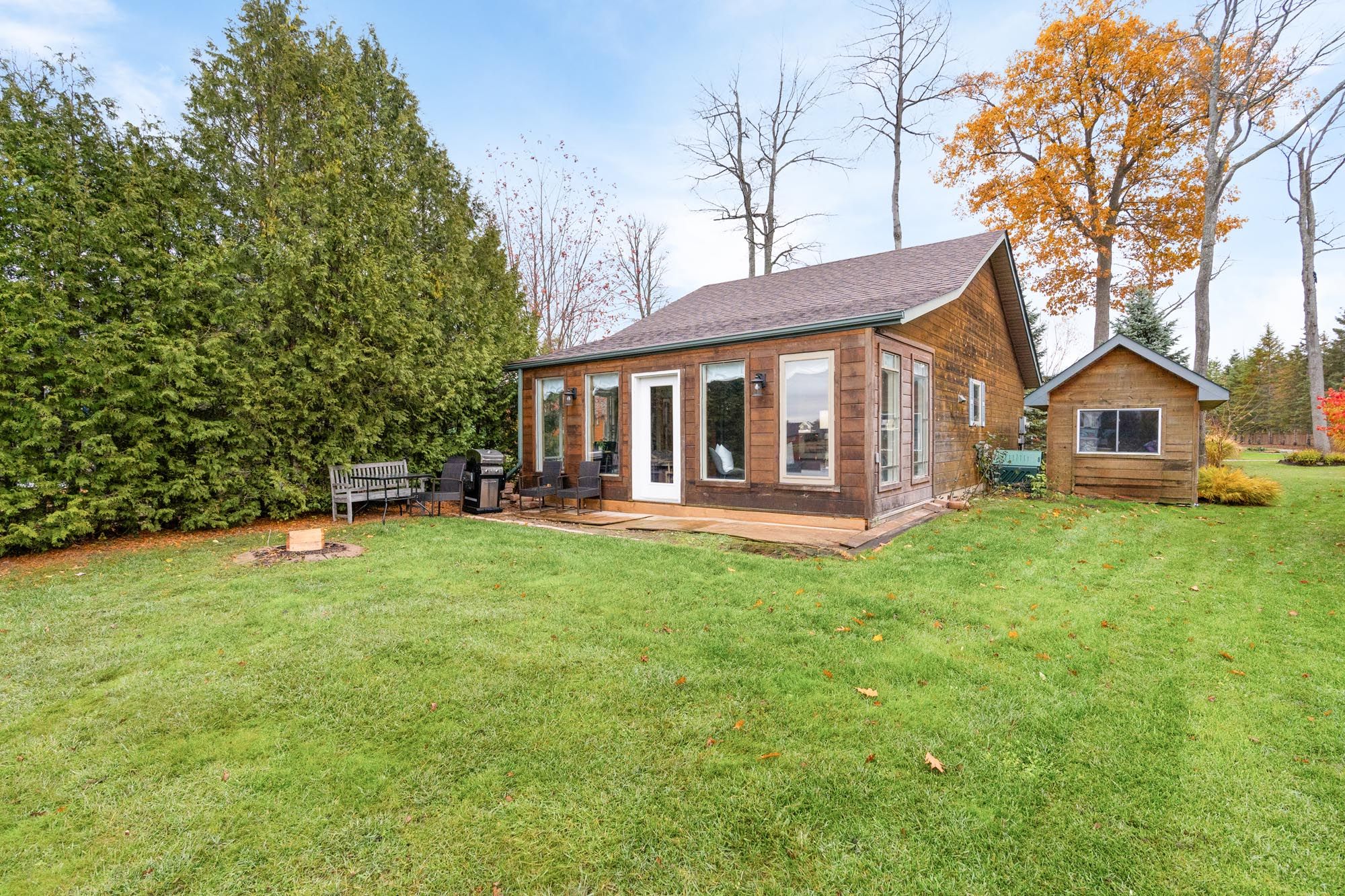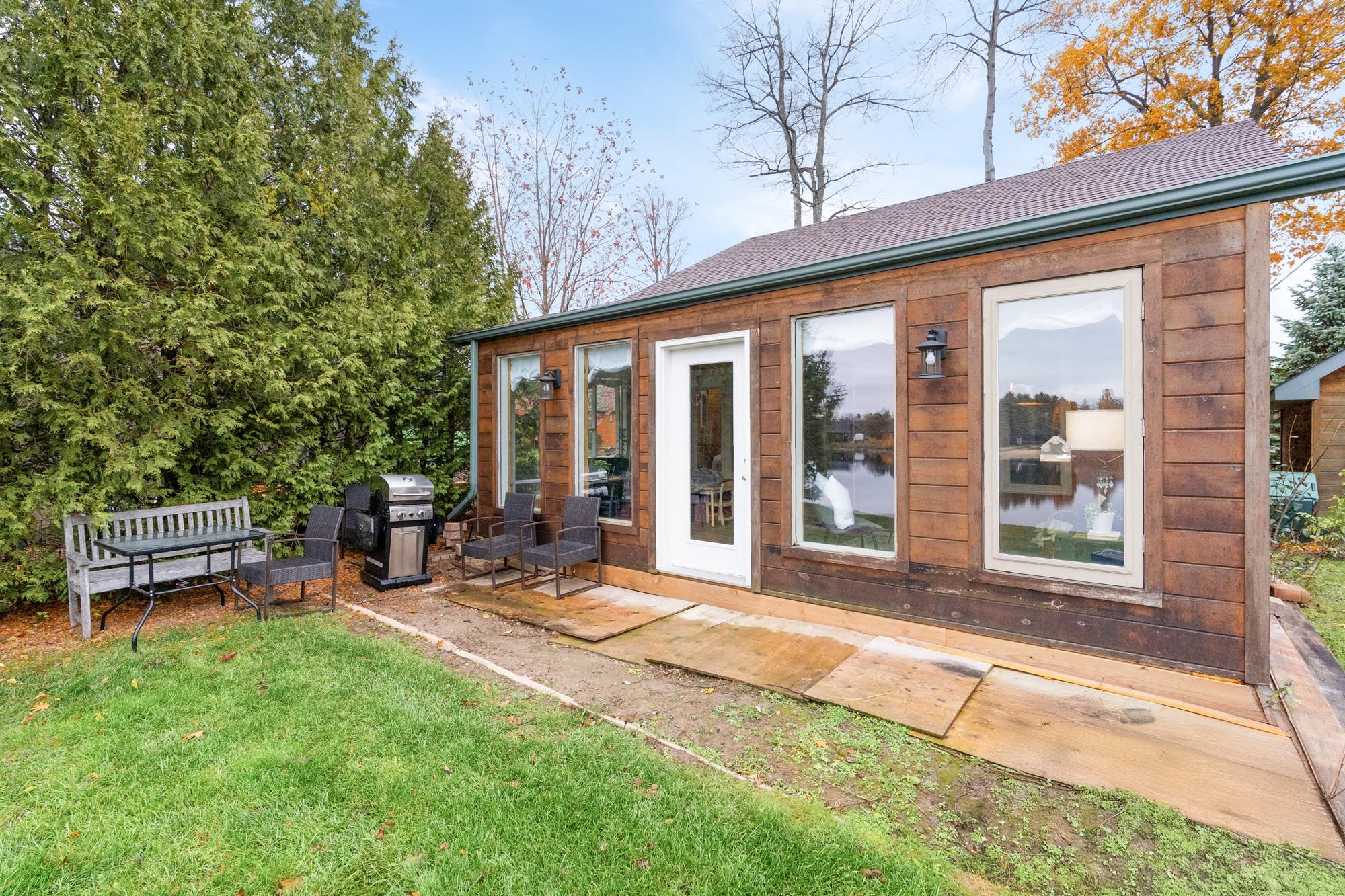 Top 5 reasons you will love this home: 1) step into a warm and inviting cabin with cathedral ceilings, an open-concept kitchen, dining, and living area, and a refaced gas fireplace surrounded by natural stone (november 2024), delivering the perfect mix of rustic charm and modern comfort for an ideal year-round escape 2) enjoy the benefits of major recent upgrades (approximately $75k in 2024-2025) including a brand-new roof (new struts, shingles, and plywood, november 2025), a fully renovated bathroom (november 2024), and a newly installed four-season sunroom featuring insulation, heat, air conditioning venting, and new flooring, with serene pond views 3) relax in your private backyard oasis overlooking a tranquil pond, perfect for morning coffee, sunset reflections, or quiet evenings surrounded by nature's beauty 4) located in the prestigious countrylife resort, you'll enjoy incredible amenities including indoor and outdoor pools, tennis and pickleball courts, mini golf, a playground, a splash pad, a bouncy trampoline, a basketball court, a recreation centre, and scenic walking paths leading straight to the sandy shores of wasaga beach 5) walk or bike to local coffee shops, grocery stores, a library, and restaurants, with collingwood, blue mountain, and barrie just a short drive away, perfect for those seeking a weekend retreat or a four-season home. 946 above grade sq. Ft.