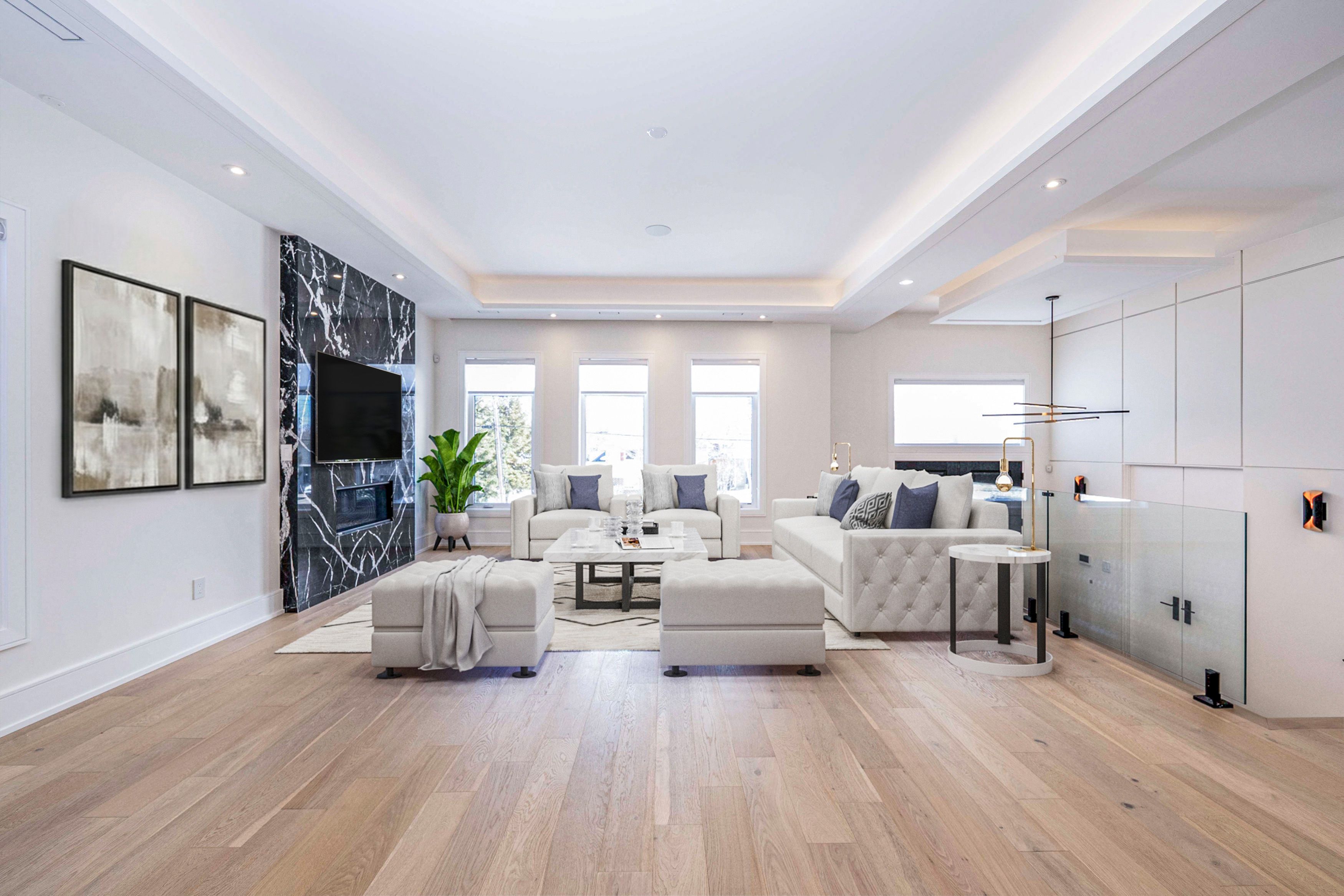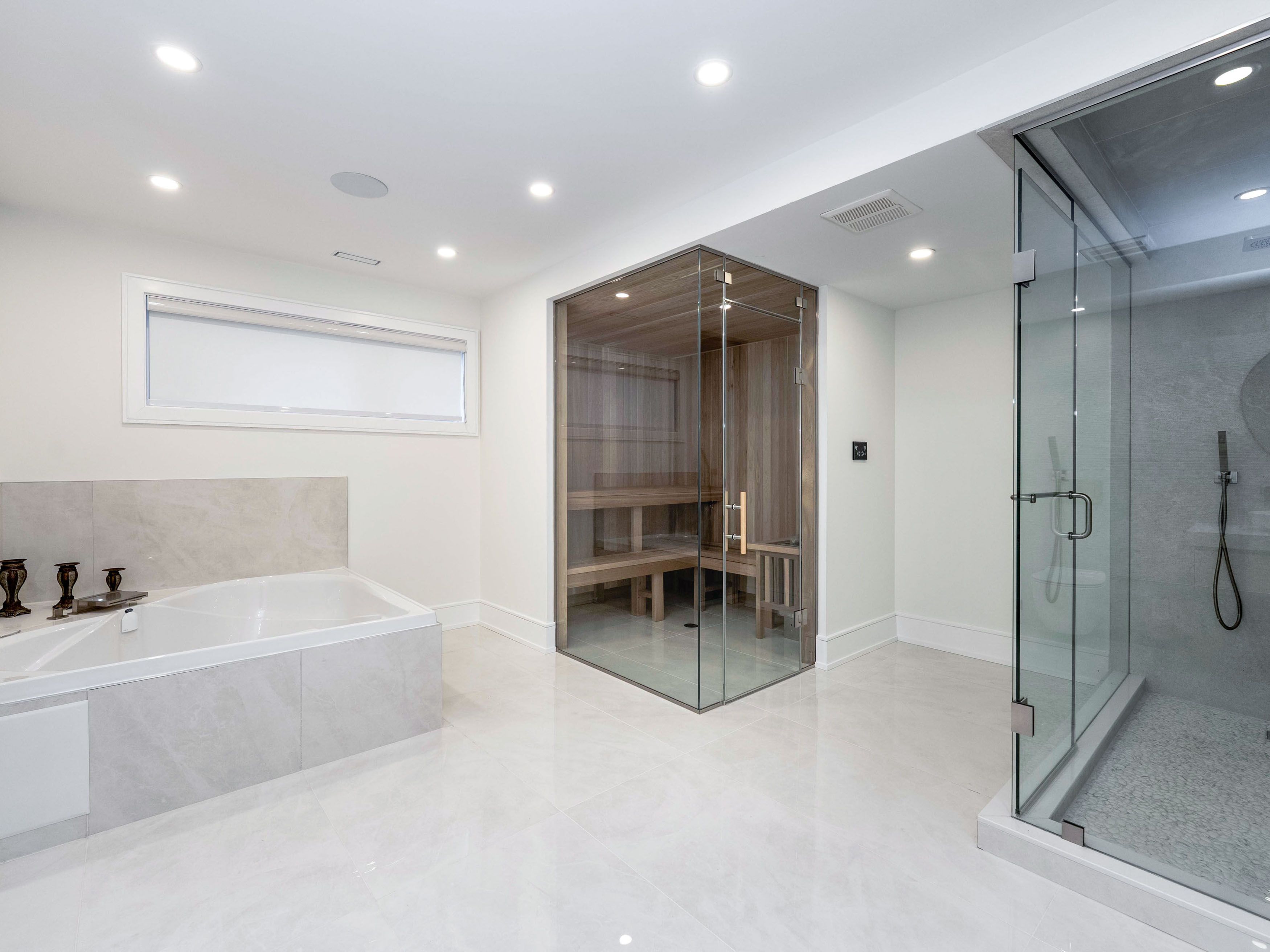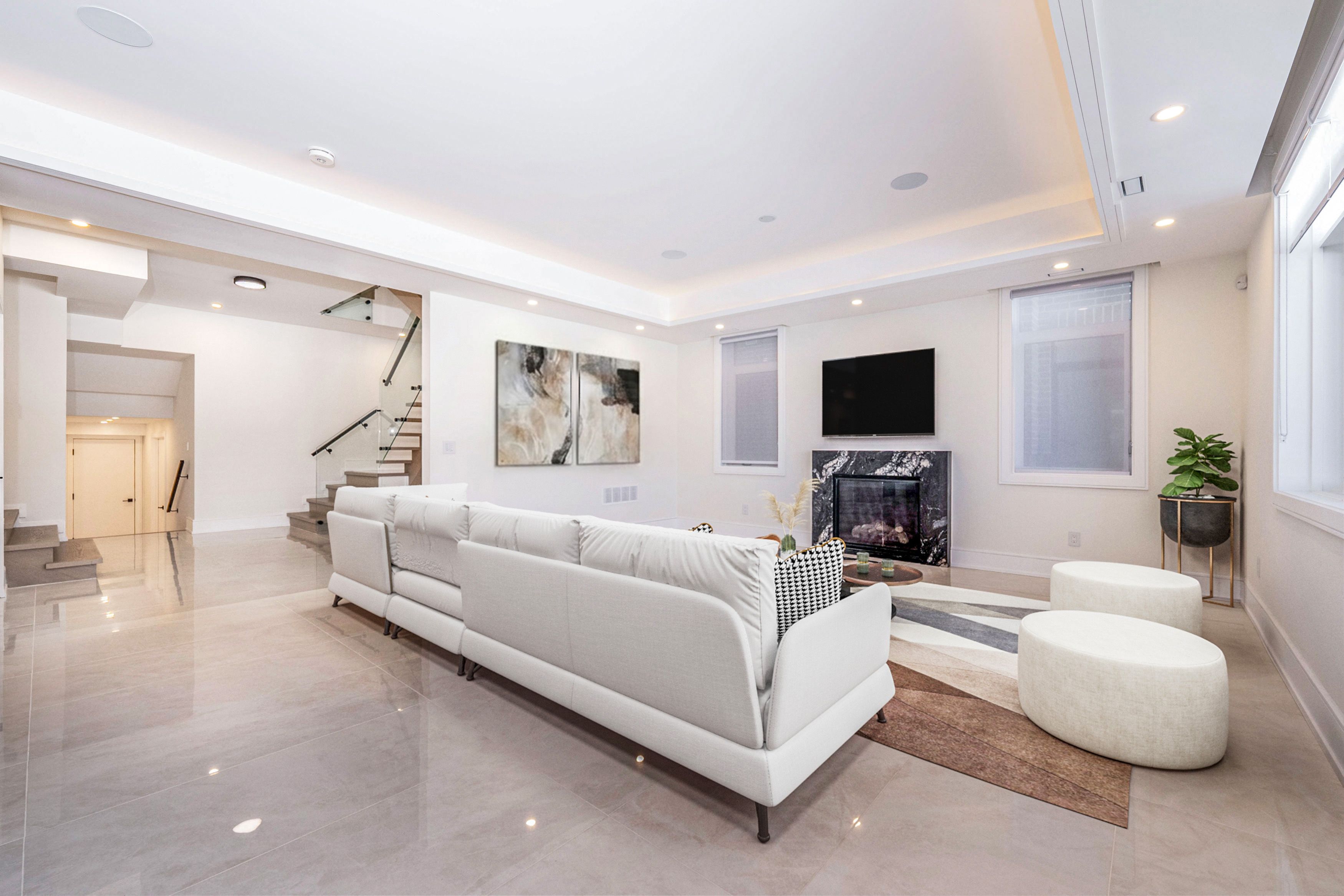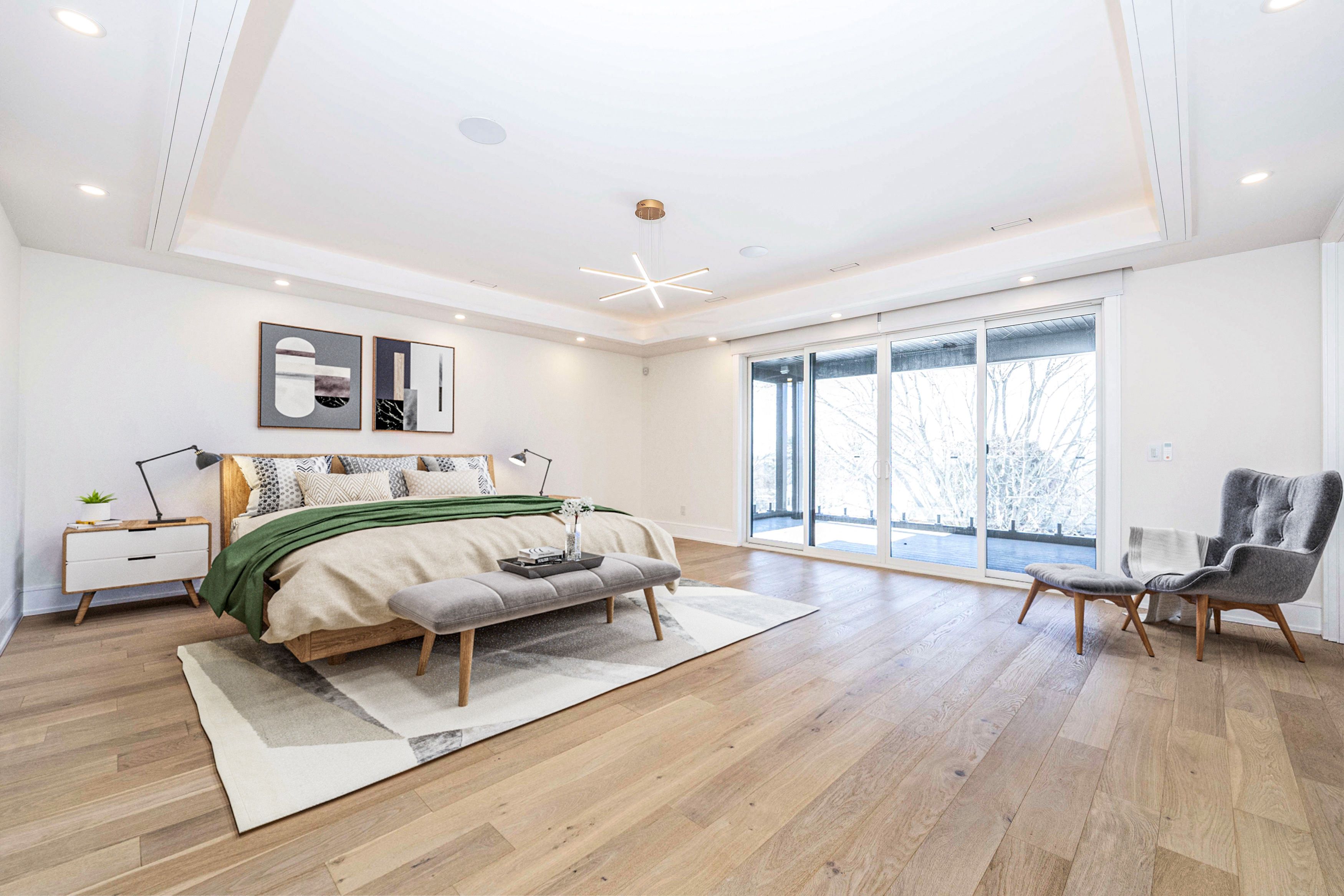 Experience refined waterfront living in this exceptional custom-built luxury mansion offering over 5,700 sq. Ft. Of finished living space along a tranquil canal off cook's bay with direct boating access to lake simcoe. Designed with architectural elegance and contemporary sophistication, the residence showcases expansive floor-to-ceiling windows, soaring ceilings, and two skylights that fill the interiors with natural light. Ceiling heights reach 14 ft in the office/library, 10'6" on the main level, 9 ft on the second floor, and 9'9" in the finished walk-out lower level. The home features four spacious bedrooms with an optional fifth bedroom and seven luxurious bathrooms, each bedroom appointed with private ensuites, custom closets, and marble finishes. The primary suite is a private retreat highlighted by custom millwork, an led-lit walk-in closet, and a spa-inspired ensuite. Elegant interior details include a wide-plank oak staircase with glass railings, wood paneling, and cove ceilings with led lighting. The chef's kitchen features custom cabinetry, a waterfall marble island, pantry, and wi-fi-enabled thermador appliances, complemented by premium fixtures from isenberg, rohl, and brizo. The professionally finished walk-out lower level features a wet bar with island, fridge, and dishwasher, a recreation room overlooking the water, and a spa area with jacuzzi, sauna, shower, and heated floors. A hydraulic oak-and-marble elevator connects all levels. Advanced systems include dual furnaces, hrvs, a navien combi-boiler, humidifiers, and zoned hot-water circulation, while the control4 smart home system manages lighting, climate, audio, blinds, alexa compatibility, 23 speakers, a smart intercom, and six security cameras. Outdoors, glass-railed balconies, composite decking, three gas fireplaces, bbq and firepit rough-ins, and professional landscaping with a rock waterfront wall create a resort-style setting ideal for year-round waterfront living.