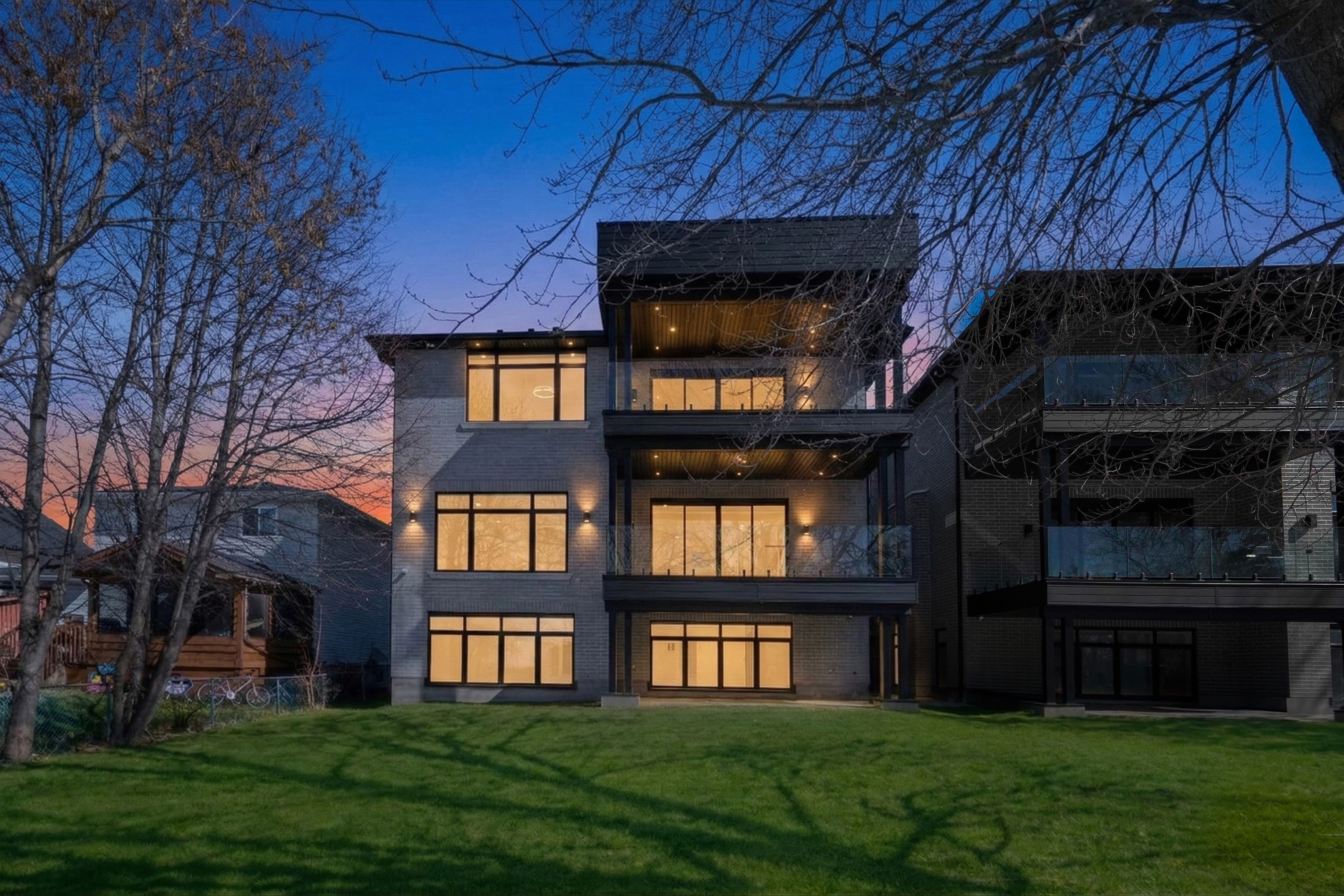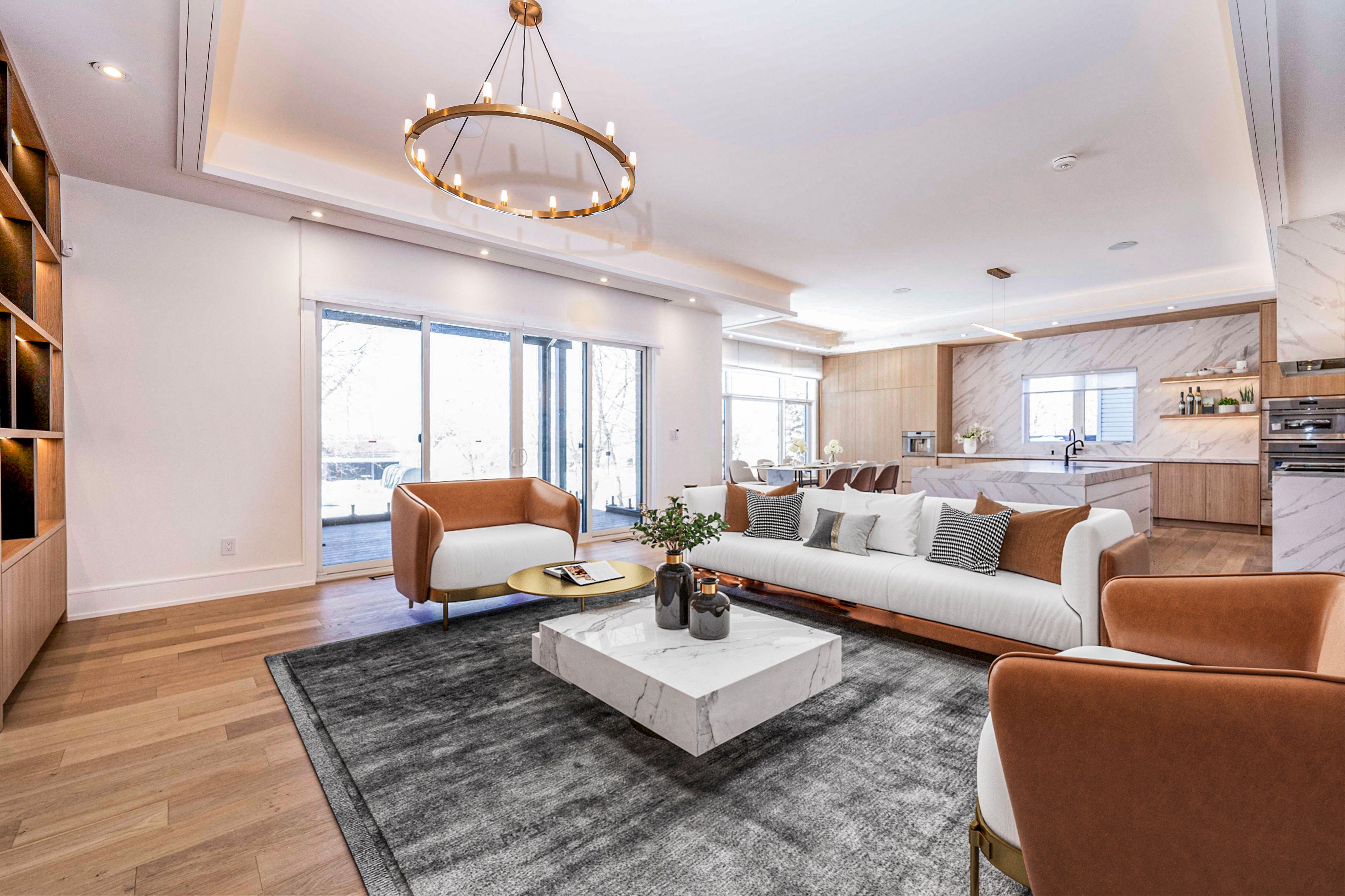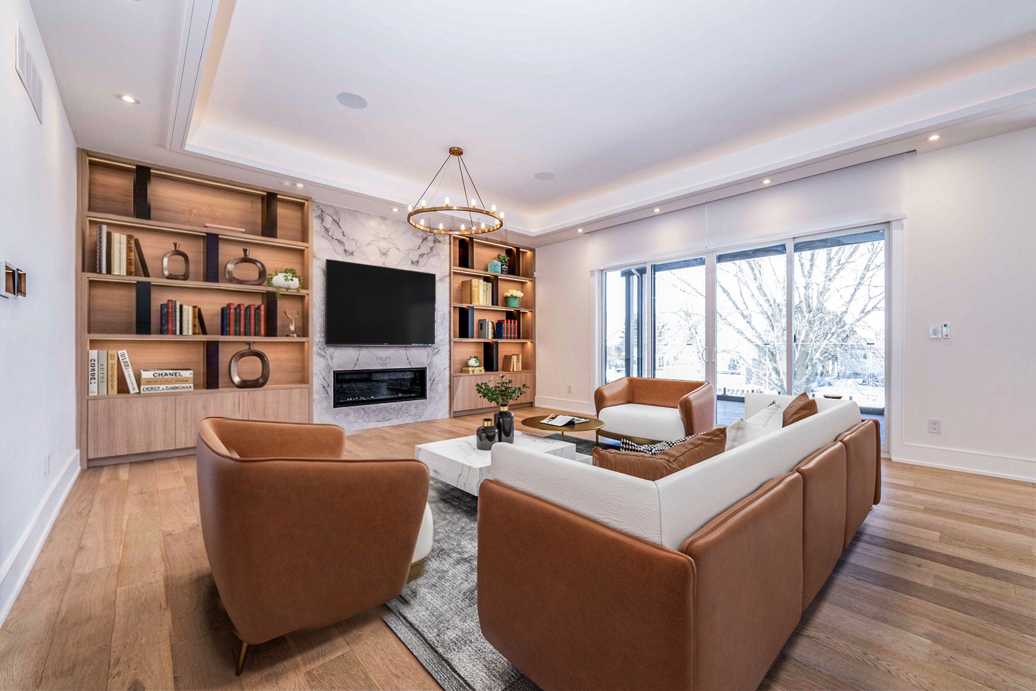Experience refined waterfront living in this exceptional custom-built luxury mansion offering over 5,700 sq. Ft. Of finished living space along a tranquil canal off cook's bay with direct boating access to lake simcoe. Designed with architectural elegance and contemporary sophistication, the residence showcases expansive floor-to-ceiling windows, soaring ceilings, and two skylights that fill the interiors with natural light. Ceiling heights reach 14 ft in the office/library, 10'6" on the main level, 9 ft on the second floor, and 9'9" in the finished walk-out lower level. The home features four spacious bedrooms with an optional fifth bedroom and seven luxurious bathrooms, each bedroom appointed with private ensuites, custom closets, and marble finishes. The primary suite is a private retreat highlighted by custom millwork, an led-lit walk-in closet, and a spa-inspired ensuite. Elegant interior details include a wide-plank oak staircase with glass railings, wood paneling, and cove ceilings with led lighting. The chef's kitchen features custom cabinetry, a waterfall marble island, pantry, and wi-fi-enabled thermador appliances, complemented by premium fixtures from isenberg, rohl, and brizo. The professionally finished walk-out lower level features a wet bar with island, fridge, and dishwasher, a recreation room overlooking the water, and a spa area with jacuzzi, sauna, shower, and heated floors. A hydraulic oak-and-marble elevator connects all levels. Advanced systems include dual furnaces, hrvs, a navien combi-boiler, humidifiers, and zoned hot-water circulation, while the control4 smart home system manages lighting, climate, audio, blinds, alexa compatibility, 23 speakers, a smart intercom, and six security cameras. Outdoors, glass-railed balconies, composite decking, three gas fireplaces, bbq and firepit rough-ins, and professional landscaping with a rock waterfront wall create a resort-style setting ideal for year-round waterfront living.
