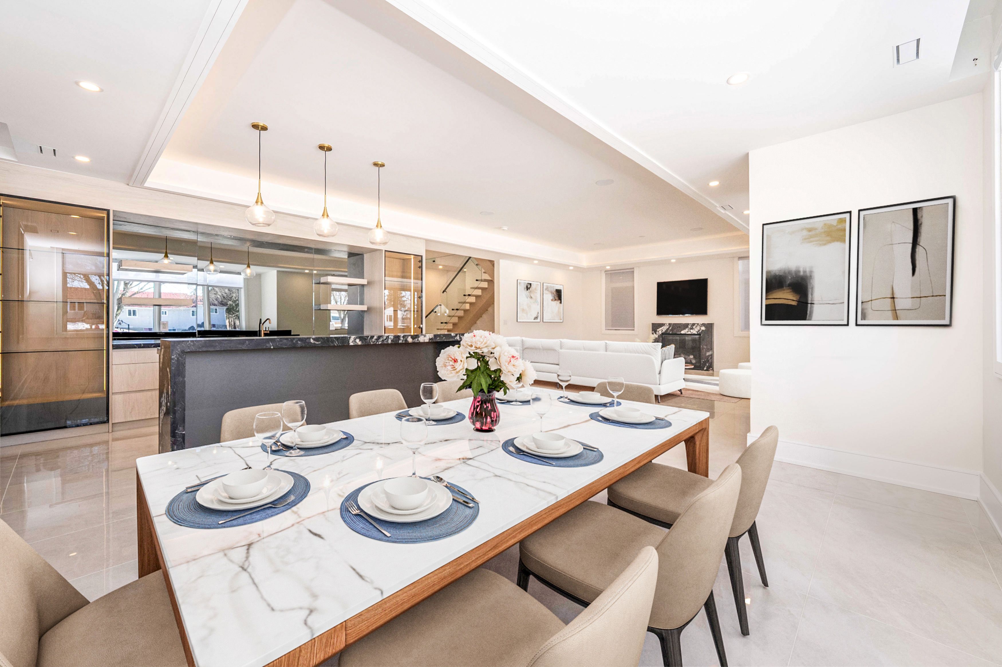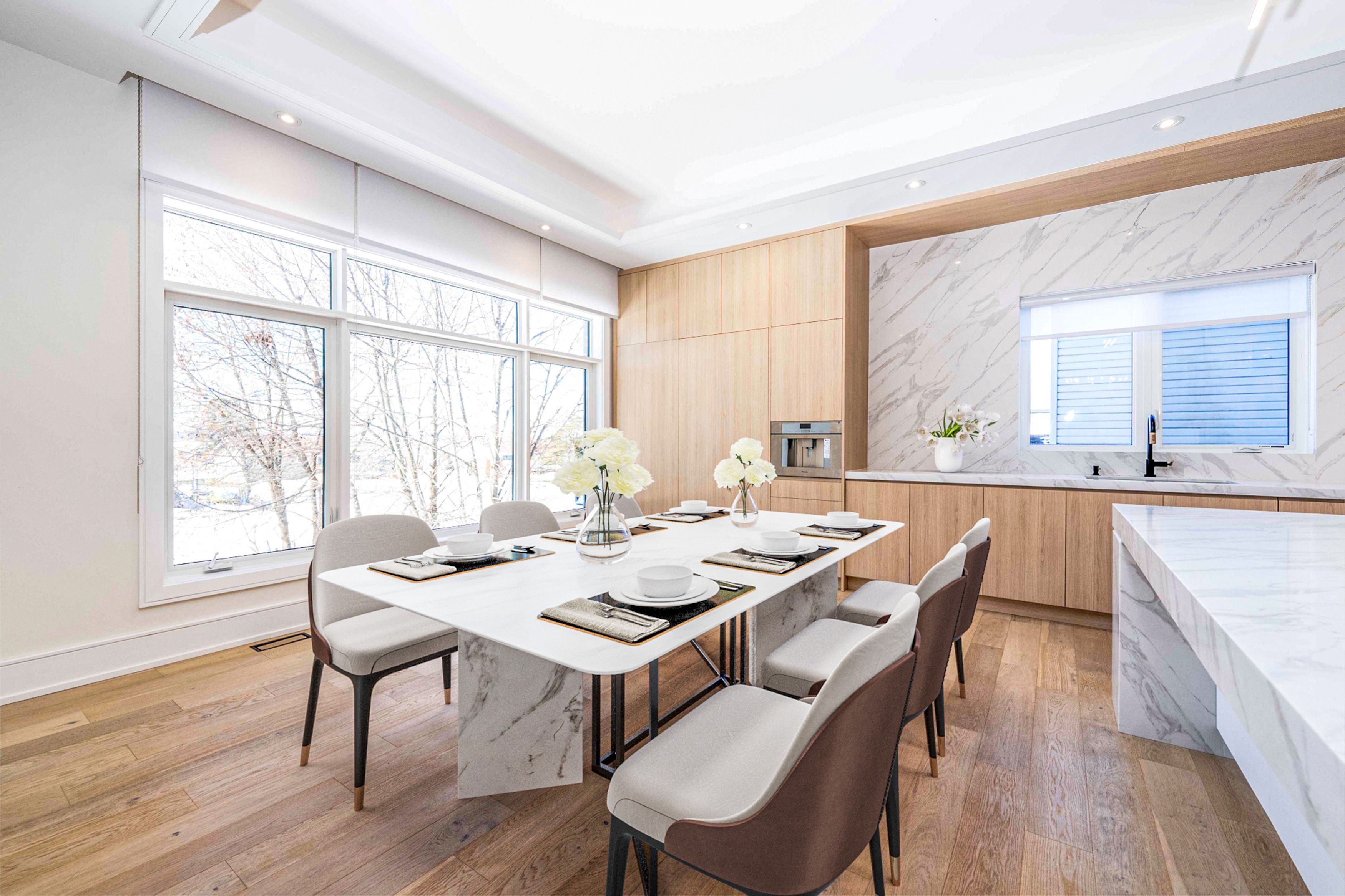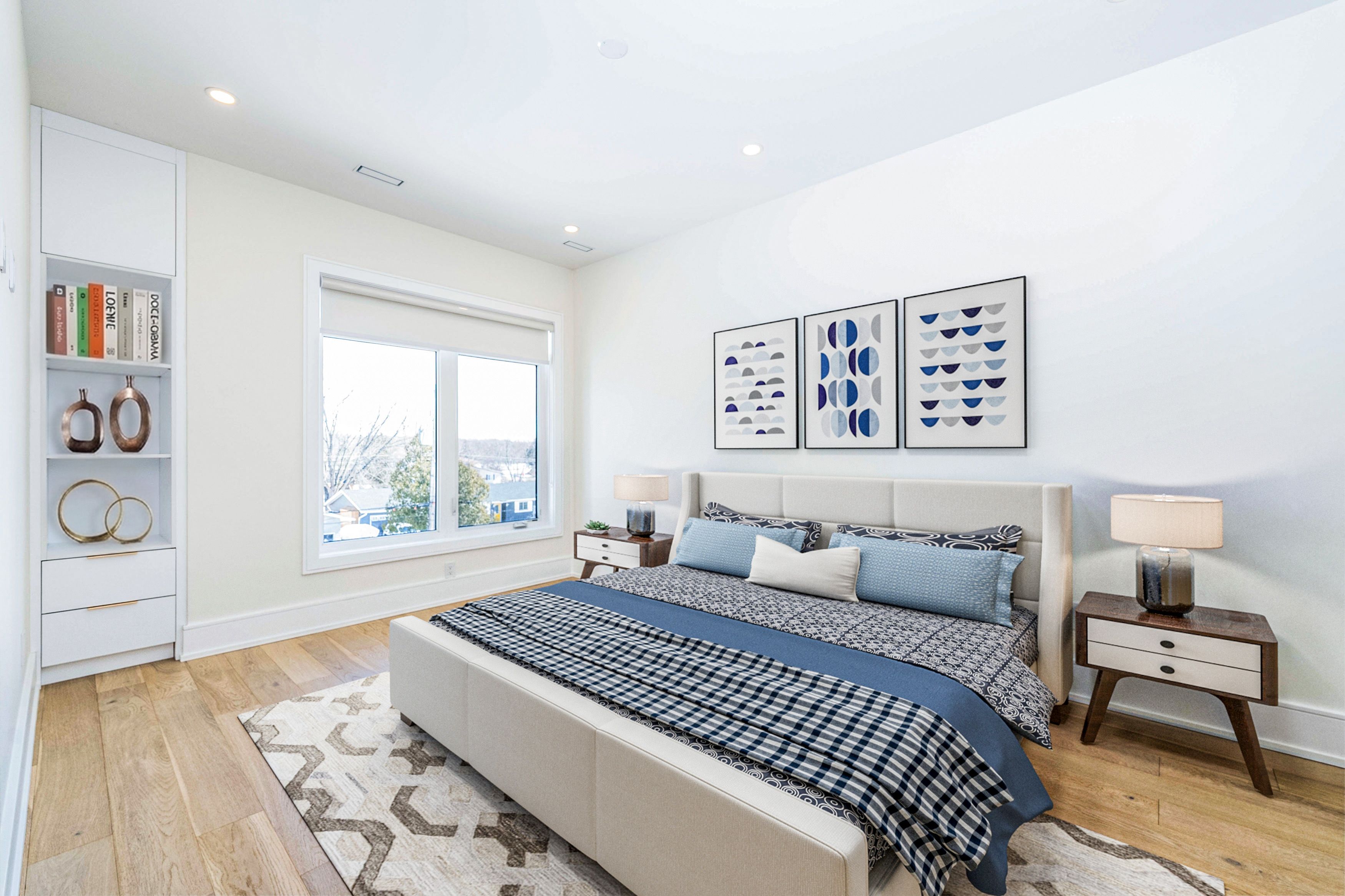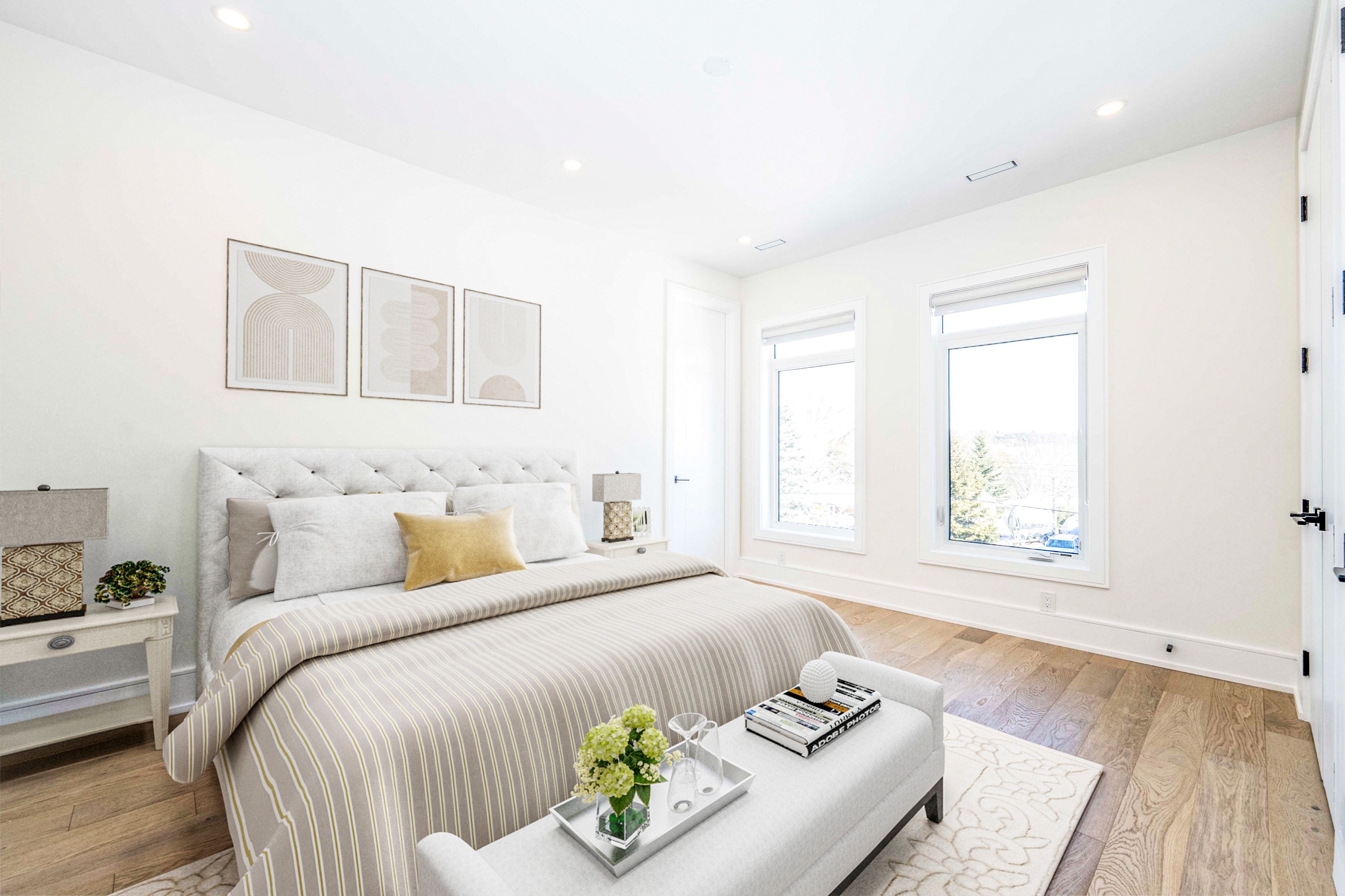 Experience refined waterfront living in this exceptional custom-built luxury mansion offering over 5,700 sq. Ft. Of finished living space along a tranquil canal off cook's bay with direct boating access to lake simcoe. Designed with architectural elegance and contemporary sophistication, the residence showcases expansive floor-to-ceiling windows, soaring ceilings, and two skylights that fill the interiors with natural light. Ceiling heights reach 14 ft in the office/library, 10'6" on the main level, 9 ft on the second floor, and 9'9" in the finished walk-out lower level. The home features four spacious bedrooms with an optional fifth bedroom and seven luxurious bathrooms, each bedroom appointed with private ensuites, custom closets, and marble finishes. The primary suite is a private retreat highlighted by custom millwork, an led-lit walk-in closet, and a spa-inspired ensuite. Elegant interior details include a wide-plank oak staircase with glass railings, wood paneling, and cove ceilings with led lighting. The chef's kitchen features custom cabinetry, a waterfall marble island, pantry, and wi-fi-enabled thermador appliances, complemented by premium fixtures from isenberg, rohl, and brizo. The professionally finished walk-out lower level features a wet bar with island, fridge, and dishwasher, a recreation room overlooking the water, and a spa area with jacuzzi, sauna, shower, and heated floors. A hydraulic oak-and-marble elevator connects all levels. Advanced systems include dual furnaces, hrvs, a navien combi-boiler, humidifiers, and zoned hot-water circulation, while the control4 smart home system manages lighting, climate, audio, blinds, alexa compatibility, 23 speakers, a smart intercom, and six security cameras. Outdoors, glass-railed balconies, composite decking, three gas fireplaces, bbq and firepit rough-ins, and professional landscaping with a rock waterfront wall create a resort-style setting ideal for year-round waterfront living.