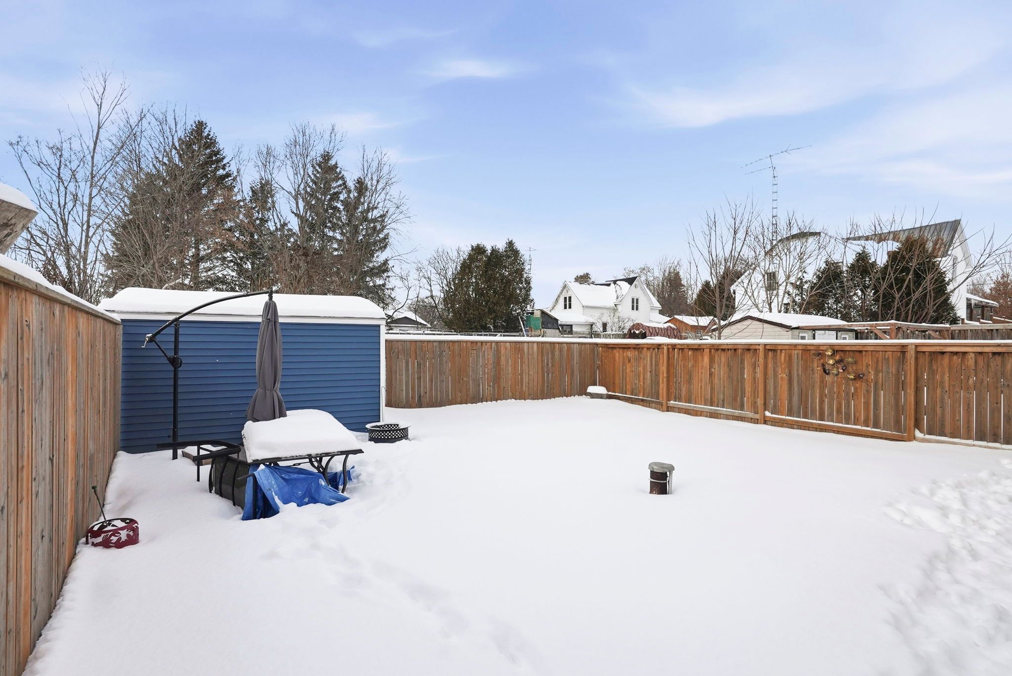 • Fenced backyard with a patio and landscaped grounds for outdoor enjoyment.