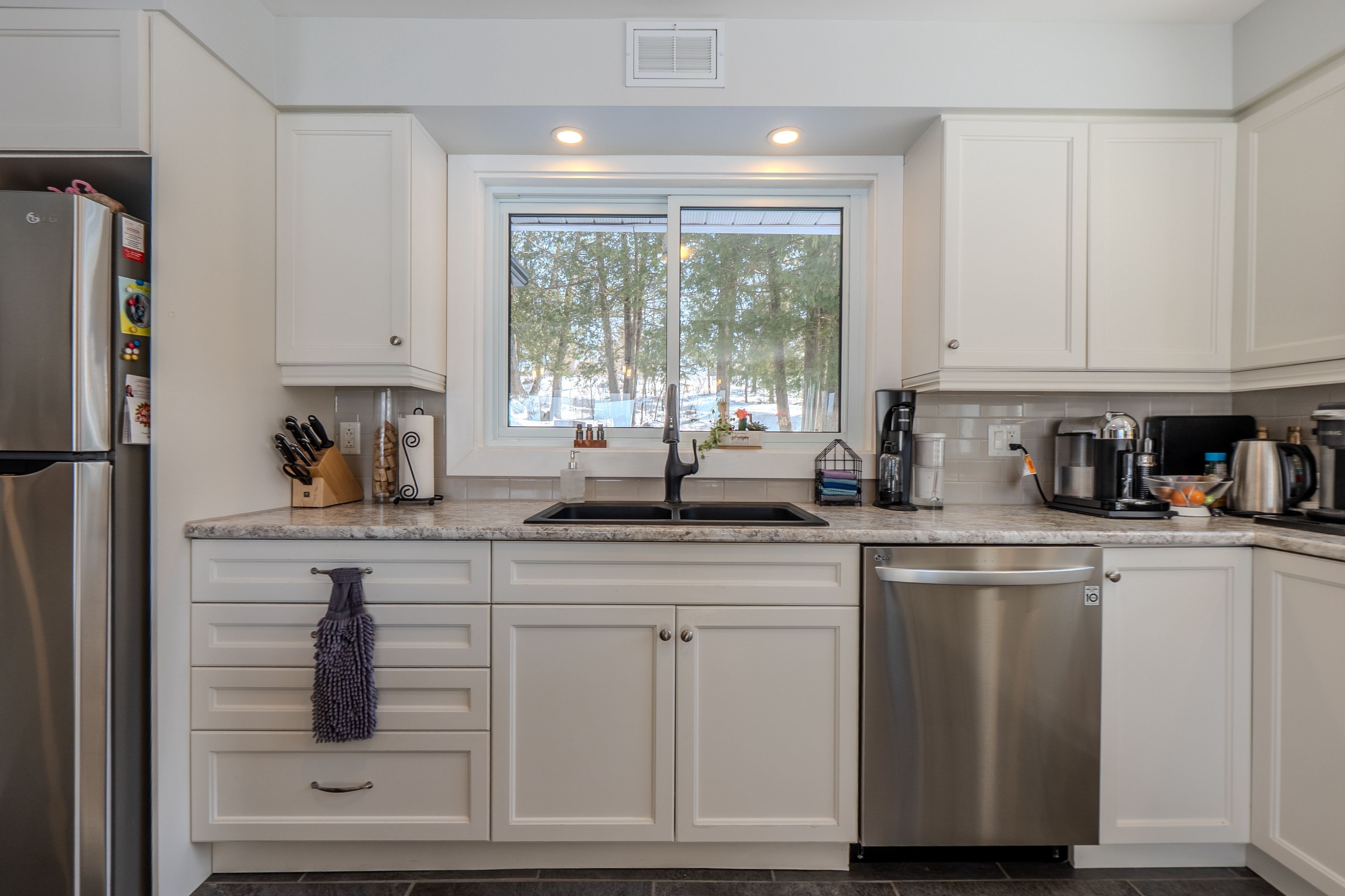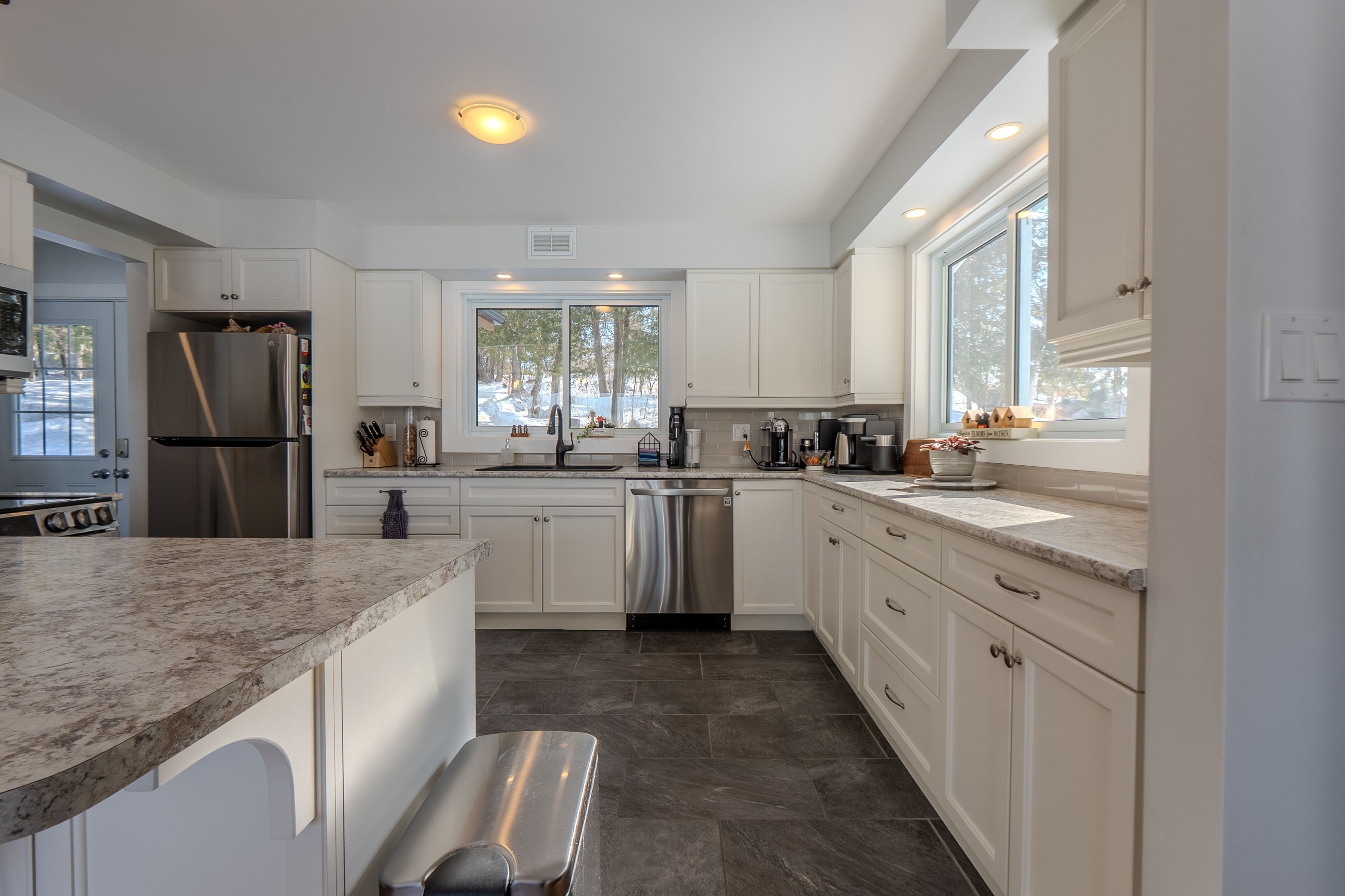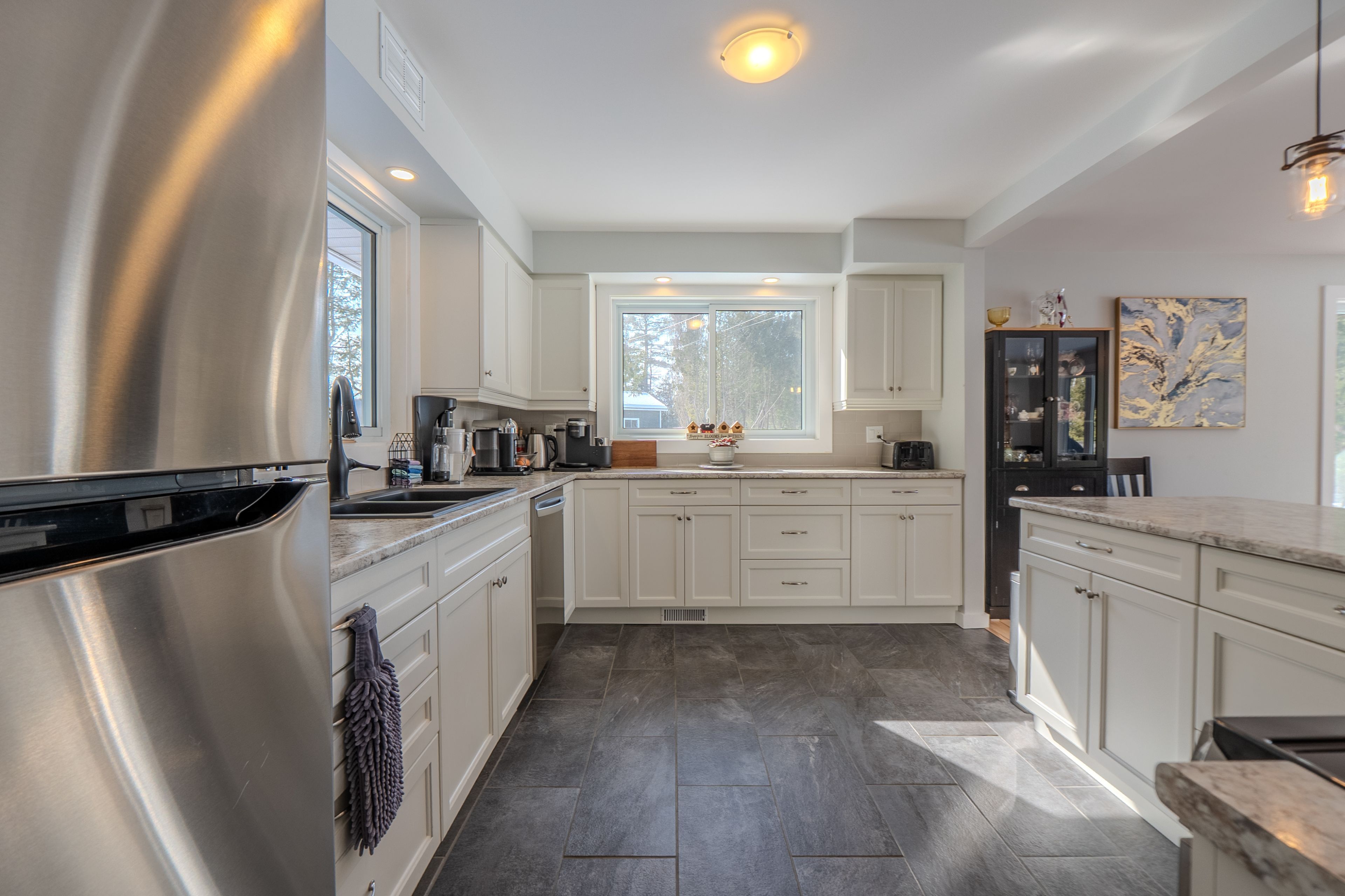 • Well-equipped kitchen with stainless steel appliances and ample counter space.