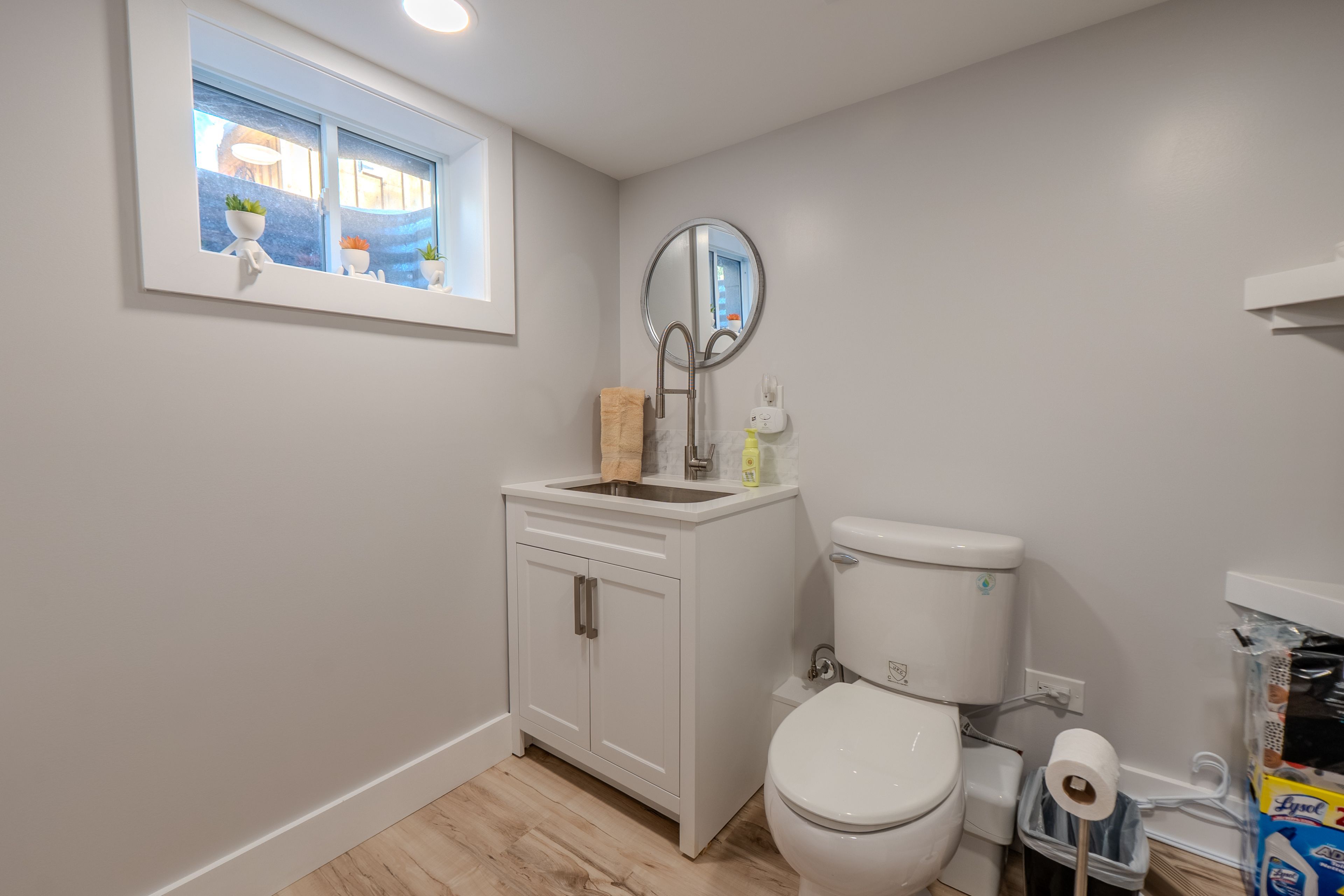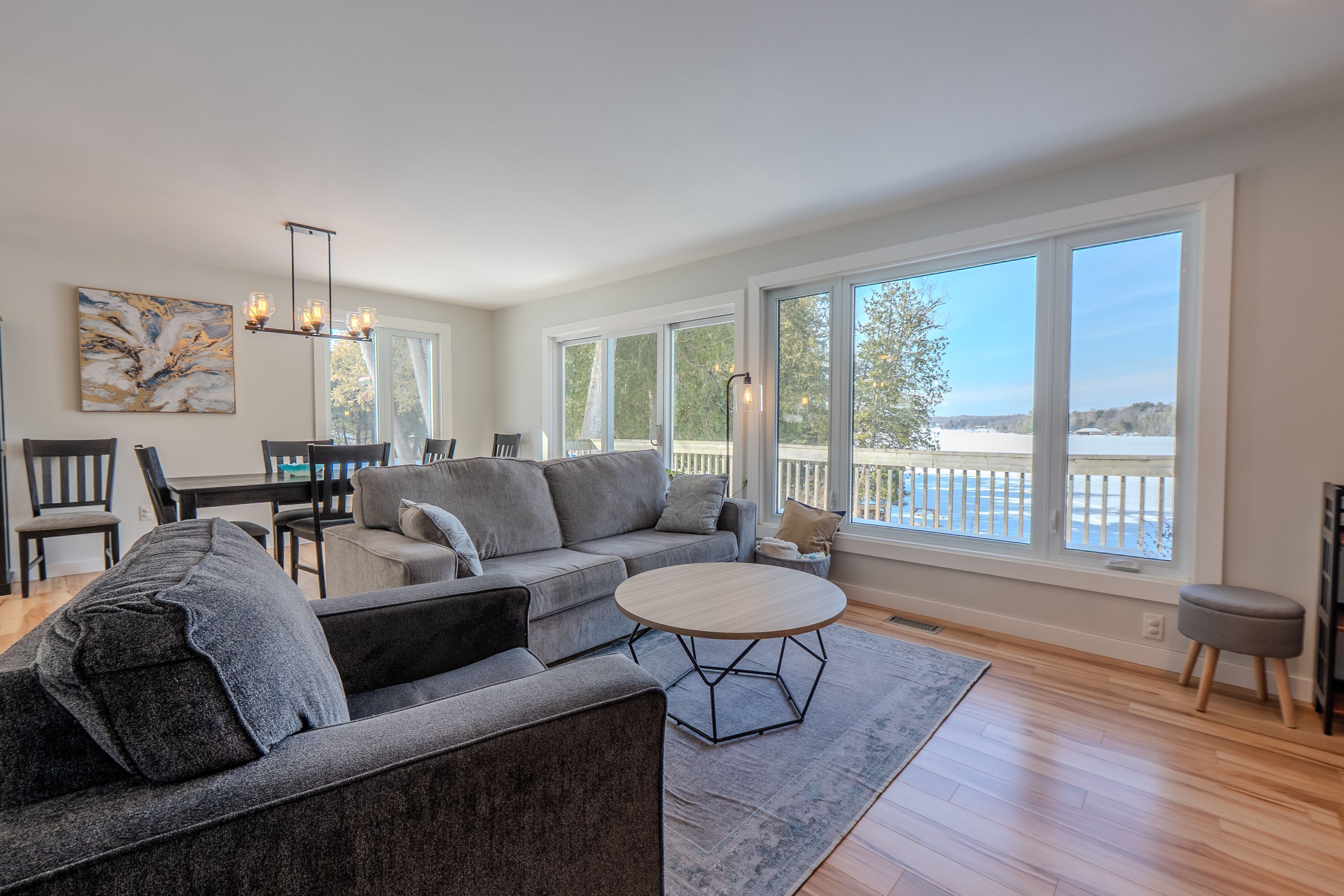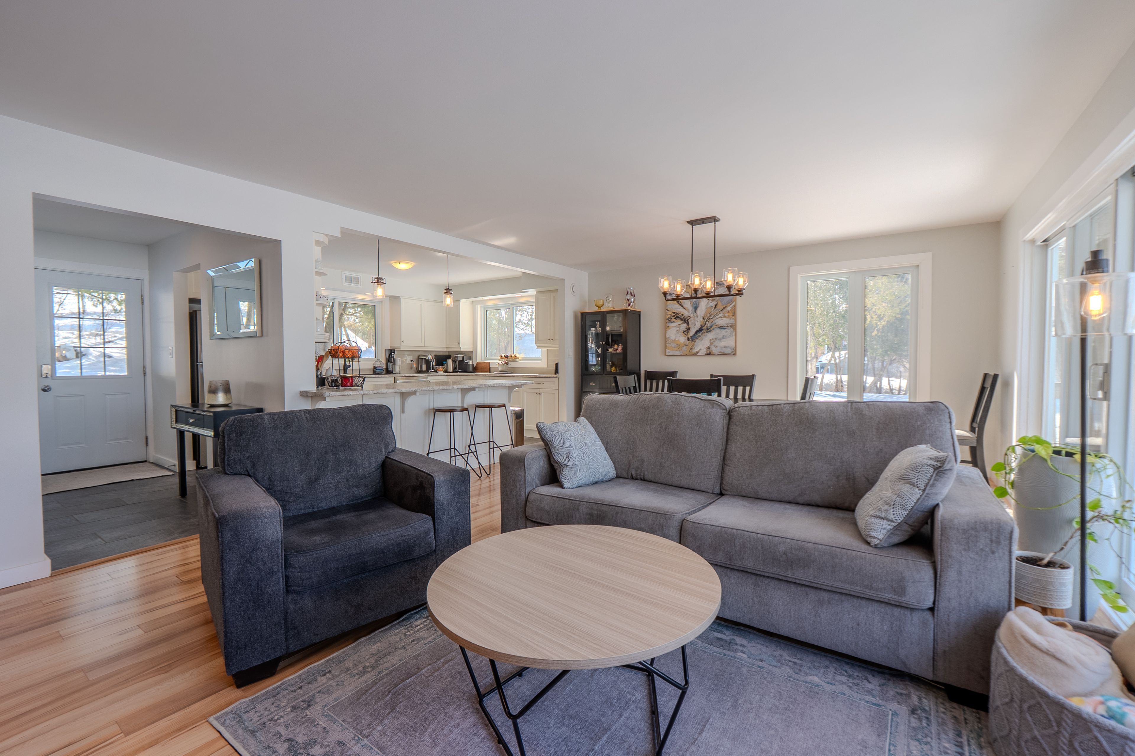 • Open-concept living area with hardwood floors and abundant natural light.