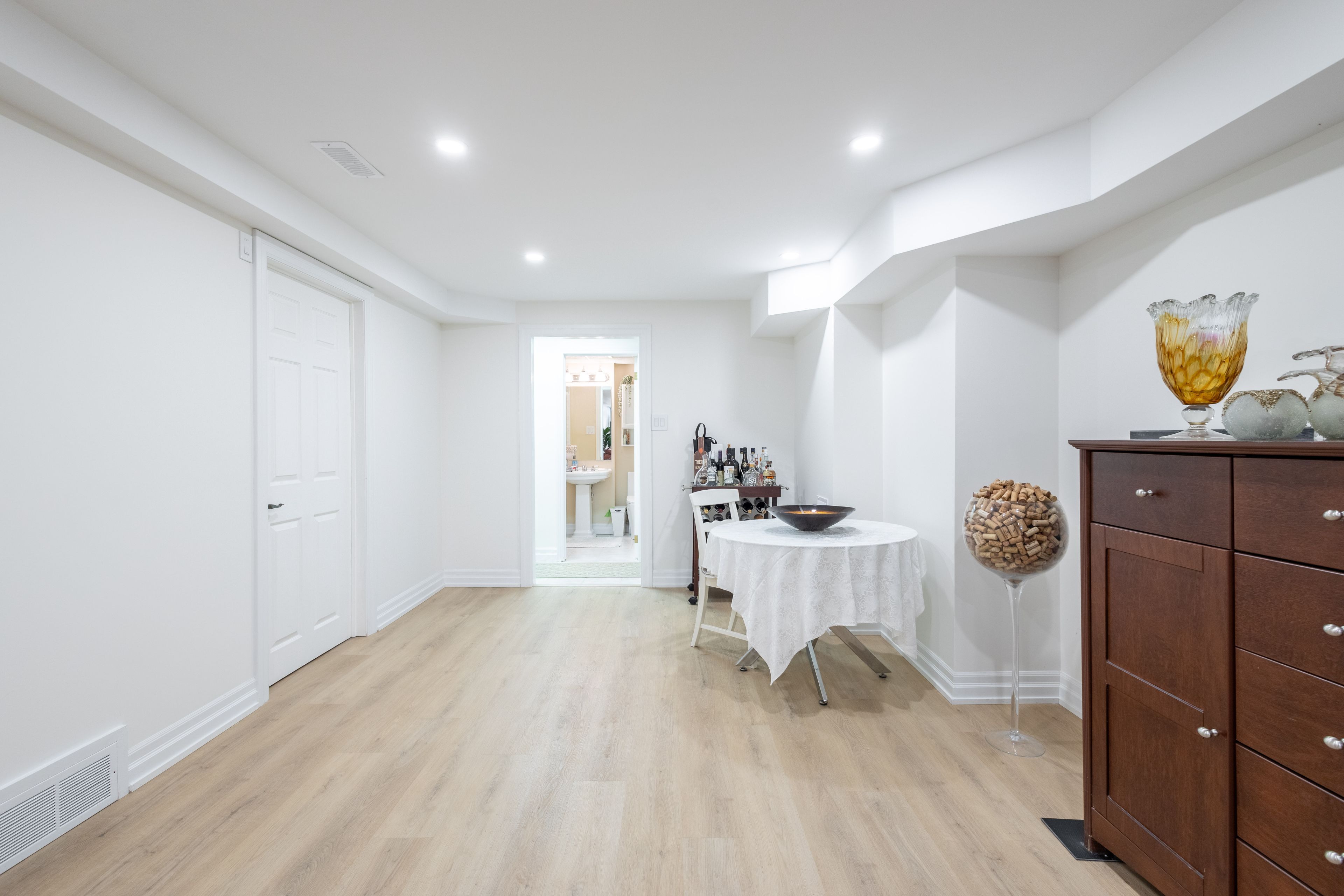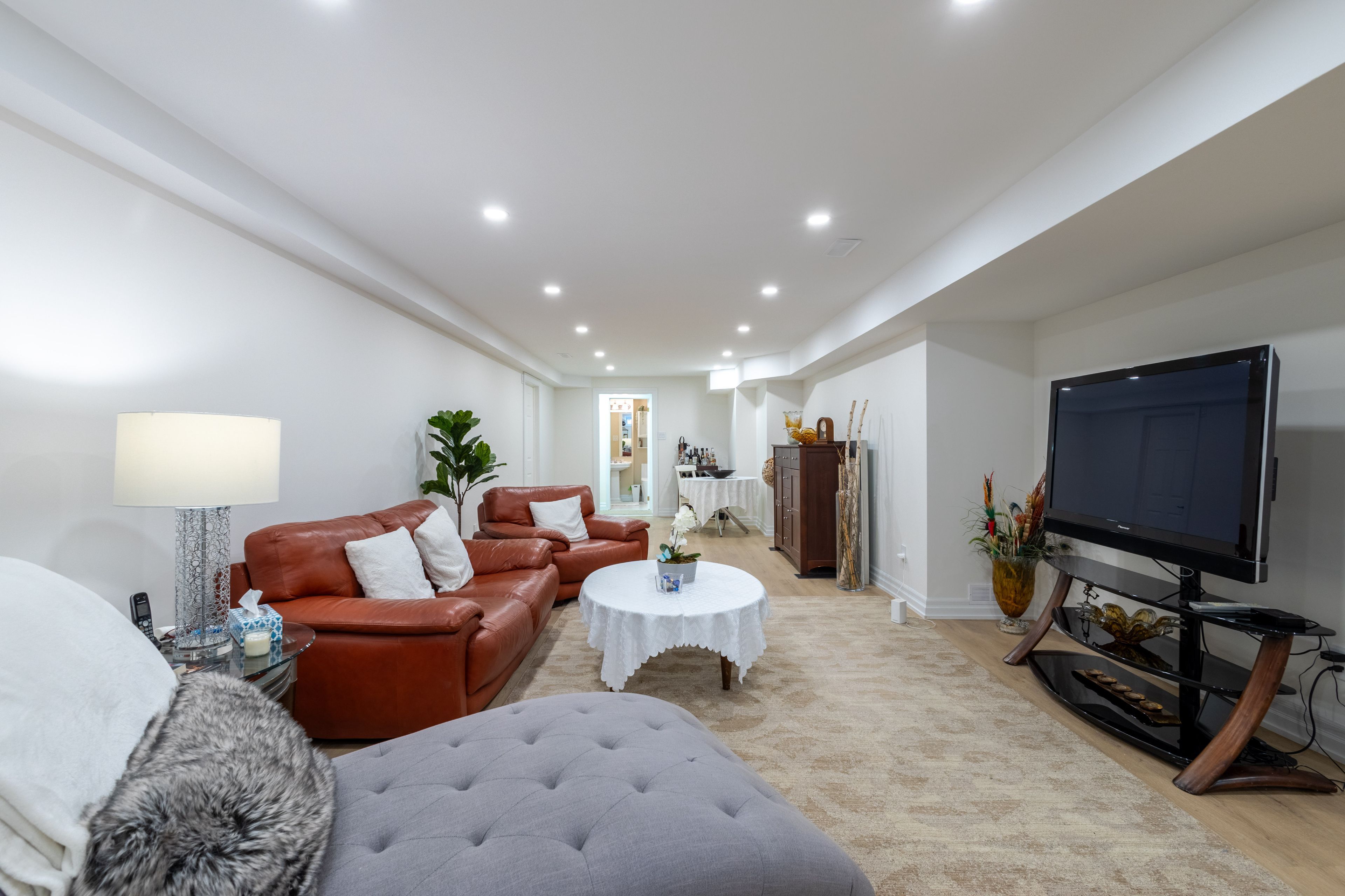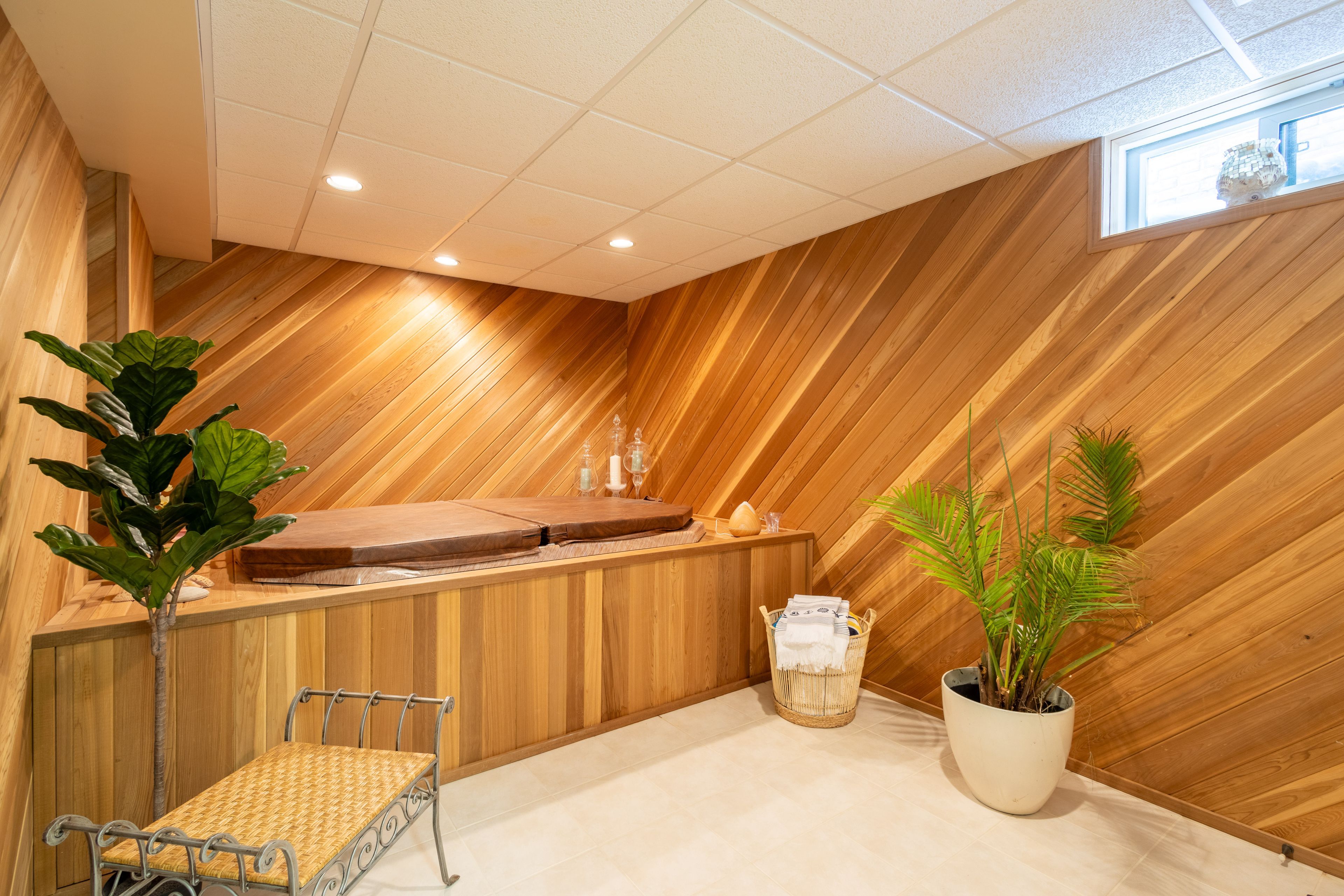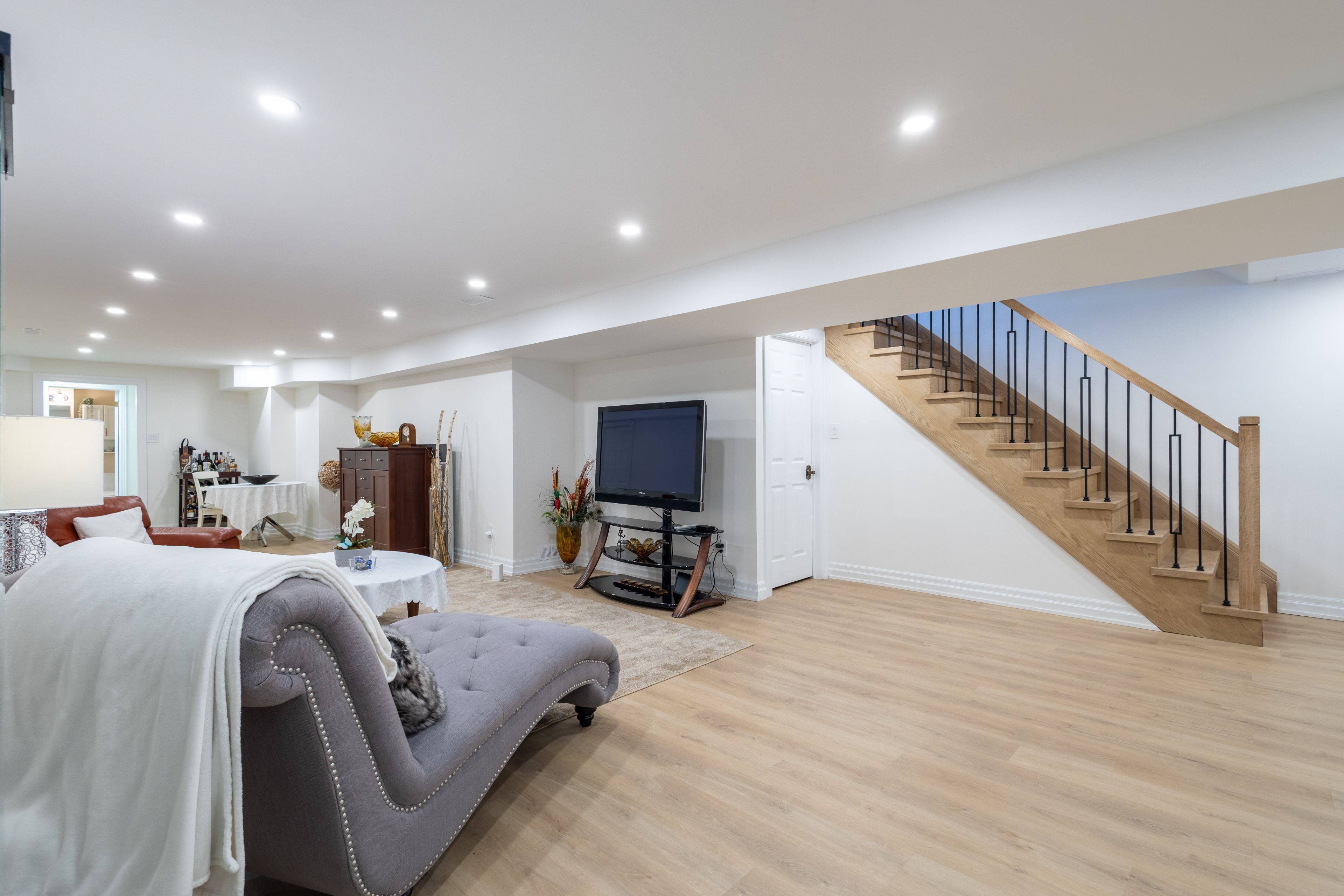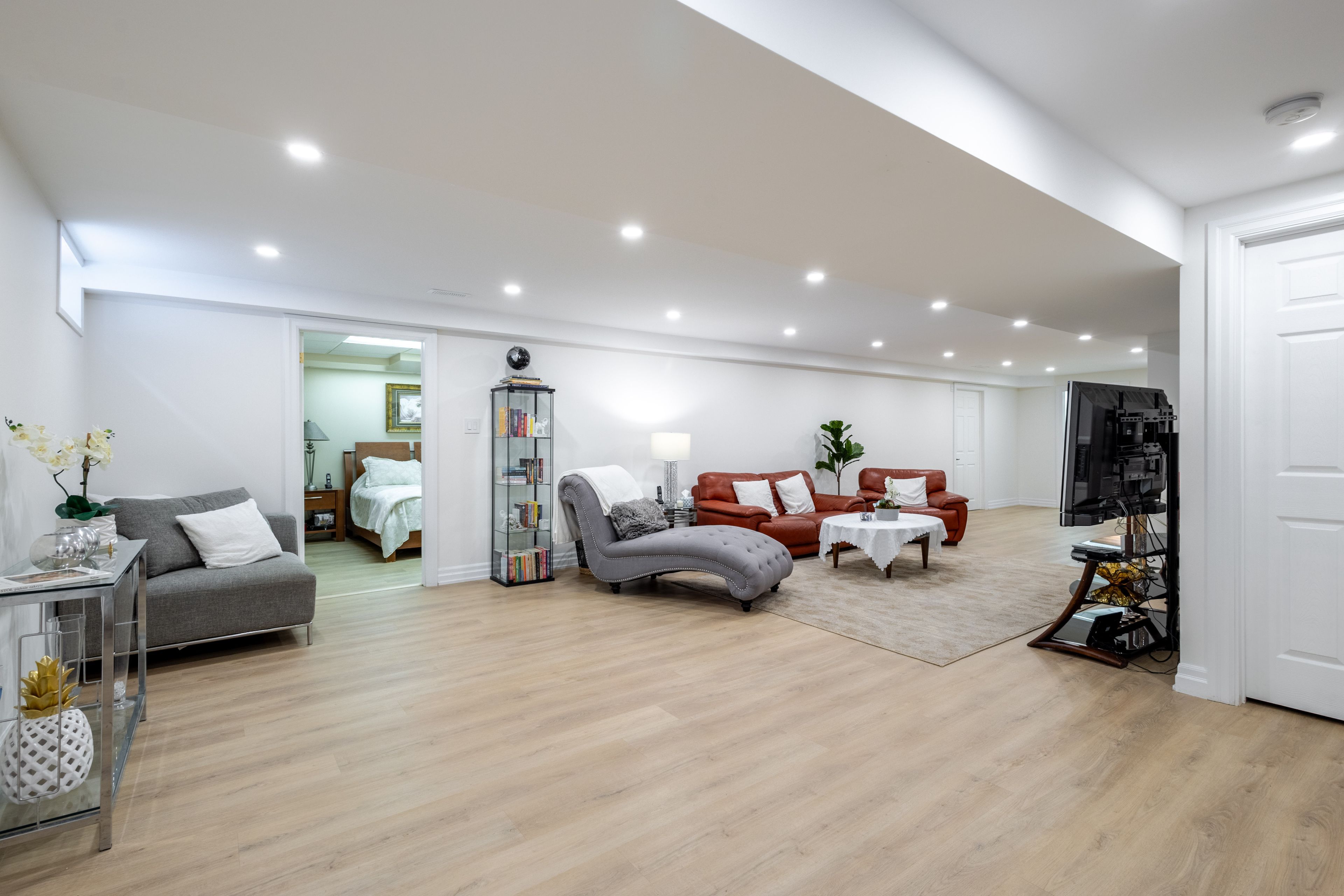 • Fully finished basement includes a bedroom, rec room, and spa room.