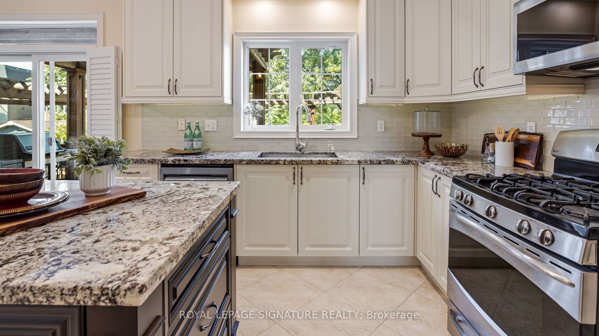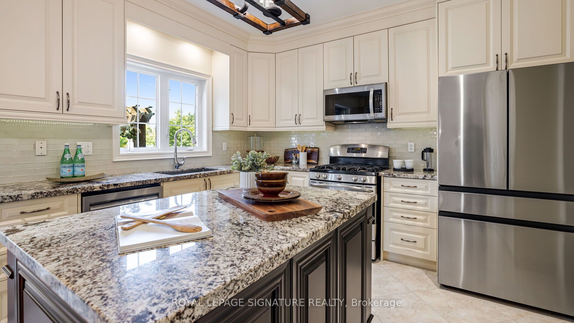 • Modern kitchen featuring stainless steel appliances and granite countertops.
