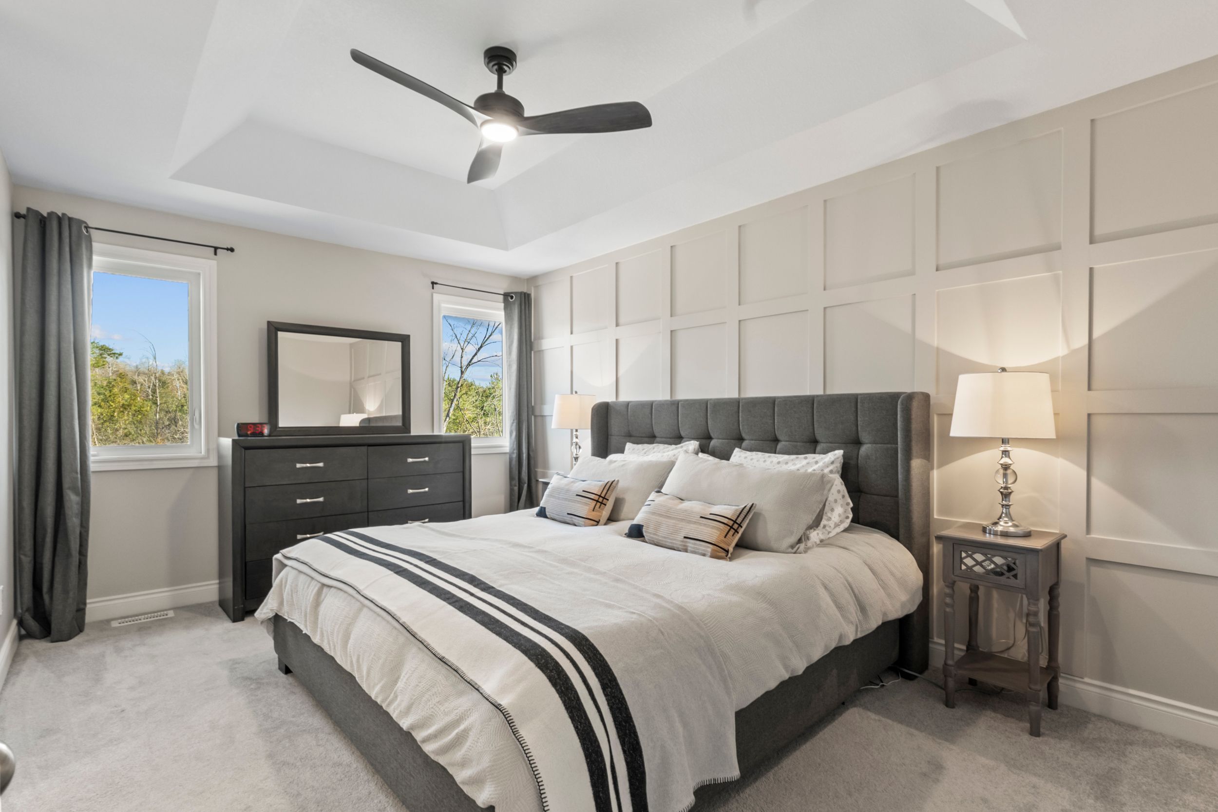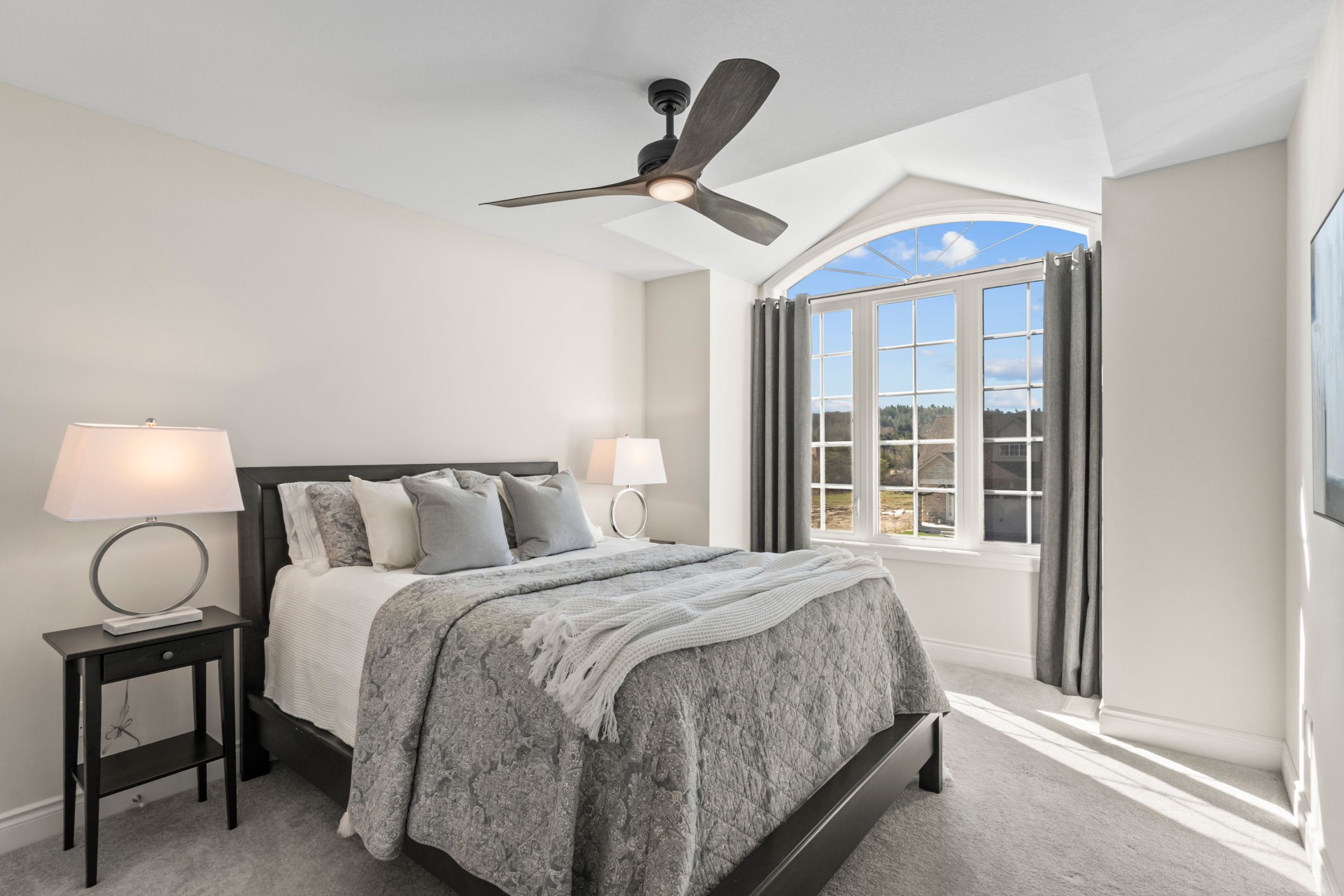 • Spacious primary suite features vaulted ceiling and walk-in closet.