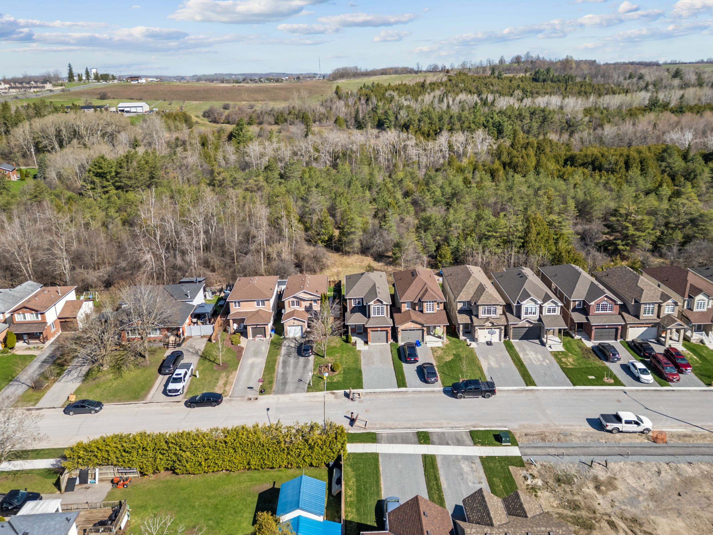 Absolutely stunning 3-bedroom, 4-bathroom family home in the sought after village of millbrook. This beautifully upgraded 2-storey offers a perfect blend of modern comfort and small-town charm, nestled on a quiet cul-de-sac enclave backing onto parkland with no rear neighbours. Thoughtfully designed for family living, this home features a bright and functional layout with a main floor office/bonus room, convenient laundry with garage access, and hardwood flooring throughout the main living areas. The stylish kitchen is complete with quartz countertops, stainless steel appliances, and a walkout to a fully fenced and landscaped backyard ideal for entertaining or relaxing. Upstairs, the spacious primary suite showcases a vaulted ceiling, feature wall, and walk-in closet, while the additional bedrooms offer ample space and design touches. The finished basement (2024) adds valuable living space with a bathroom, and storage area. Located in a family-friendly community close to a newer elementary school, daycare, rec centre, trails, and amenities, with easy access to hwy 115 and 407 for commuters. A true turn-key home in an exceptional location.
