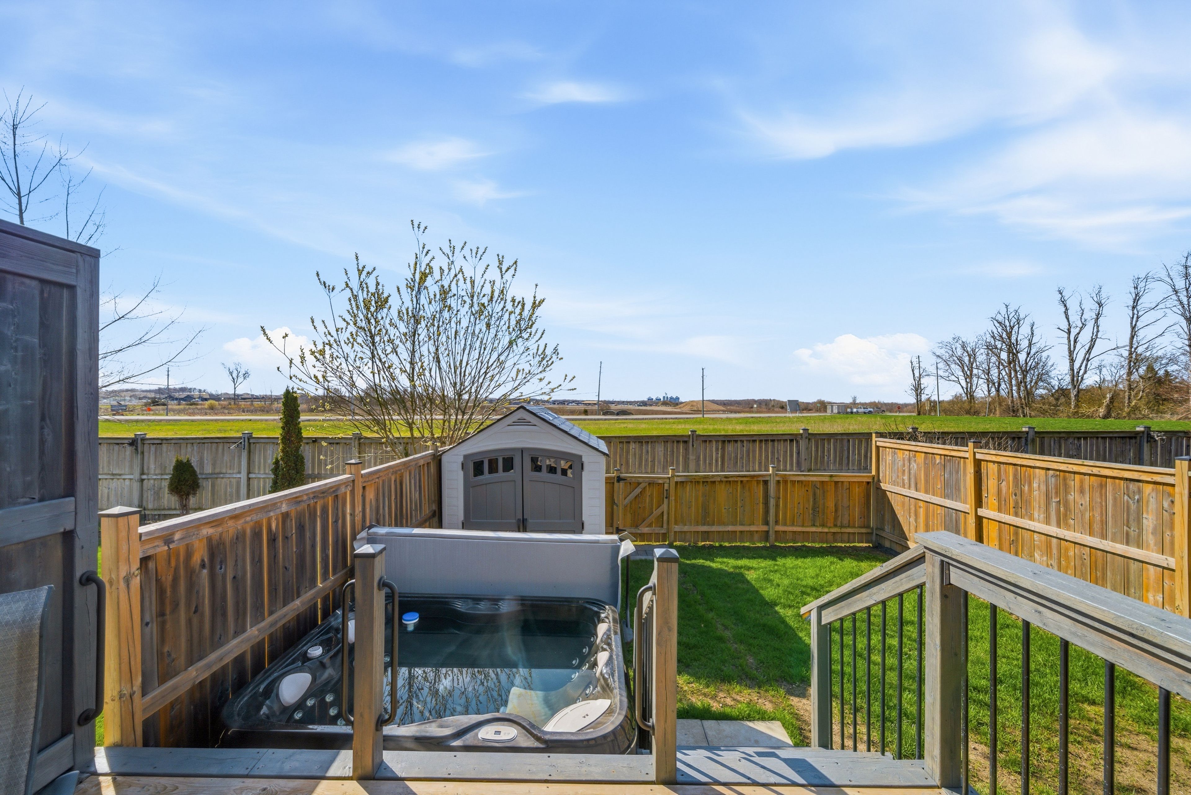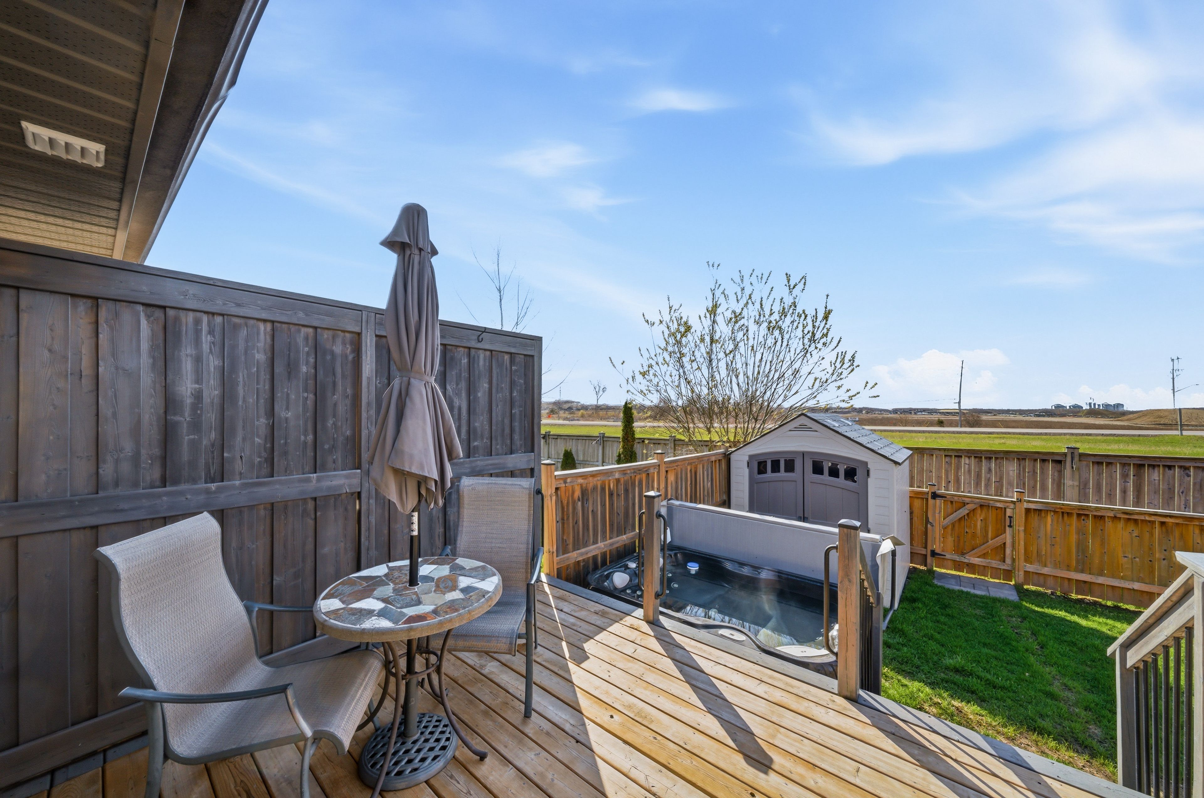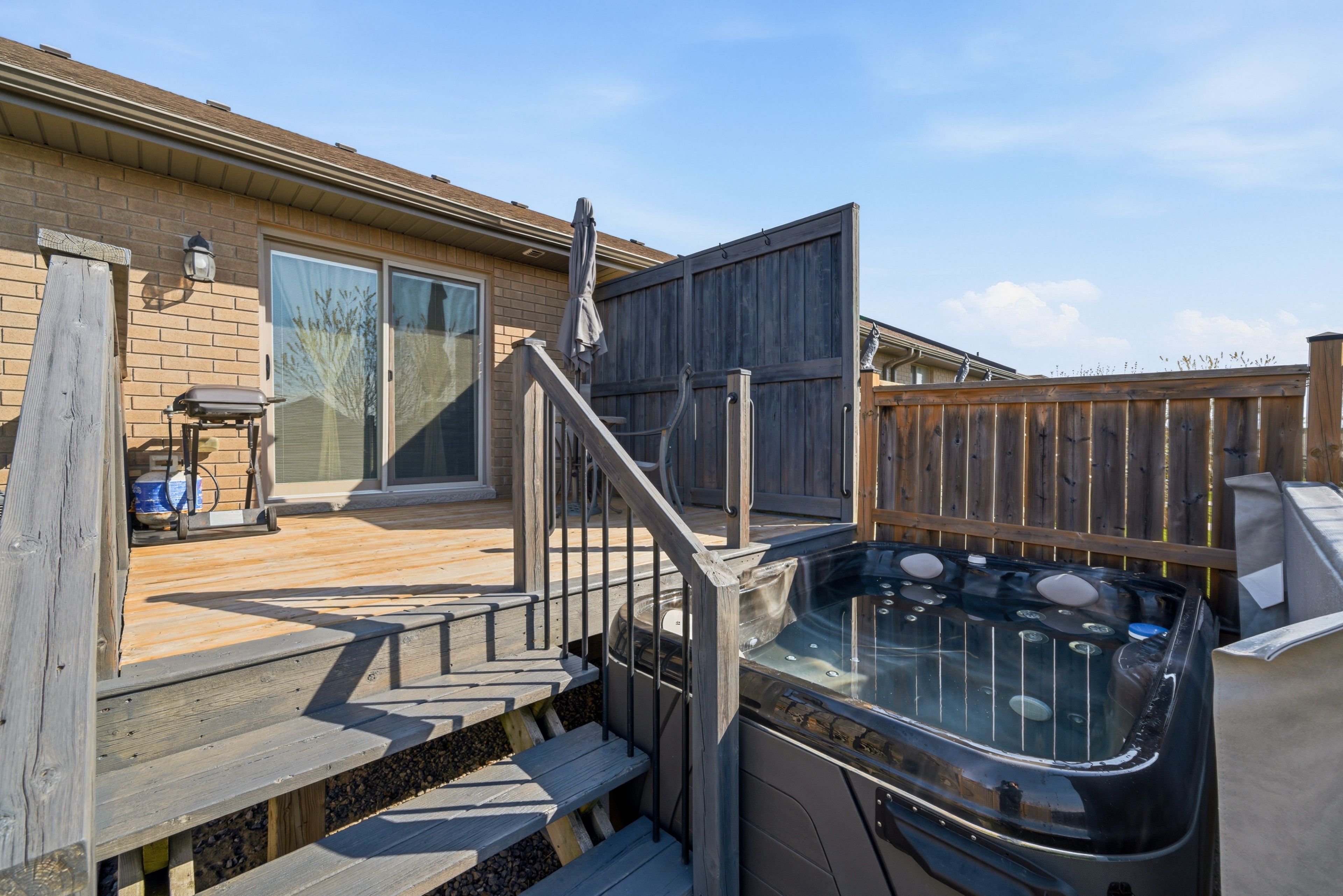 • Private deck and fully fenced backyard with a hot tub.