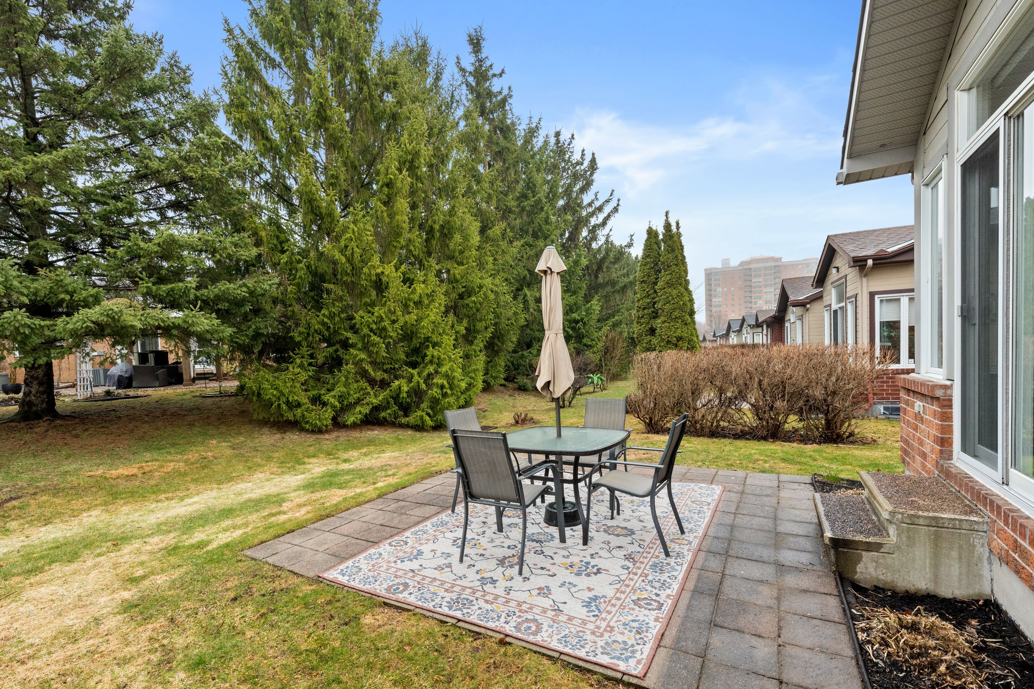 • Private backyard with patio, mature trees, and access to community activities.