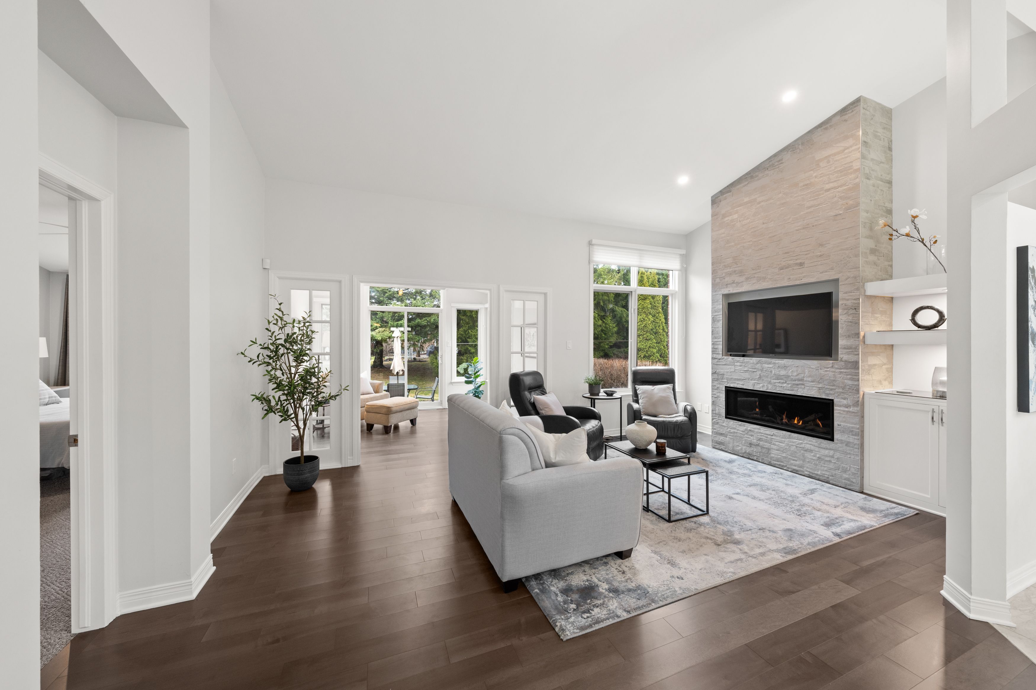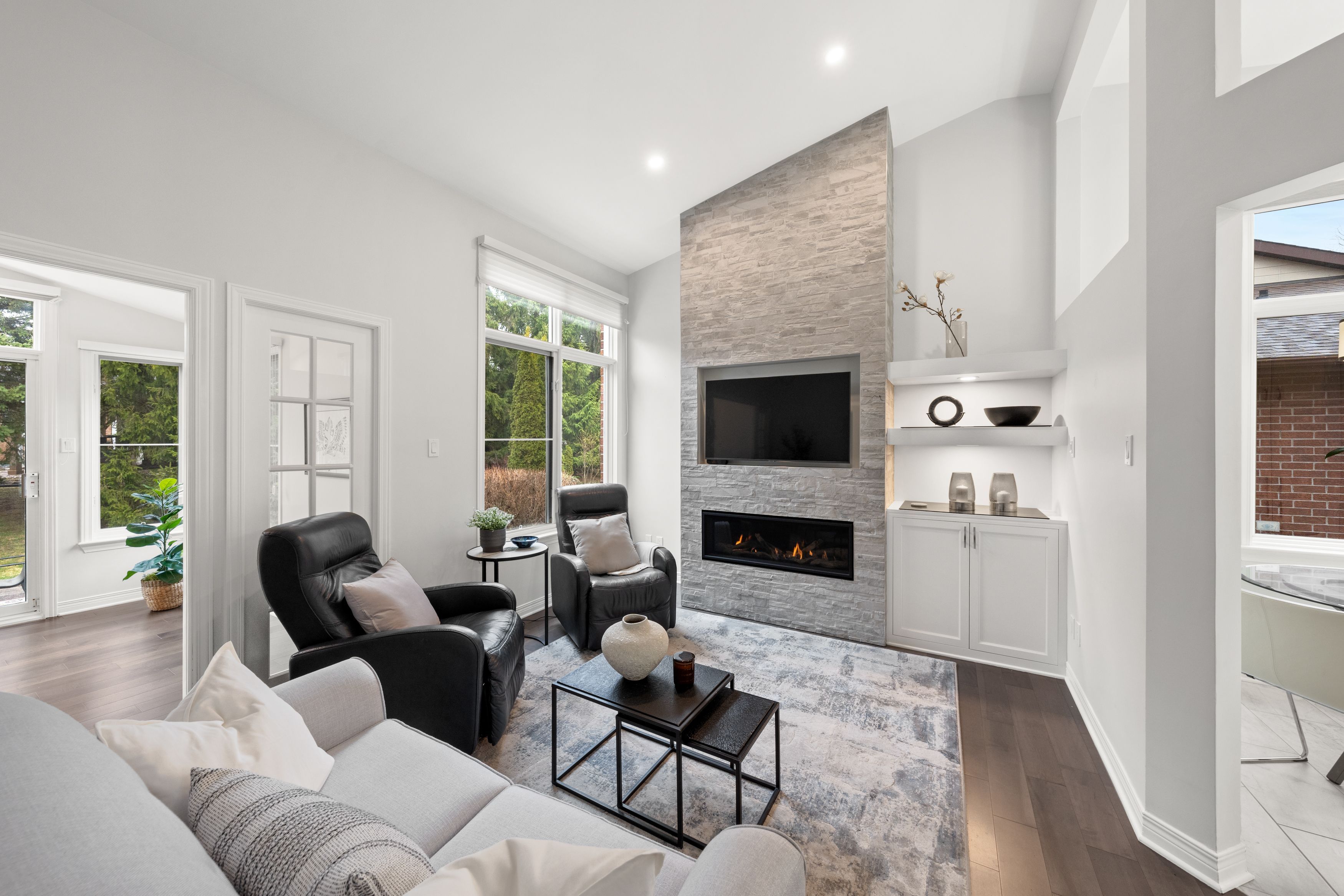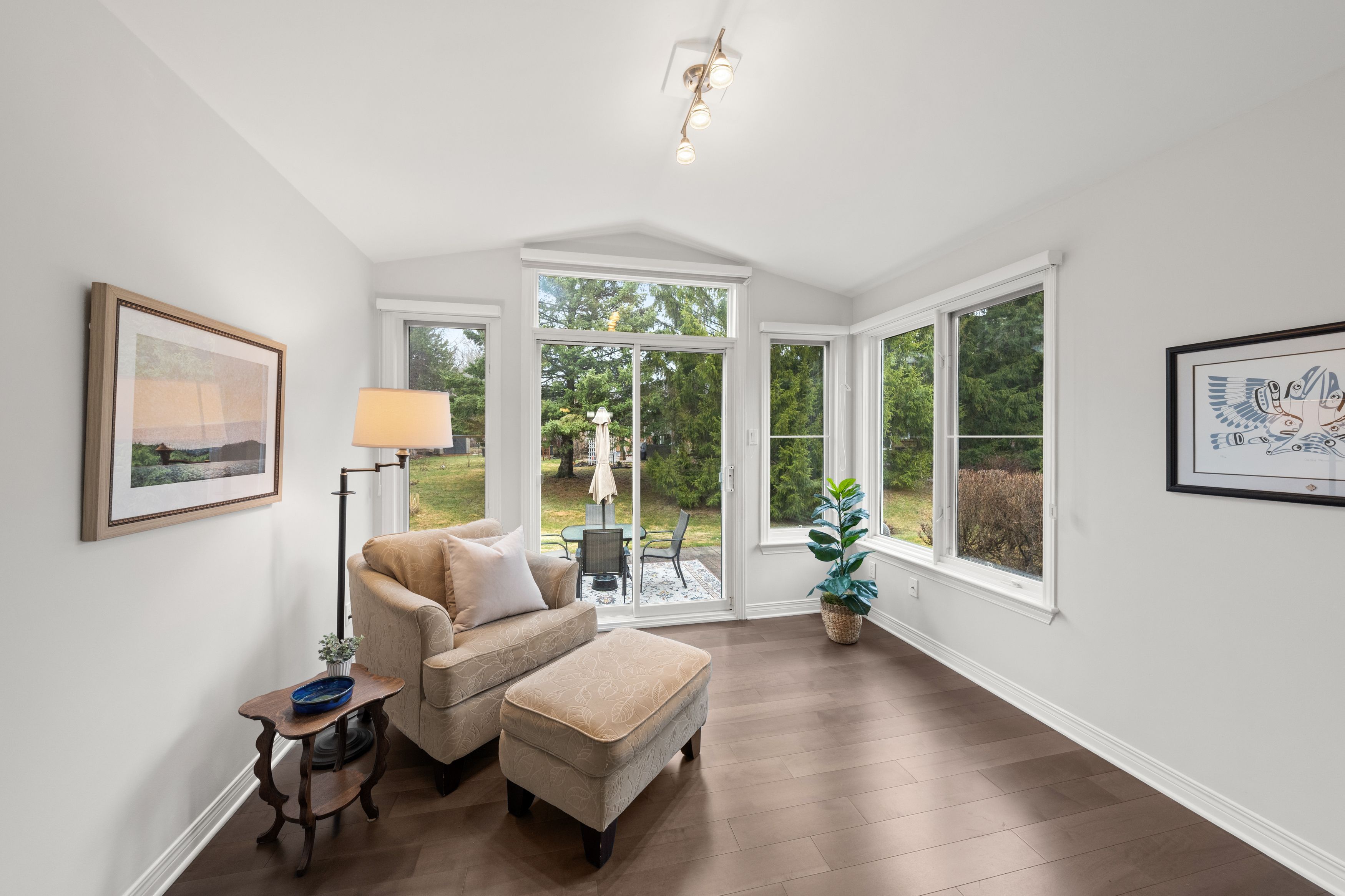 Open house sun april 26, 2-4pm. Situated in a sought-after kanata lakes adult lifestyle community within walking distance to kanata centrum shopping & amenities, this updated 2+1 bdrm, 3 bath end unit bungalow offers over $180k in renovations & ~2,100 sq ft of finished living space on both levels, ideal for entertaining & everyday comfort, along w/ a welcoming sense of community! Interlock driveway & walkway lead through landscaped gardens to front porch w/ epoxy floor (2025). Inside, a bright tiled foyer opens to hw floors (2017) & a spacious dining area, where vaulted ceilings & architectural wall cutouts create an airy feel. The stunning living rm (2017) is a showstopper, anchored by a gas fp w/ stone surround & tv above, along w/ custom built-in & shelving w/ lighting. French-style glass panels frame the entry to a bright sunroom w/ vaulted ceiling, large windows & patio door to the backyard. The renovated kitchen (2017) features white cabinetry, subway tile backsplash, quartz countertops, ss appl, pot lights, pantry storage & eating area w/ large window & automatic blinds. The primary bdrm offers backyard views w/ vaulted ceiling & large wic, along w/ spa-inspired ensuite (2019) w/ abundant storage, custom quartz vanity & tiled glass rainfall shower w/ niches & bench. A second bdrm w/ skylight & large closet overlooks the front porch & renovated main bath (2019) w/ tub/shower combo. The laundry rm w/ cabinetry offers direct access to the foyer, kitchen & garage, making it easy to bring in groceries. The finished ll features a large family rm w/ gas fp, an office area, third bdrm, full bath - offering excellent potential for extended family or guest suite, plus a wet bar, studio/workshop & utility rm. The backyard w/ patio, privacy hedges & views of mature trees offers a quiet setting to relax & entertain. Nearby community clubhouse offers regular gatherings & activities. This is a home you won't want to miss! 24 hours irrevocable on all offers, preferred.