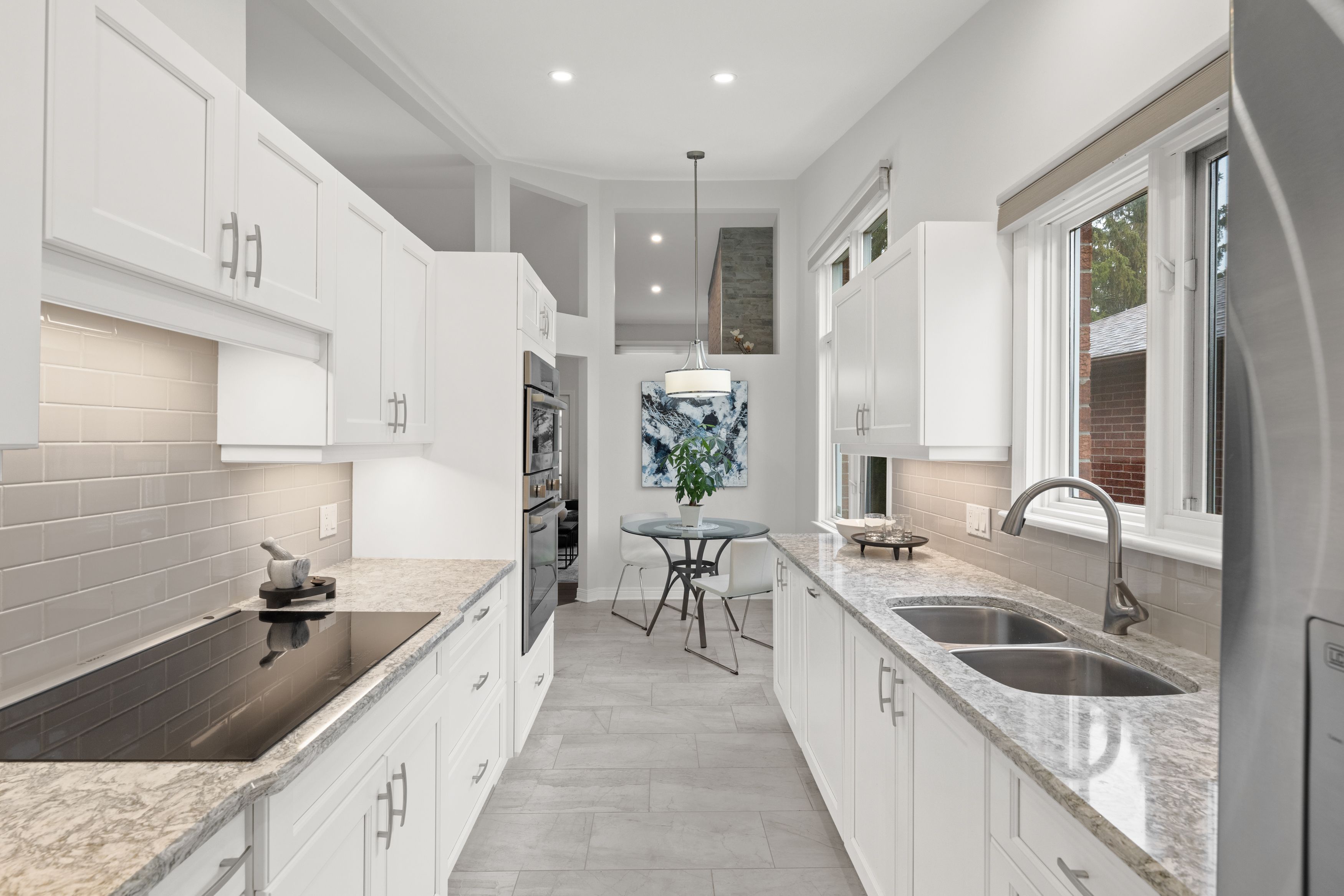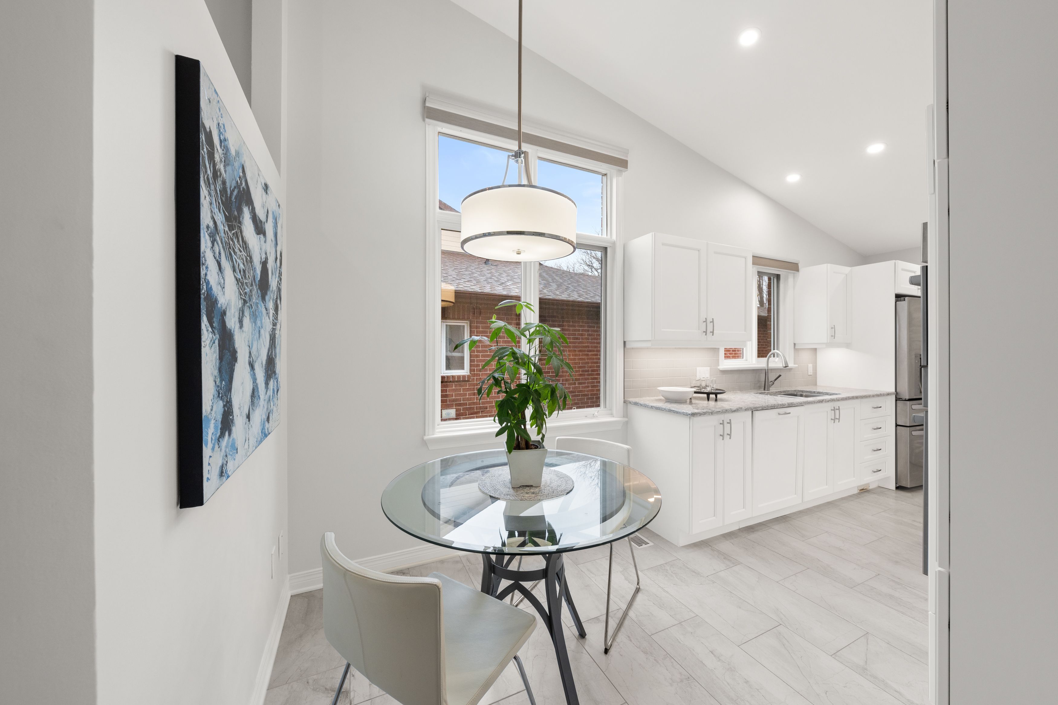 • Bright sunroom and renovated kitchen with modern features and natural light.