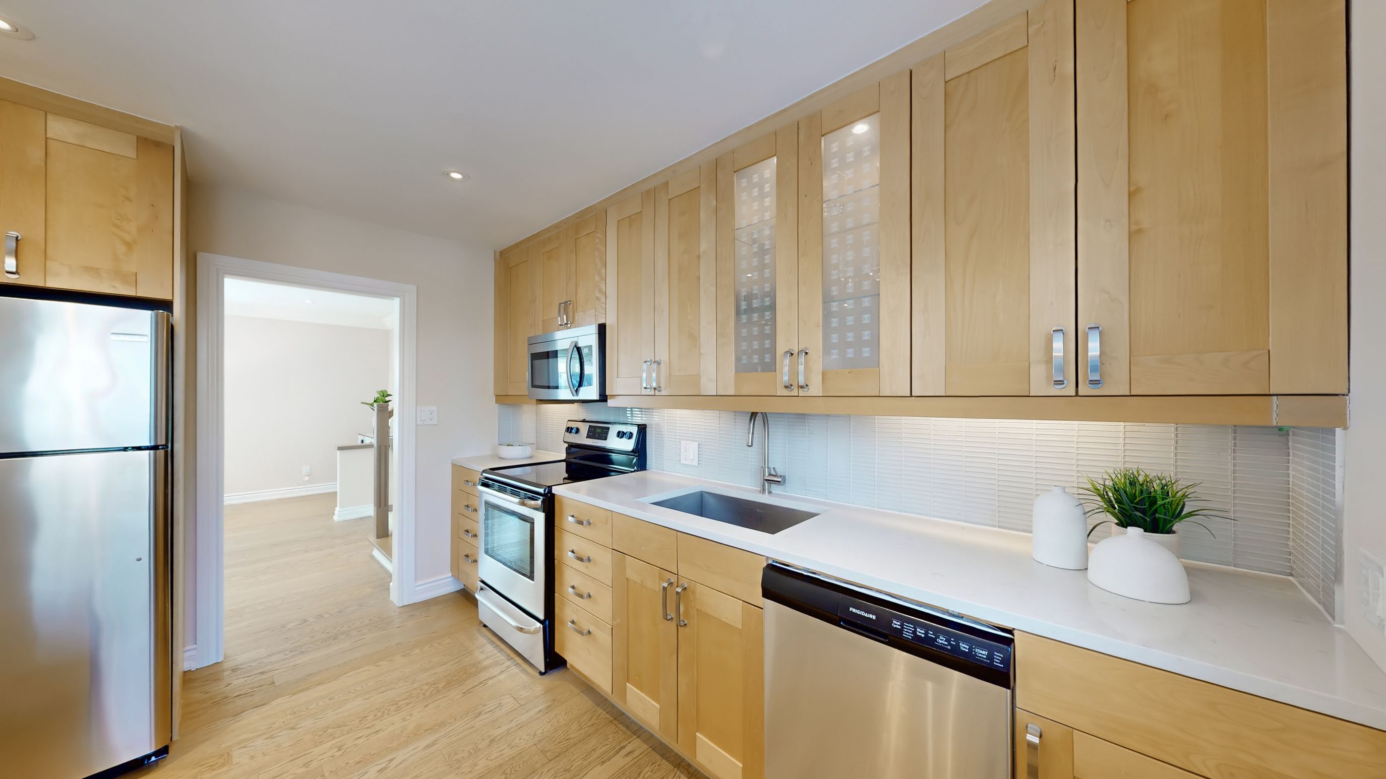This exquisitely renovated 4-bedroom side-split residence showcases premium engineered hardwood floors throughout the main and second levels and a large gourmet kitchen featuring a sleek modern design, stainless steel appliances, and a spacious centre island. A striking bay window floods the space with an abundance of natural light. The thoughtfully designed open-concept floor plan flows seamlessly into generously sized rooms, offering warmth, ambiance, and privacy on every level. The primary bedroom retreat features a large window and a private 4-piece ensuite, offering a bright and comfortable space to unwind. Expanded windows throughout the home fill every level with natural daylight, enhancing the home's spacious and inviting atmosphere. The lower level features new vinyl flooring and includes a large recreational space, fireplace, and a versatile office that can be used as a 5th bedroom, providing additional flexible living space. Every detail has been meticulously crafted to blend unique elegance with timeless charm, highlighting exceptional quality and superior workmanship throughout. Situated on a premium lot in the highly sought-after grandview family community, the professionally landscaped backyard is an entertainer's dream, featuring a large deck, bbq island, and elegant interlock paving; ideal for outdoor gatherings and relaxation. The property also offers a large private driveway with space for 4 cars plus a detached garage. Ample storage is available throughout the home, including a generous crawl space. Close to henderson public school and woodland french immersion school, as well as public transit, this turn-key family home offers effortless, connected living in a prime location. A must-see residence ready to impress!