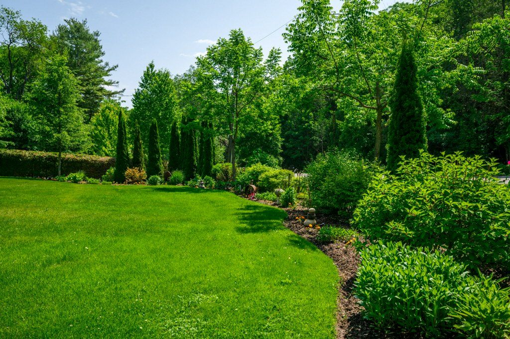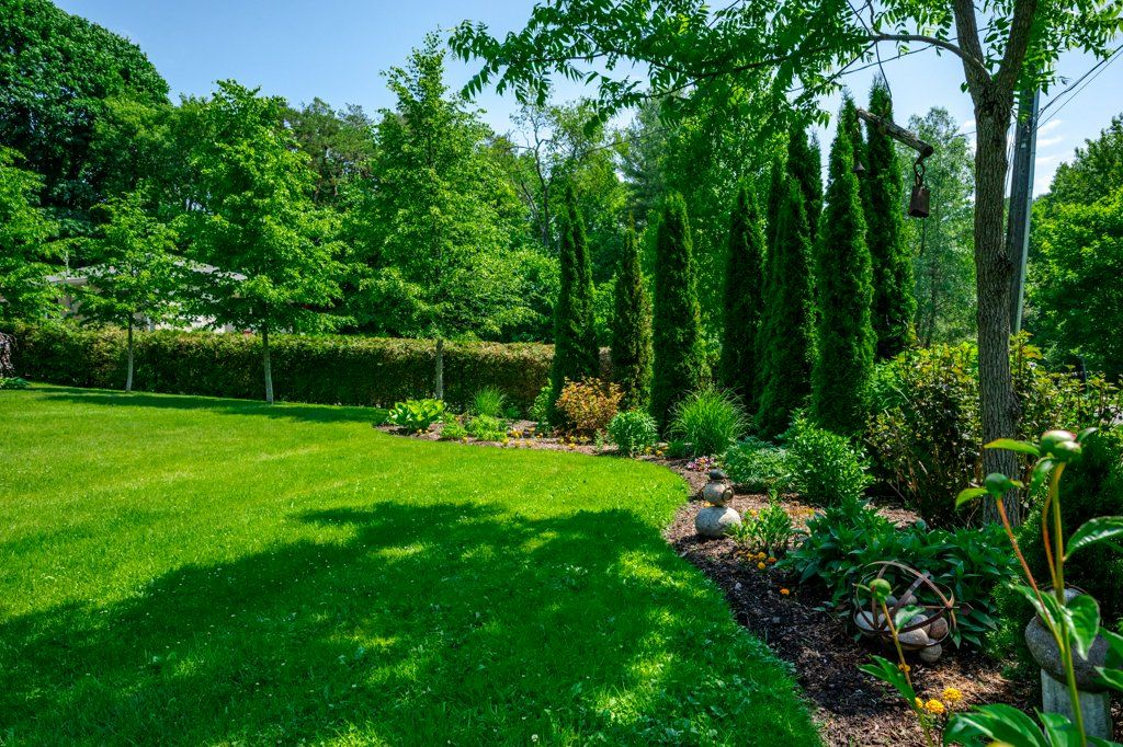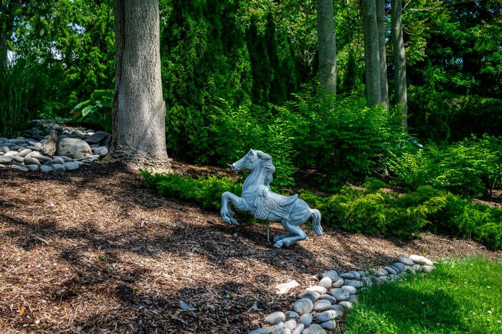 • Half-acre lot with mature trees and lush landscaping for privacy.