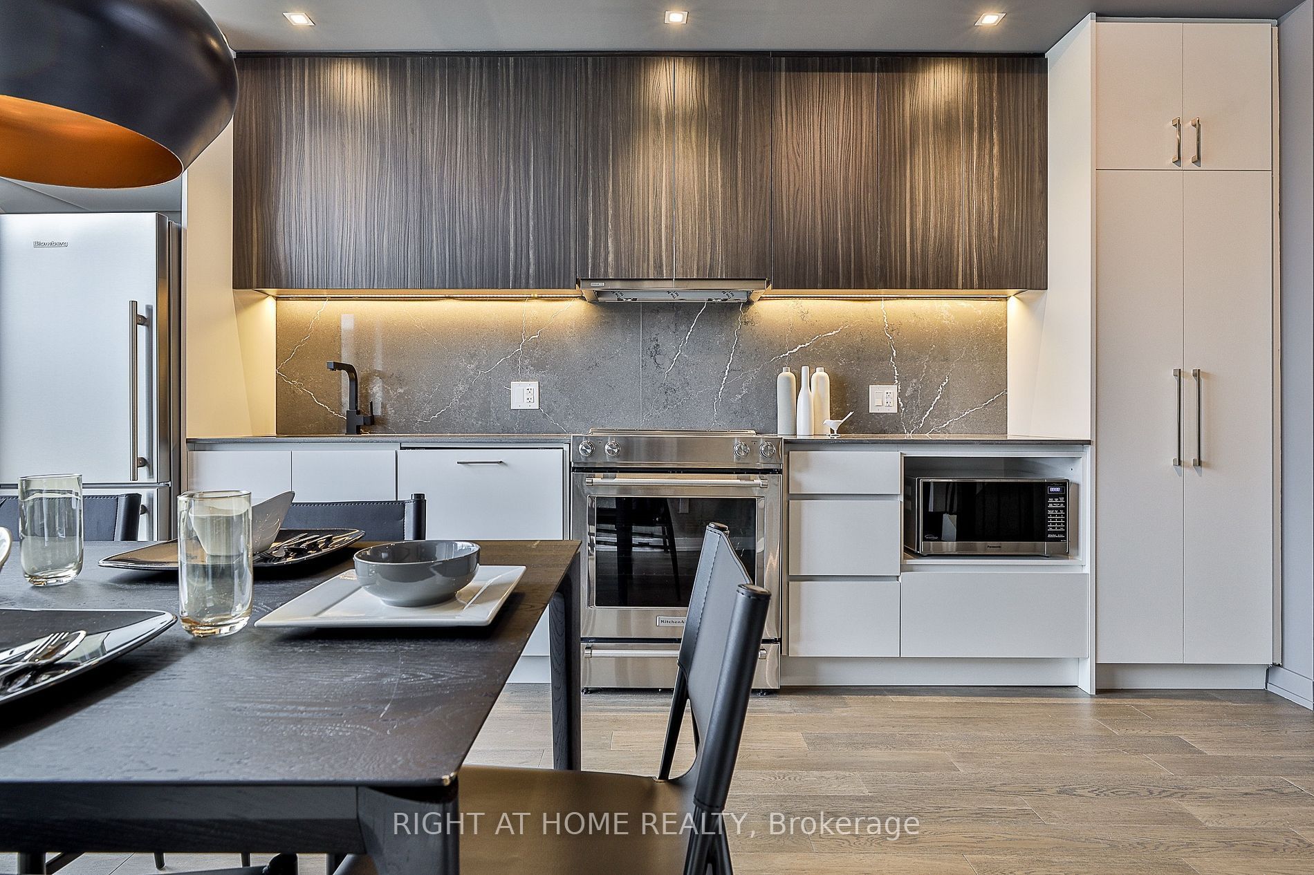 A bright and modern upper townhome with parking, located at bt towns! Townhome 17 is a stylish two-bedroom, two-bathroom townhouse with rooftop terrace featuring airy 9-foot ceilings, floor-to-ceiling windows, and a designer kitchen with integrated appliances and caesarstone countertops. Concrete construction ensures privacy and a quiet interior, while an open-concept layout offers flexible living and entertaining space. Your very own private rooftop terrace with bbq hookup invites outdoor dining, and secure underground parking adds convenience. Just steps from bayview village mall and bayview subway, this home delivers modern design with exceptional walkability. Quick access to highway 401, lush parks, and boutique amenities makes it ideal for professionals or small families seeking design, comfort, and connectivity. Available immediately.
