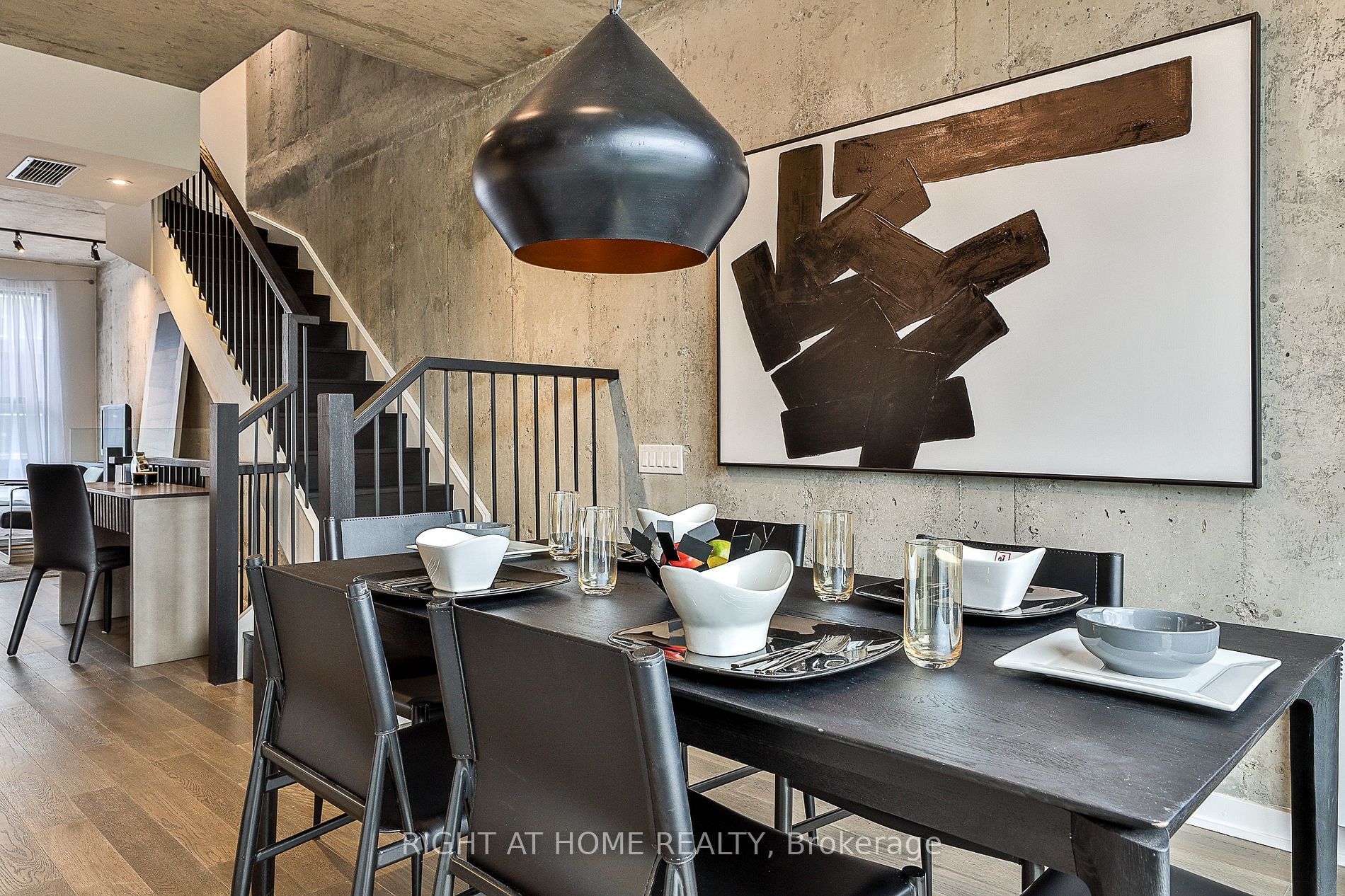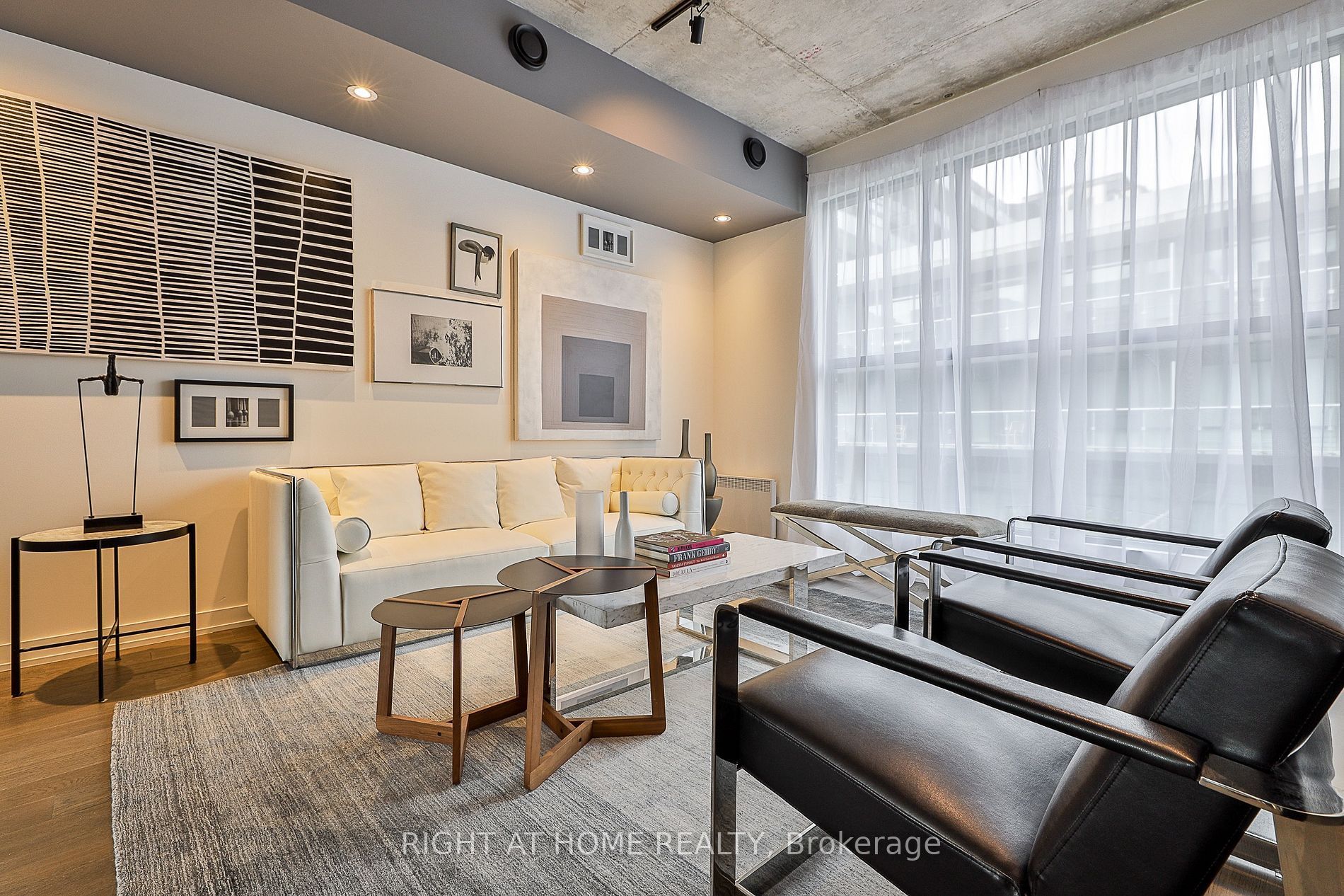 • Open-concept layout with 9-foot ceilings and floor-to-ceiling windows.