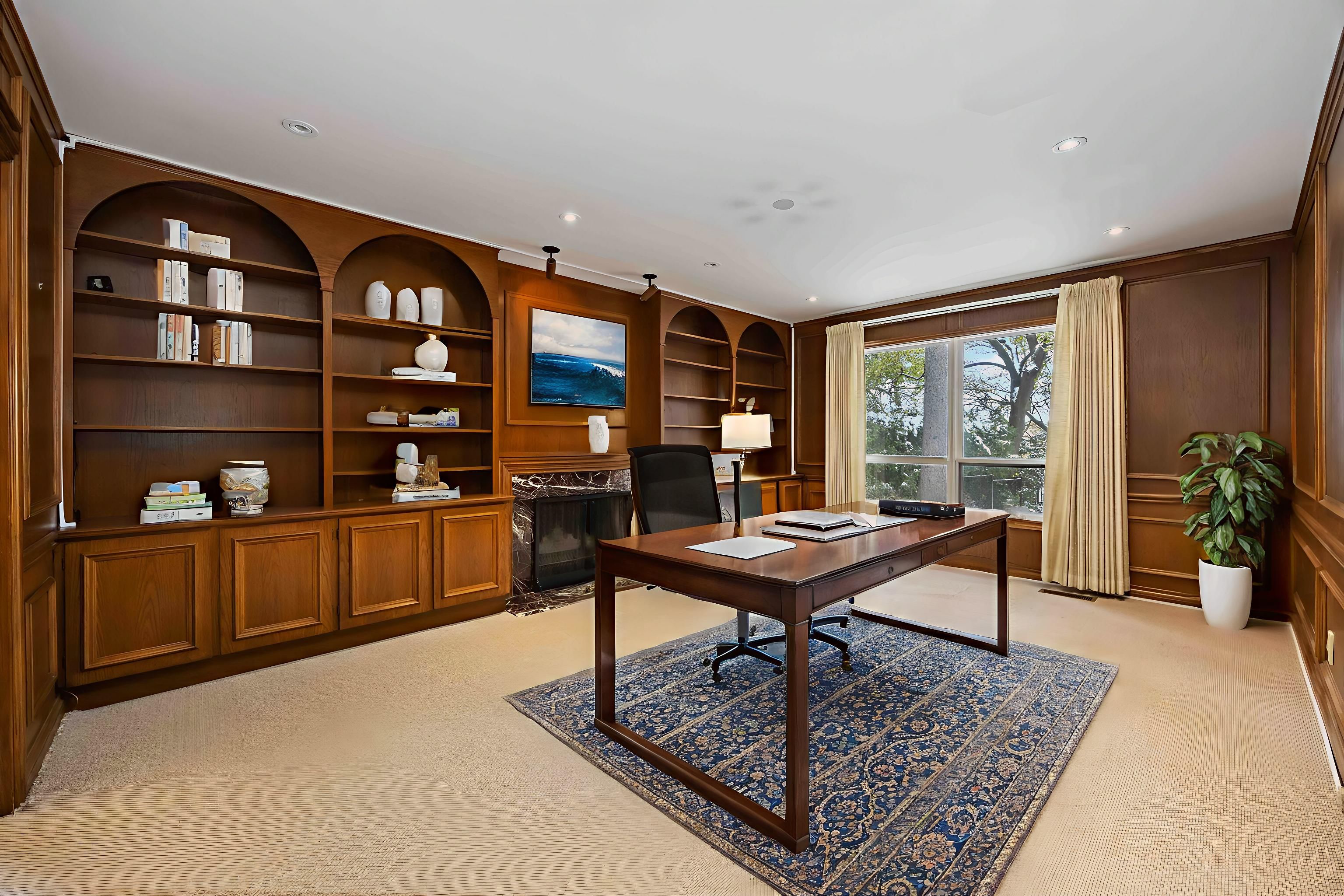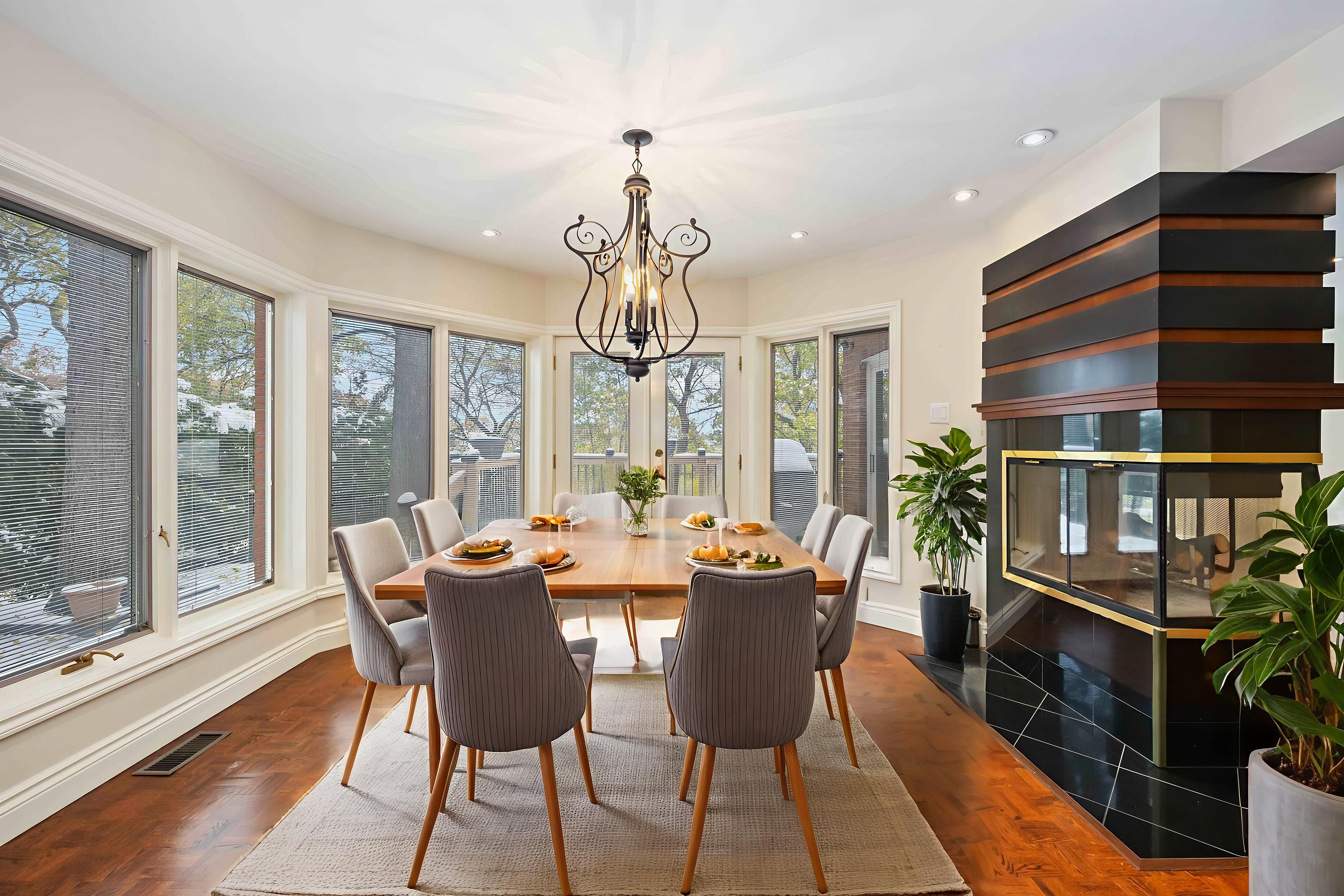 Welcome to 12 donwoods drive. Live in elegance in toronto's coveted hogg's hollow community with this classic georgian-style brick home, tucked away on a private laneway above donwoods drive. Offering over 5,000 sq. Ft. Of living space, this residence combines timeless architecture with thoughtful modern upgrades. Step into the bright, grand foyer that sets the tone for this sophisticated home. The spacious family room leads to a renovated gourmet eat-in kitchen with a large island and granite countertops-perfect for family gatherings. Relax by one of the four cozy fireplaces or host summer dinners on the interlocked backyard patio, surrounded by lush greenery. The large primary suite features a walk-in closet and serene views. Perfect for a family needing generous space, this well-maintained home is clean, bright, and move-in ready, with the opportunity to refresh interiors over time to suit your style. The wood-paneled office provides a quiet retreat, while the kitchen is a dream culinary space. A versatile fifth bedroom on the lower level can serve as a guest suite, gym, or nanny/granny suite. Enjoy stunning treetop vistas from the custom rooftop deck above the stone garage, complete with a modern garage door and a private, tranquil setting. The finished lower level includes a recreation room and in-law suite, ideal for extended family or guests. Location is unmatched-just a 12-minute walk to york mills subway, 15 minutes to downtown, and steps from yonge street, top-rated armour heights ps, york mills ci, and elite private schools. Close to golf courses and hwy 401, this home blends elegance and serenity with everyday convenience. Experience luxury living surrounded by nature, where urban convenience meets timeless sophistication. Privately situated, this home offers exceptional charm and potential-whether you fully renovate, update, or simply move in. A rare location in one of toronto's most coveted neighborhoods makes it highly desirable. *virtually staged*