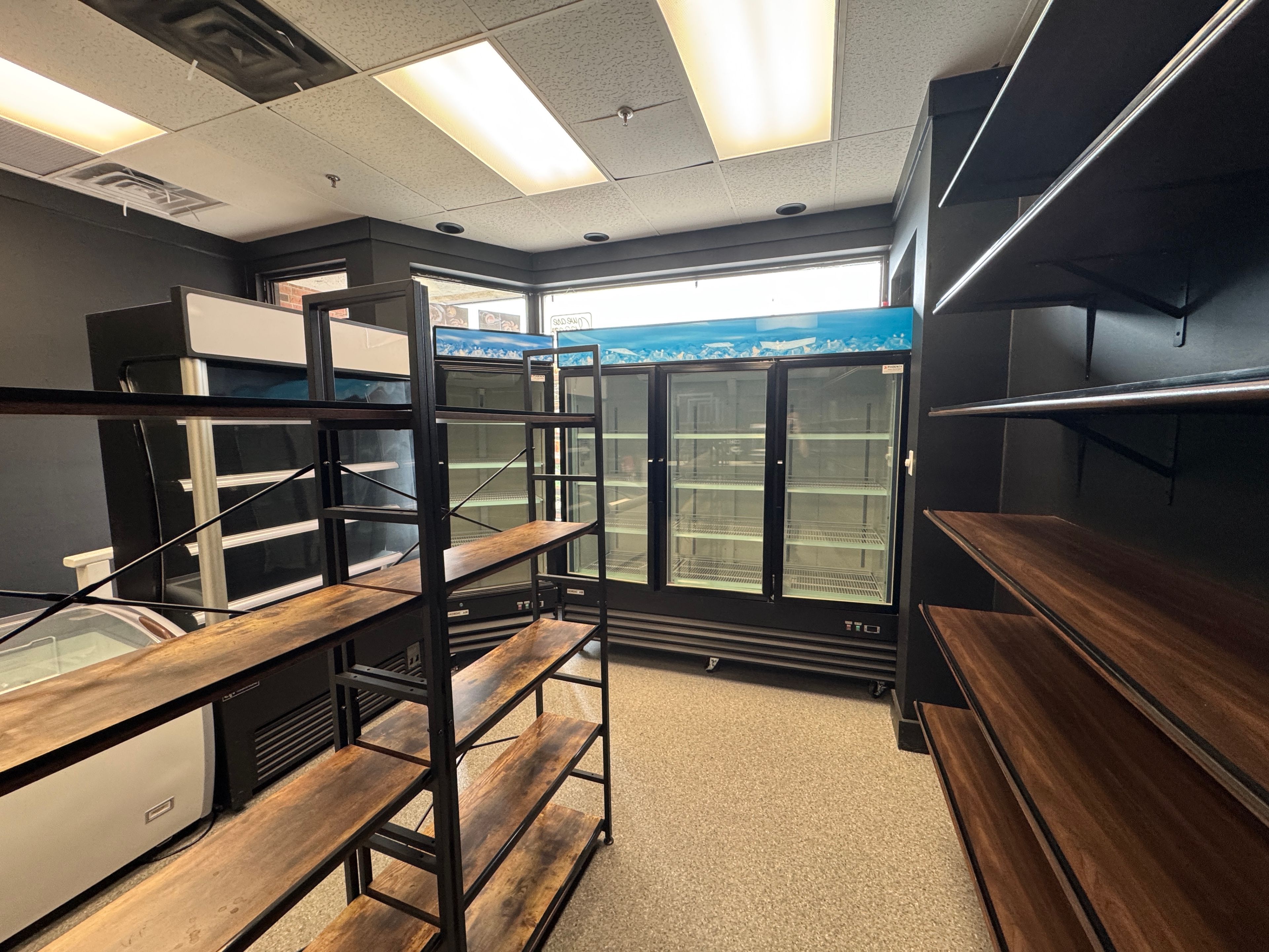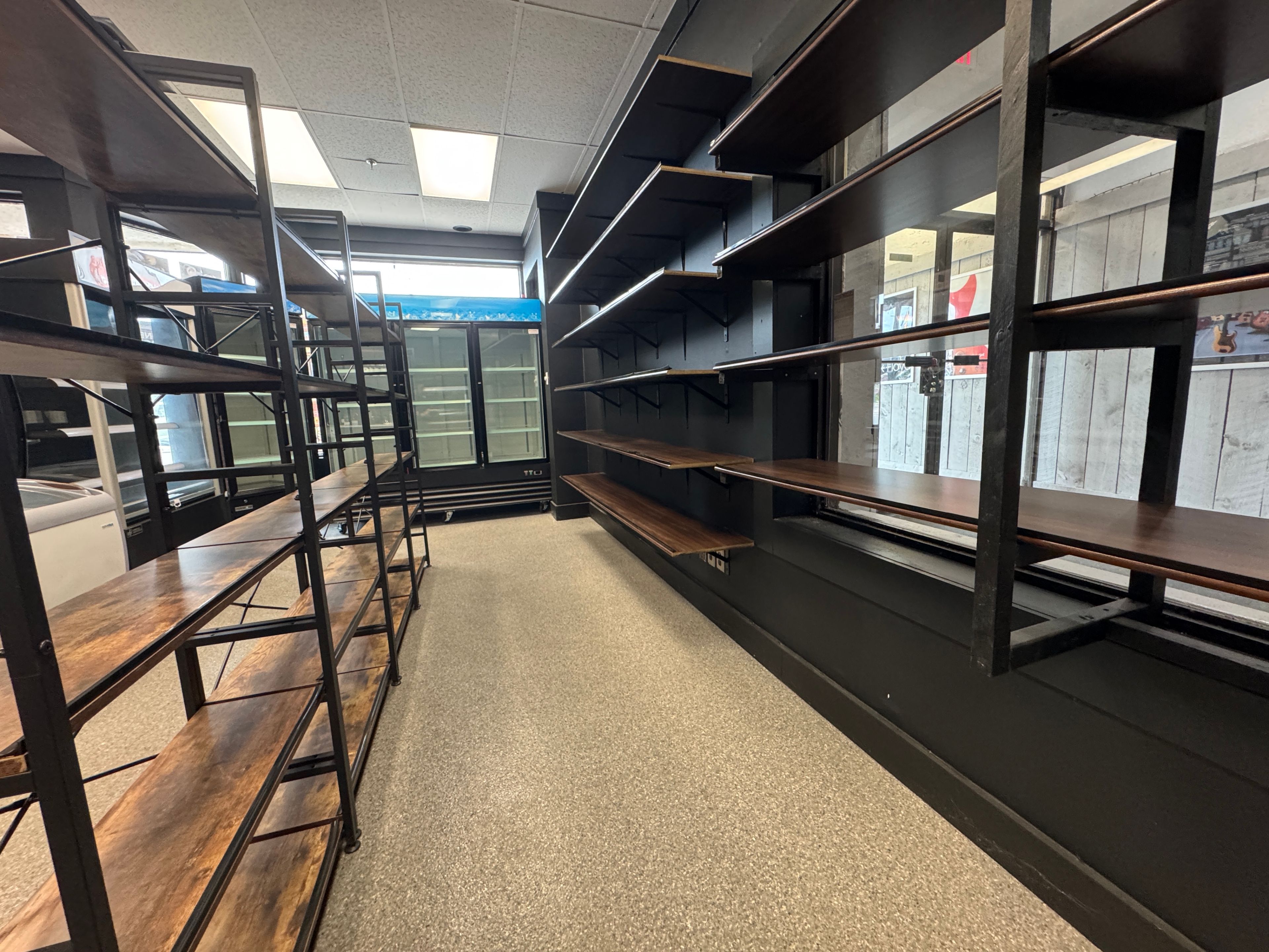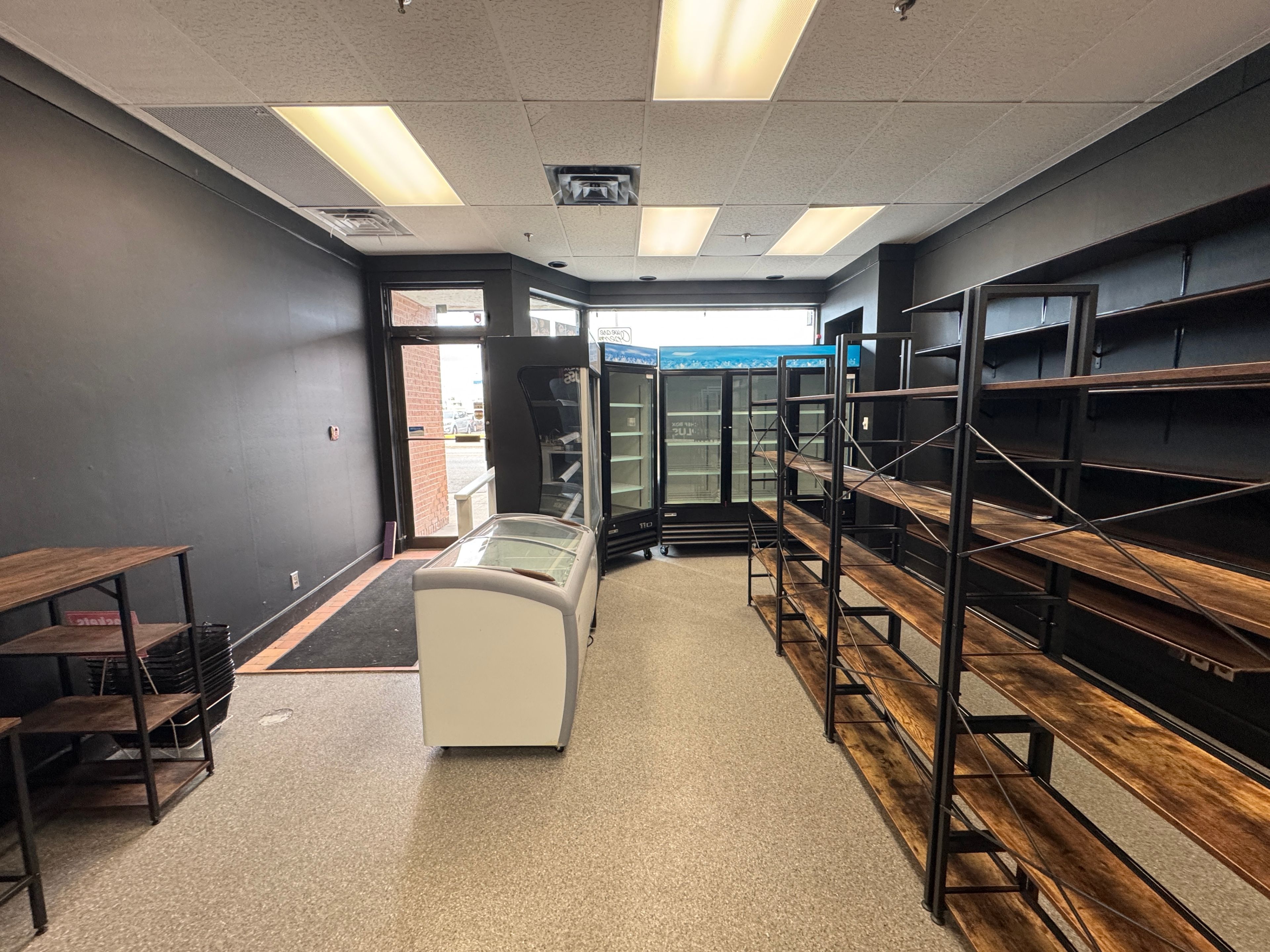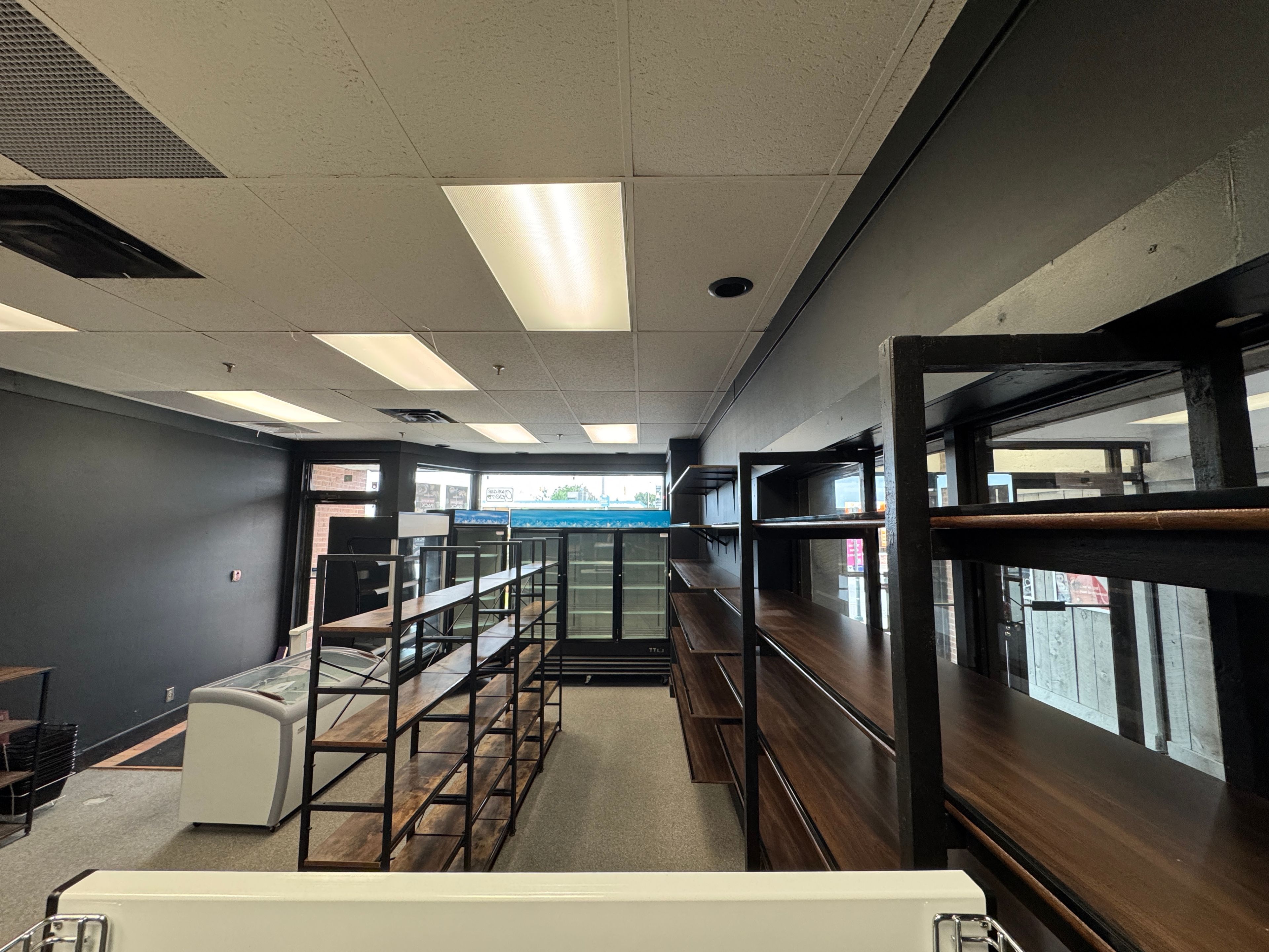 • Large front windows provide natural light and showcase the business.