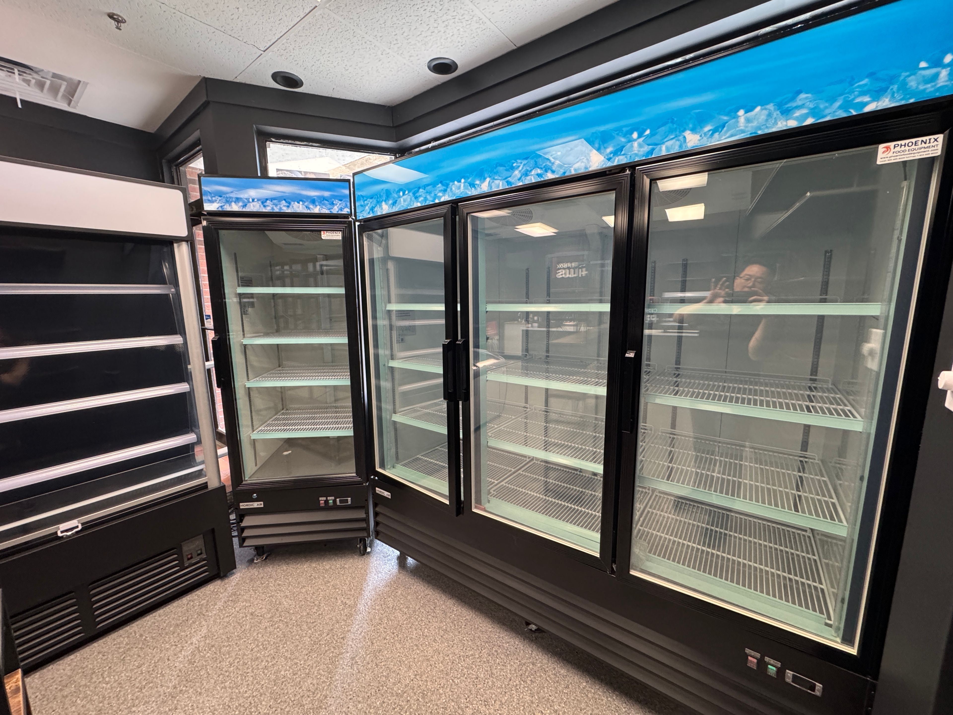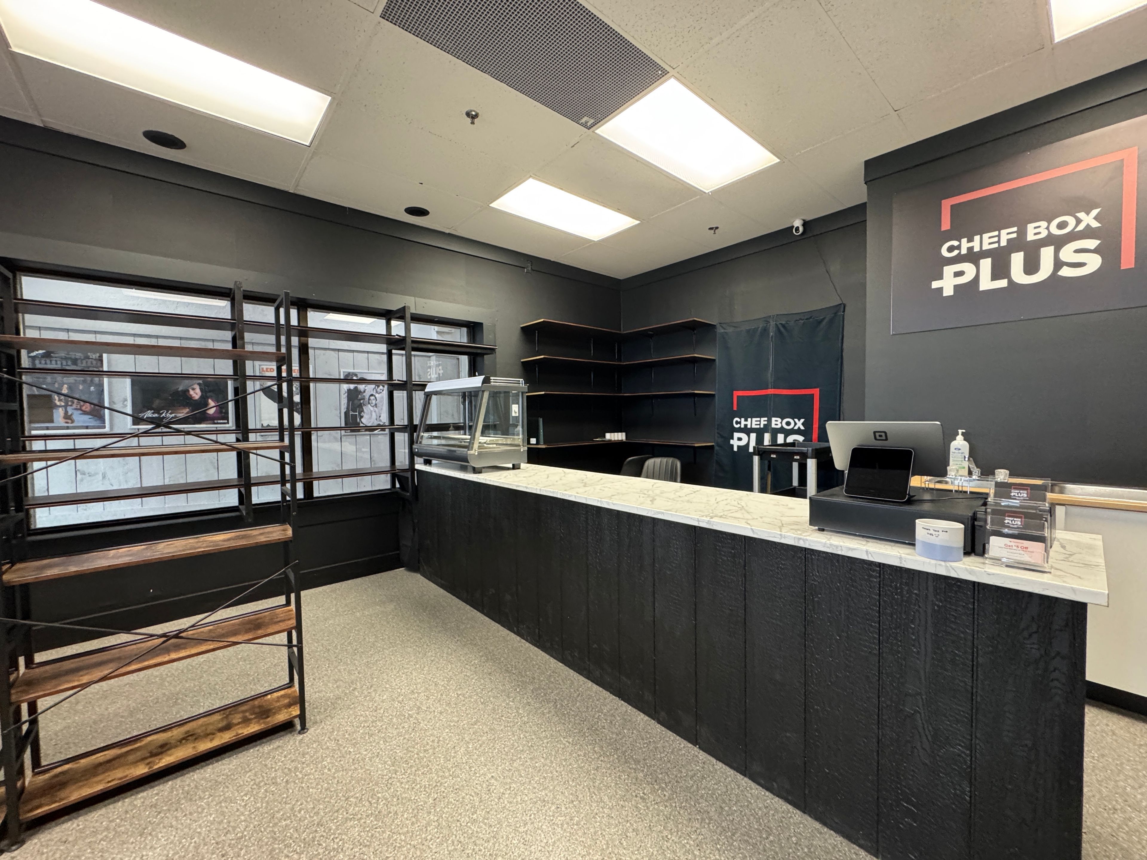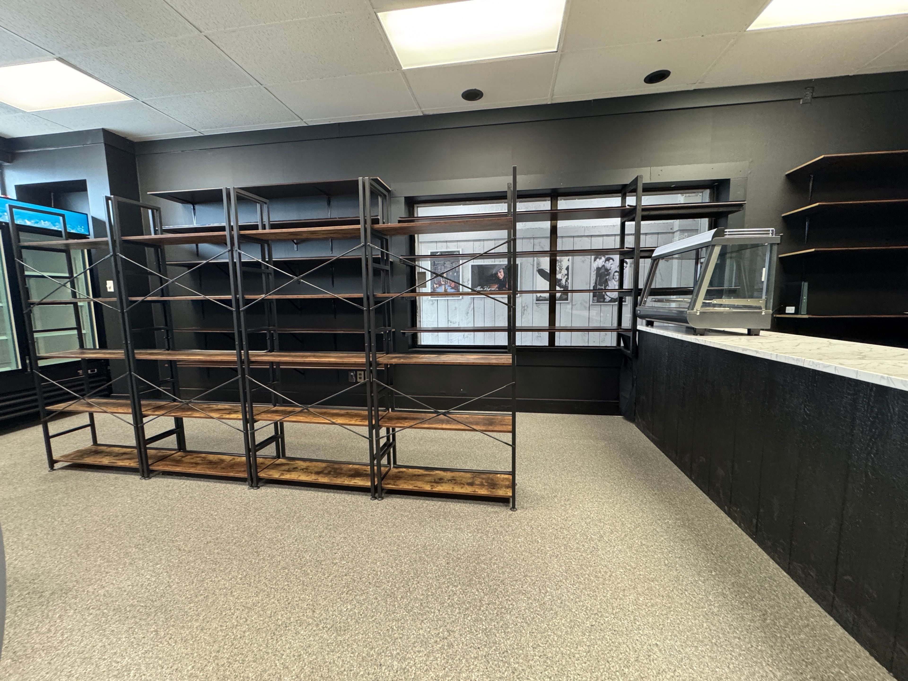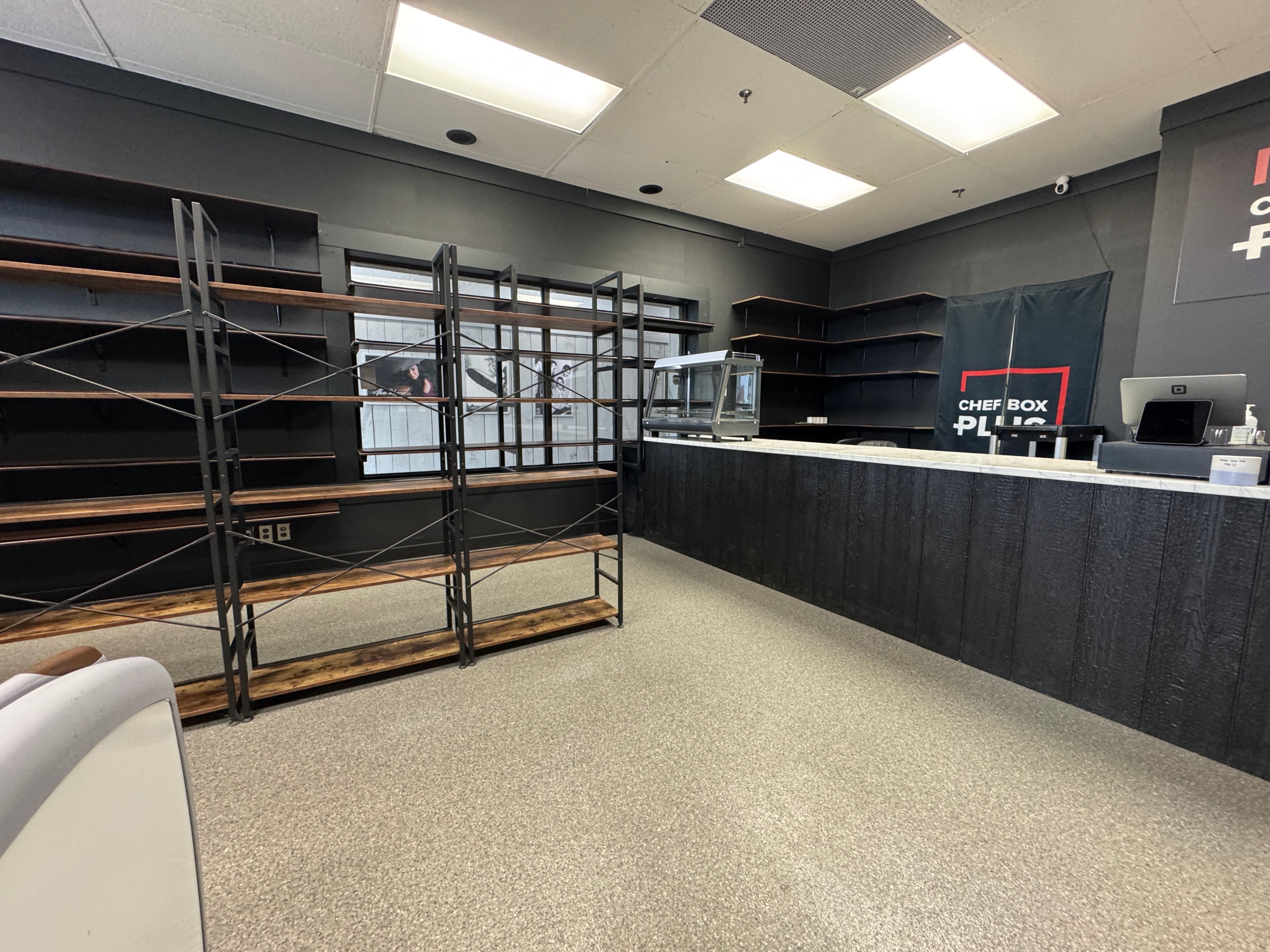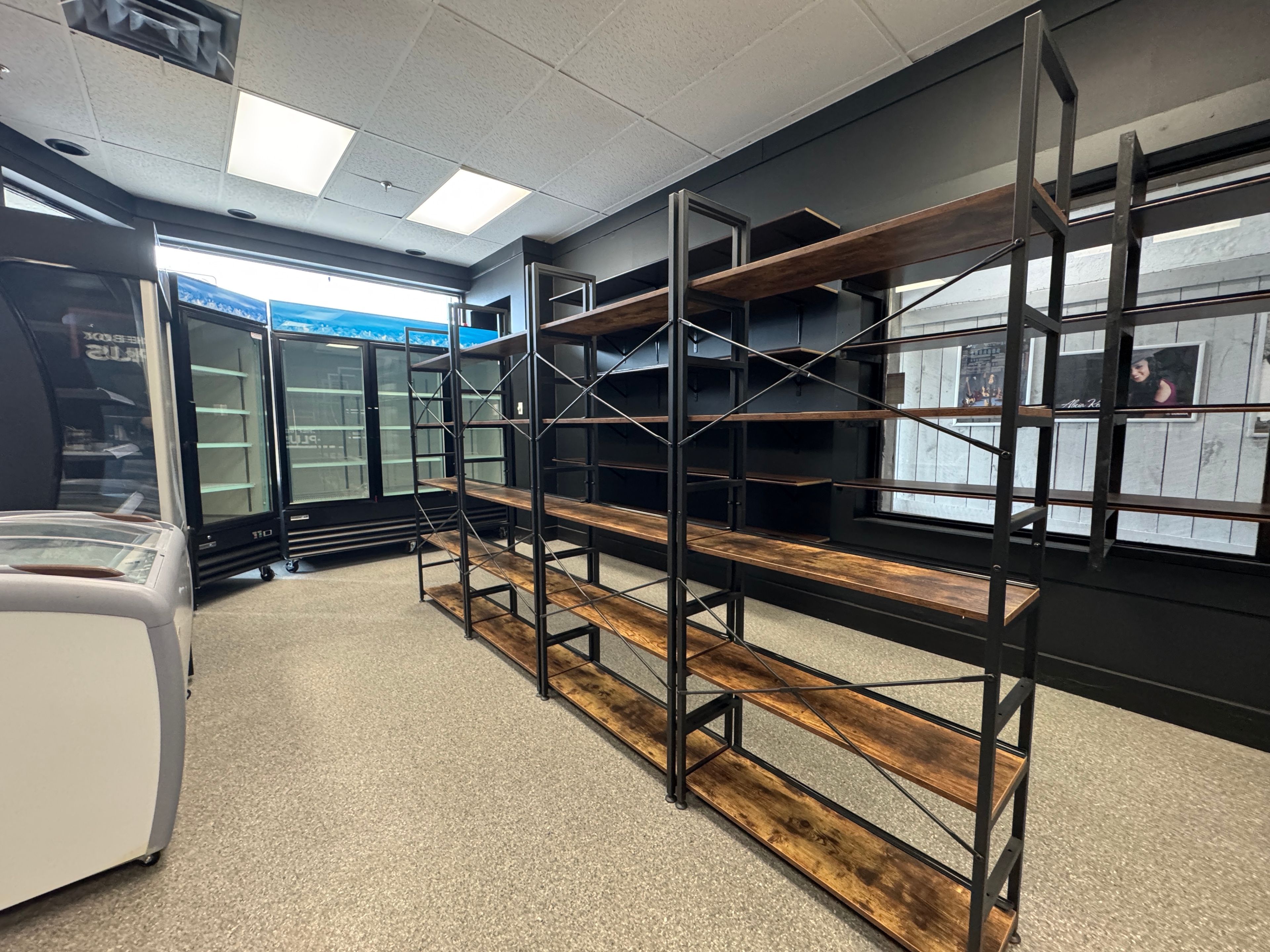 • Large front windows provide natural light and showcase the business.