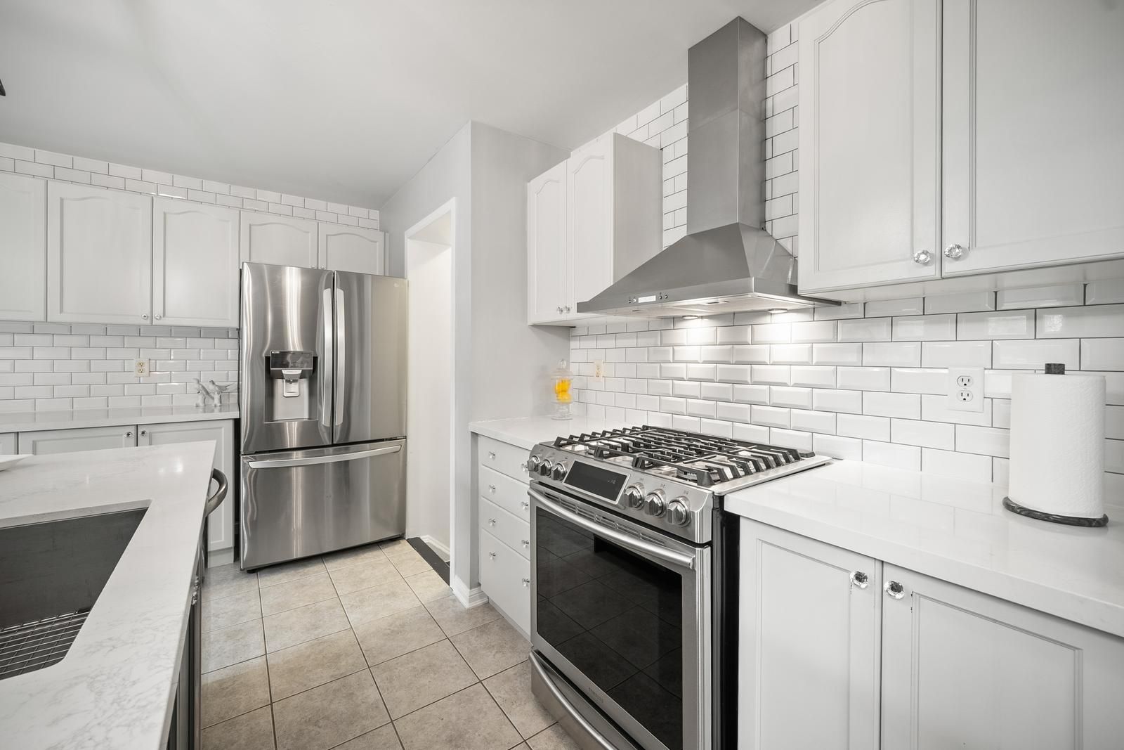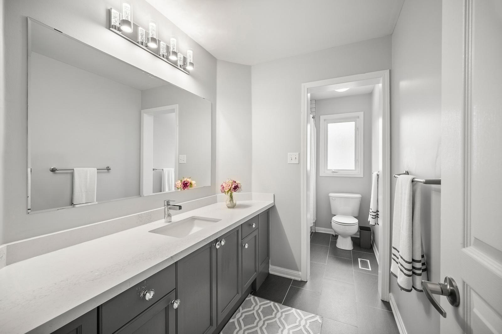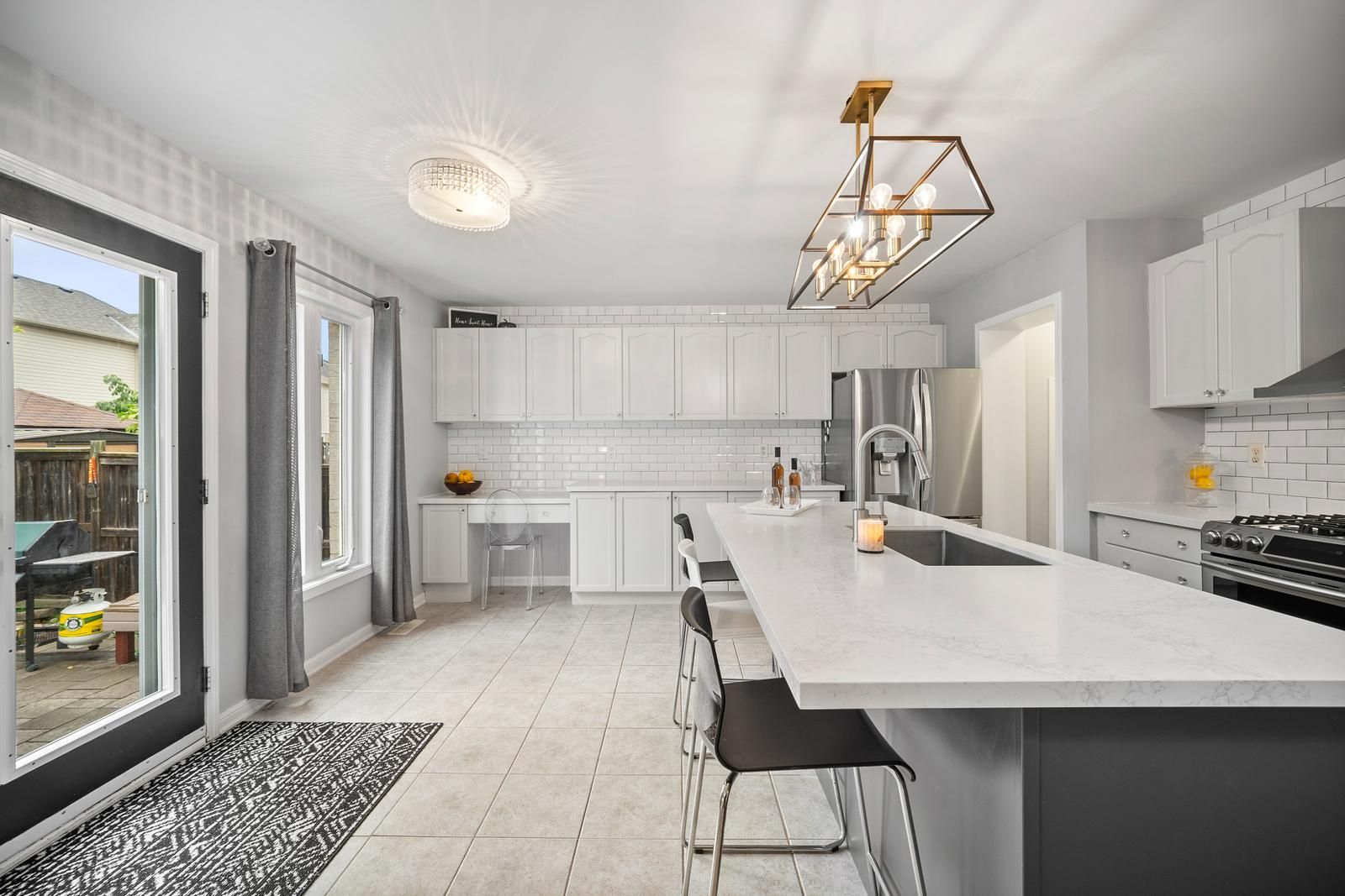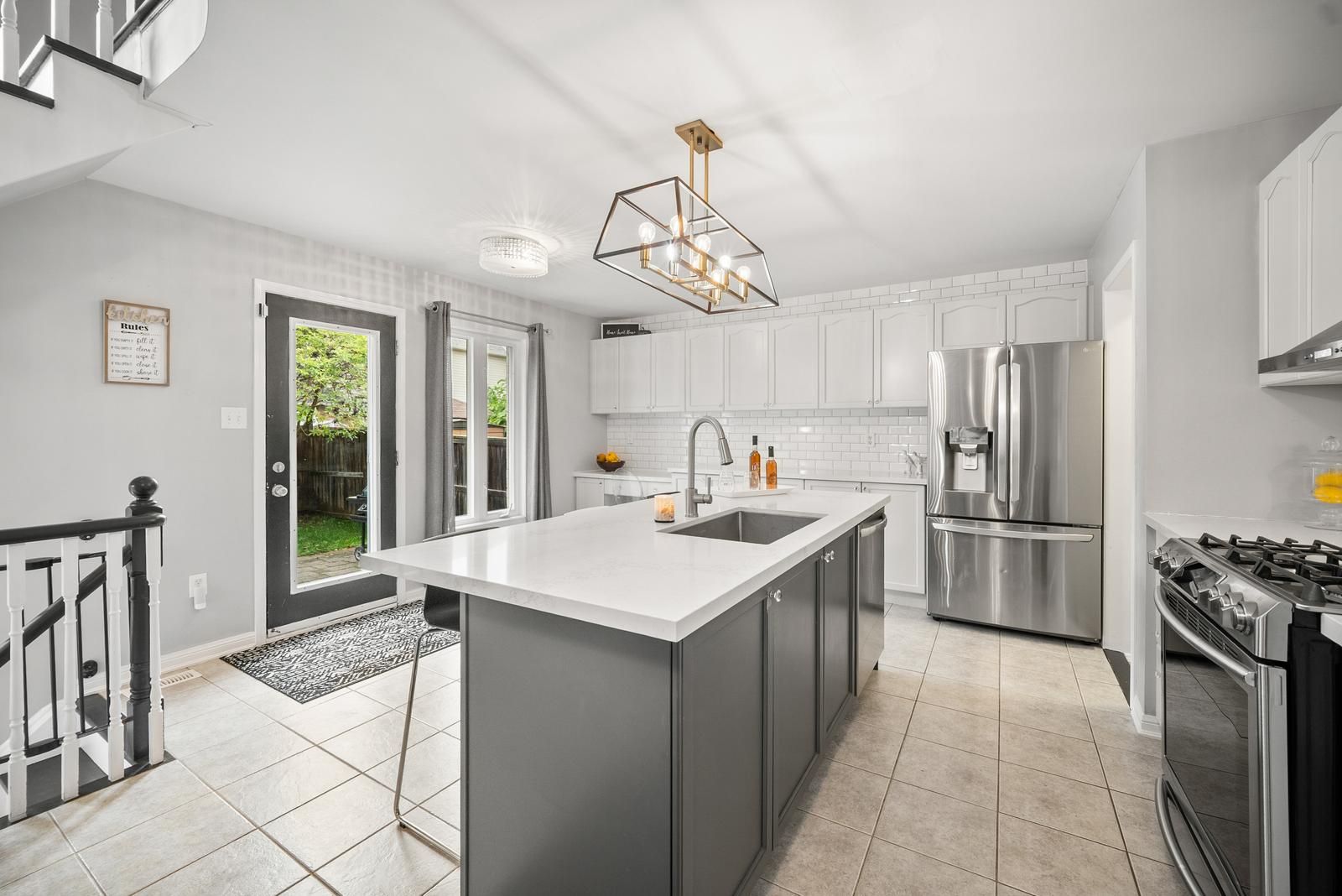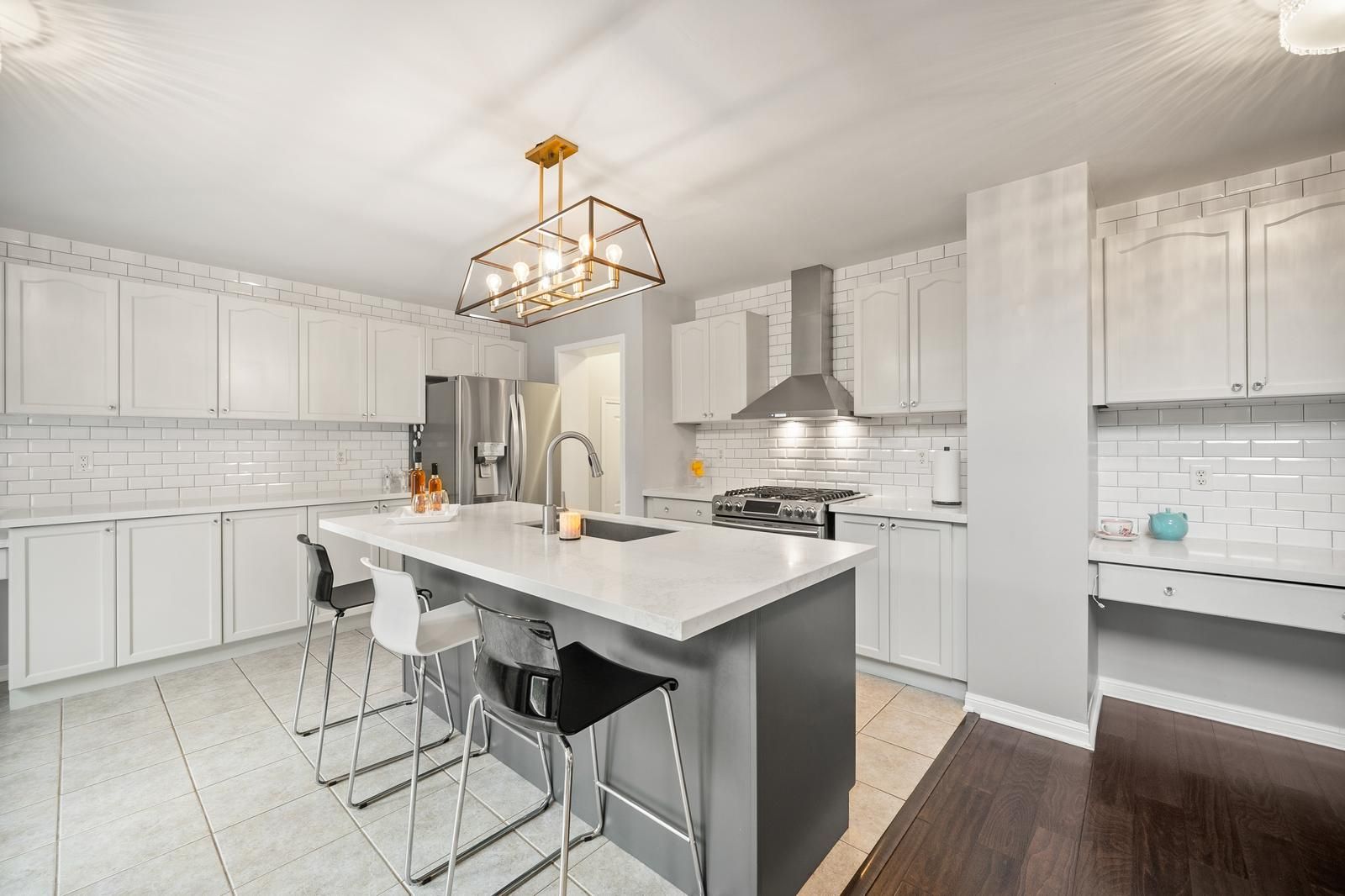 • Stylish kitchen features quartz countertops and an oversized island for entertaining.