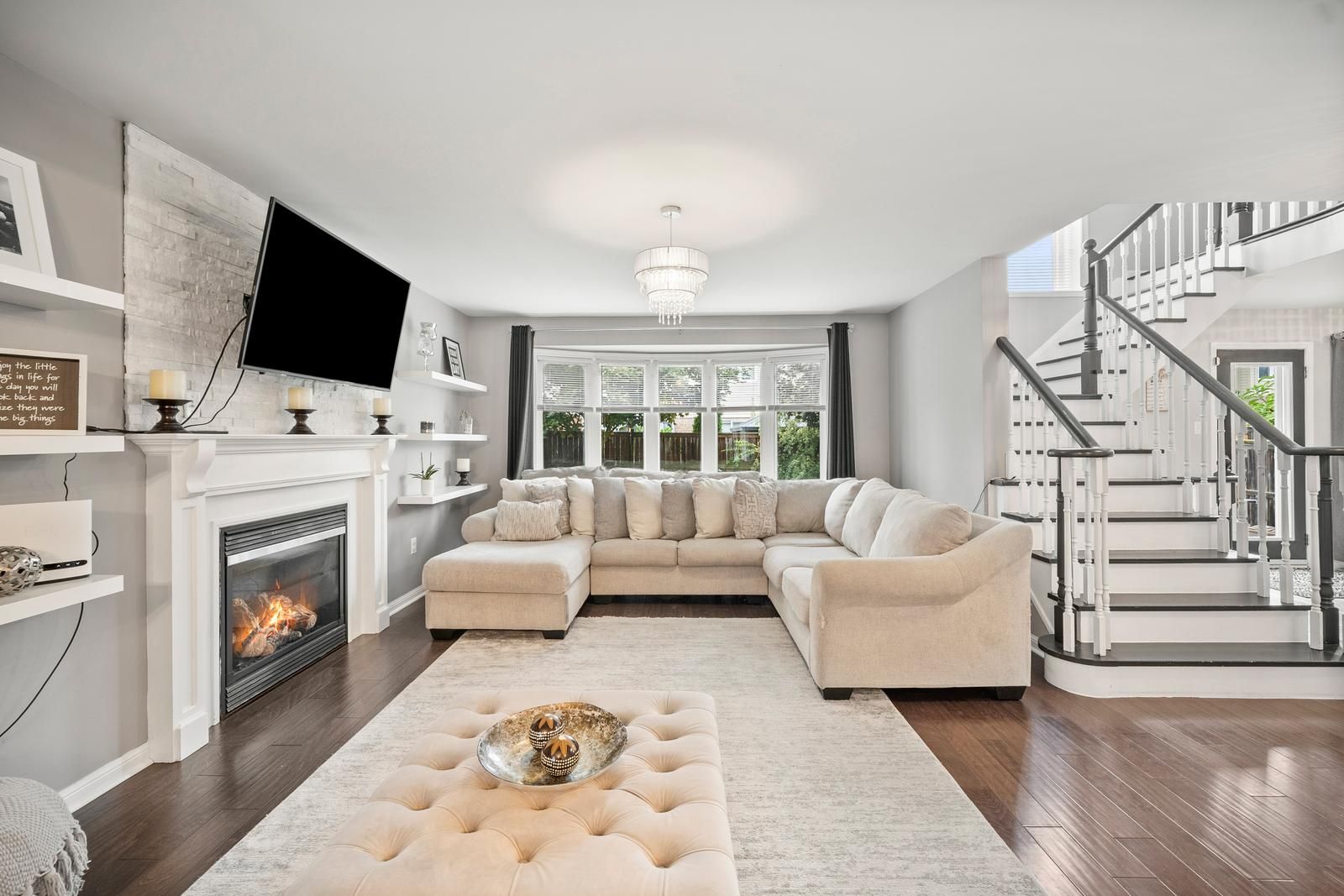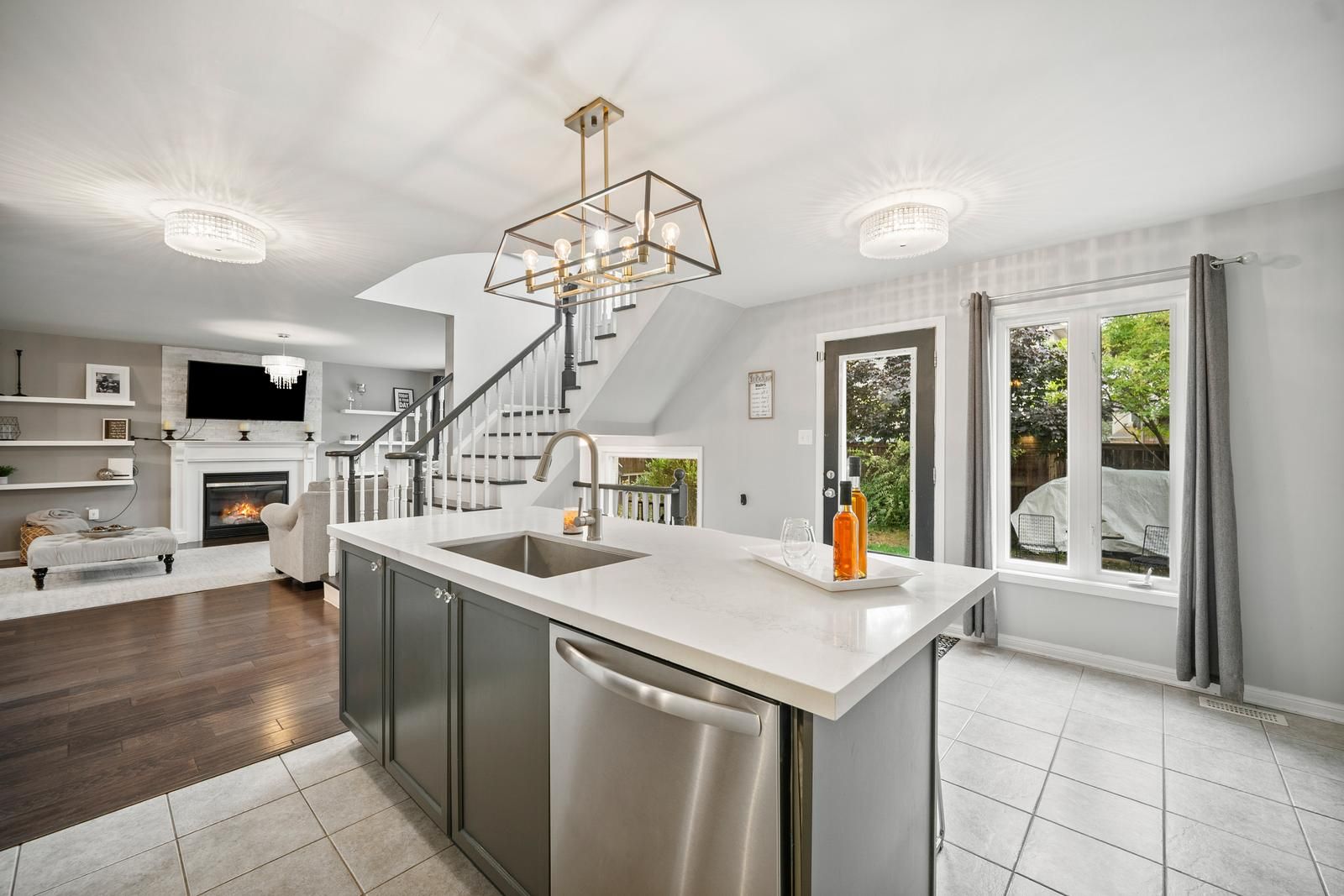 Welcome to this beautifully designed home offering approximately 2,600 sq. Ft. Above grade. Step inside to a bright open-concept layout filledwith natural light, featuring hardwood floors and a cozy family room with a built-in fireplace. The stylish two-tone kitchen is the heart of thehome, showcasing quartz countertops, an oversized island, and stainless steel appliances perfect for everyday living and entertaining. Upstairs,you'll find four spacious bedrooms, beautifully updated bathrooms, and the convenience of second-floor laundry. The versatile loft offers endlesspossibilities ideal as a home office, playroom, or cozy den. With no detail spared, this carpet-free home is move-in ready and thoughtfullydecorated throughout. The backyard is a true extension of the home, complete with interlock, plenty of space for summer gatherings, and roomto add a pool. Whether hosting family and friends or simply enjoying a quiet evening outdoors, this space has it all. Come see for yourself whythis home is the perfect blend of style, comfort, and function!