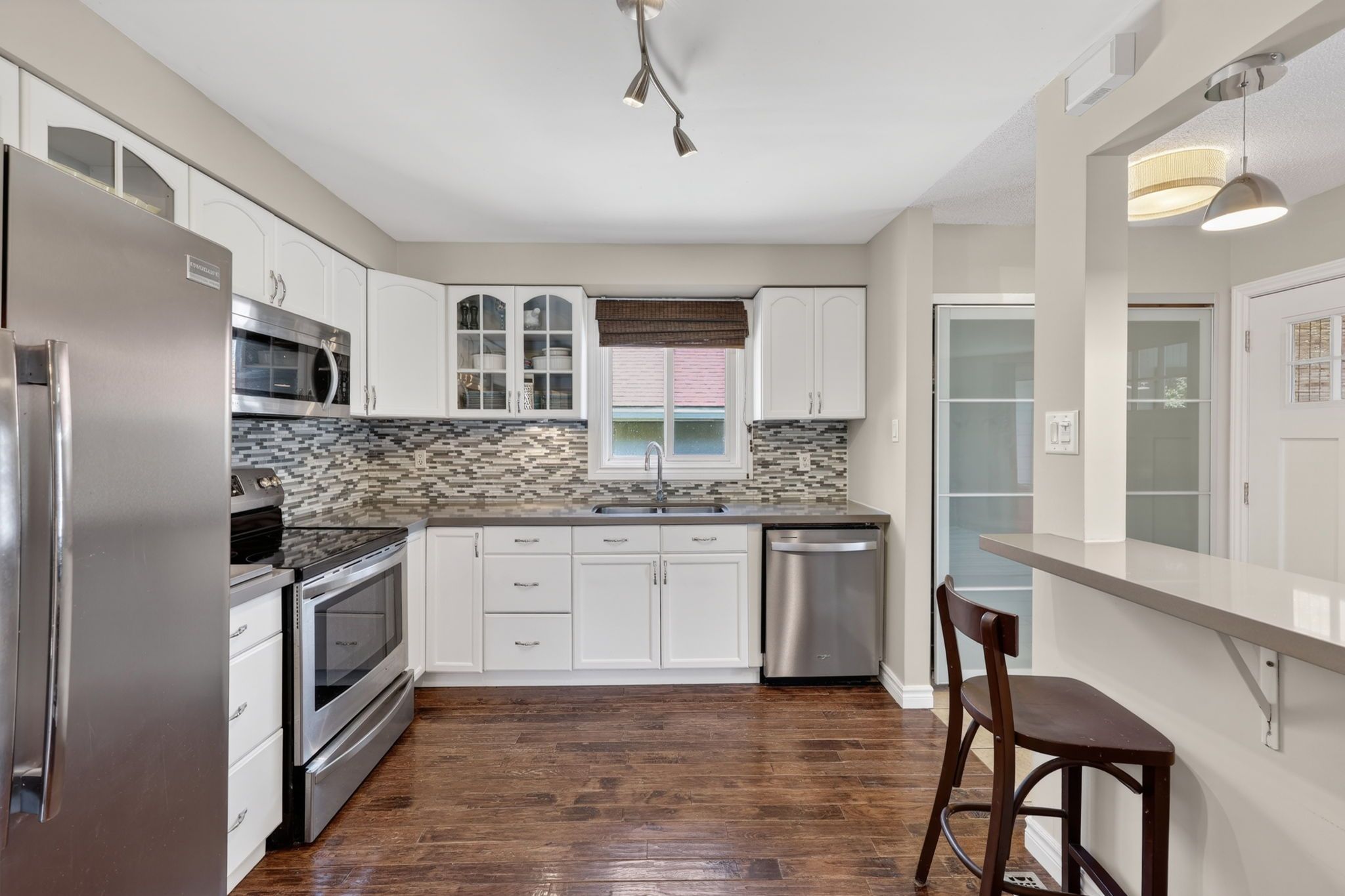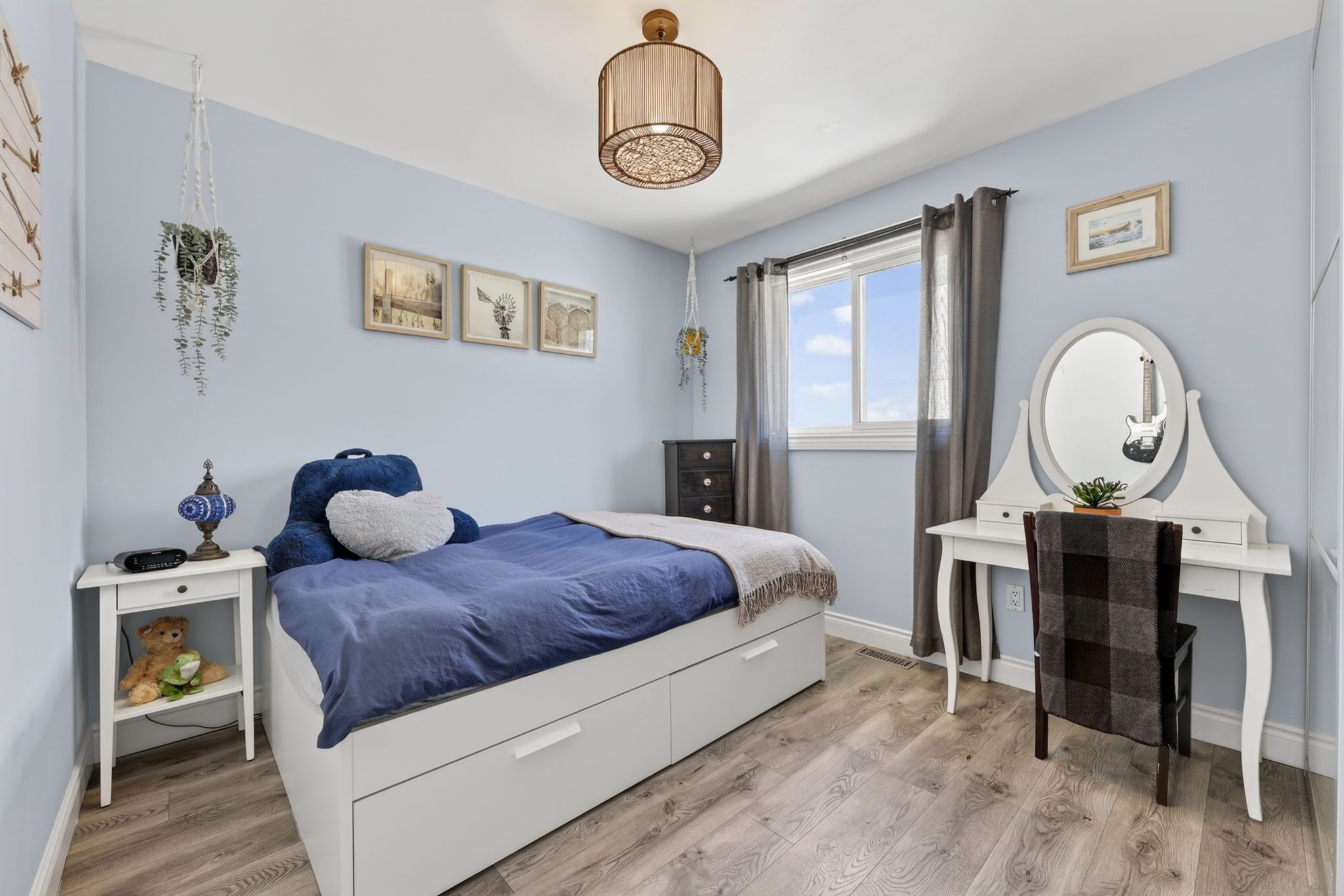 Welcome to this beautifully updated 4-bedroom ranch bungalow, ideally located in the heart of the community and offering exceptional in-law potential. Set on an impressive 197-foot deep lot, this property combines modern style, functional living, and outstanding outdoor space. The main level showcases a bright, open-concept design, perfect for both everyday living and entertaining. You'll find three spacious bedrooms and a beautifully renovated main bathroom featuring a luxurious soaker tub and separate walk-in shower-your own private retreat. The fully finished lower level expands your living space with a large rec room complete with a cozy gas fireplace, a fourth bedroom, and a stunning updated bathroom with a walk-in shower and heated floors-ideal for guests or extended family. Step outside and enjoy the expansive backyard oasis, featuring an oversized patio, charming garden shed, and lush gardens-perfect for relaxing or hosting. The home also boasts fantastic curb appeal with a welcoming covered front porch and front patio. Additional highlights include parking for four vehicles in the driveway plus a single-car garage, shingles replaced in 2026, a new furnace in 2018, and an upgraded electrical panel (2014). This move-in ready home offers the perfect blend of comfort, style, and versatility-an exceptional opportunity you won't want to miss.