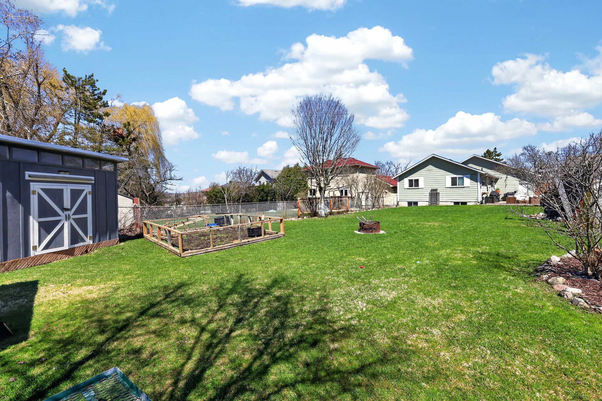 • Expansive backyard oasis with patio and charming garden shed for relaxation.