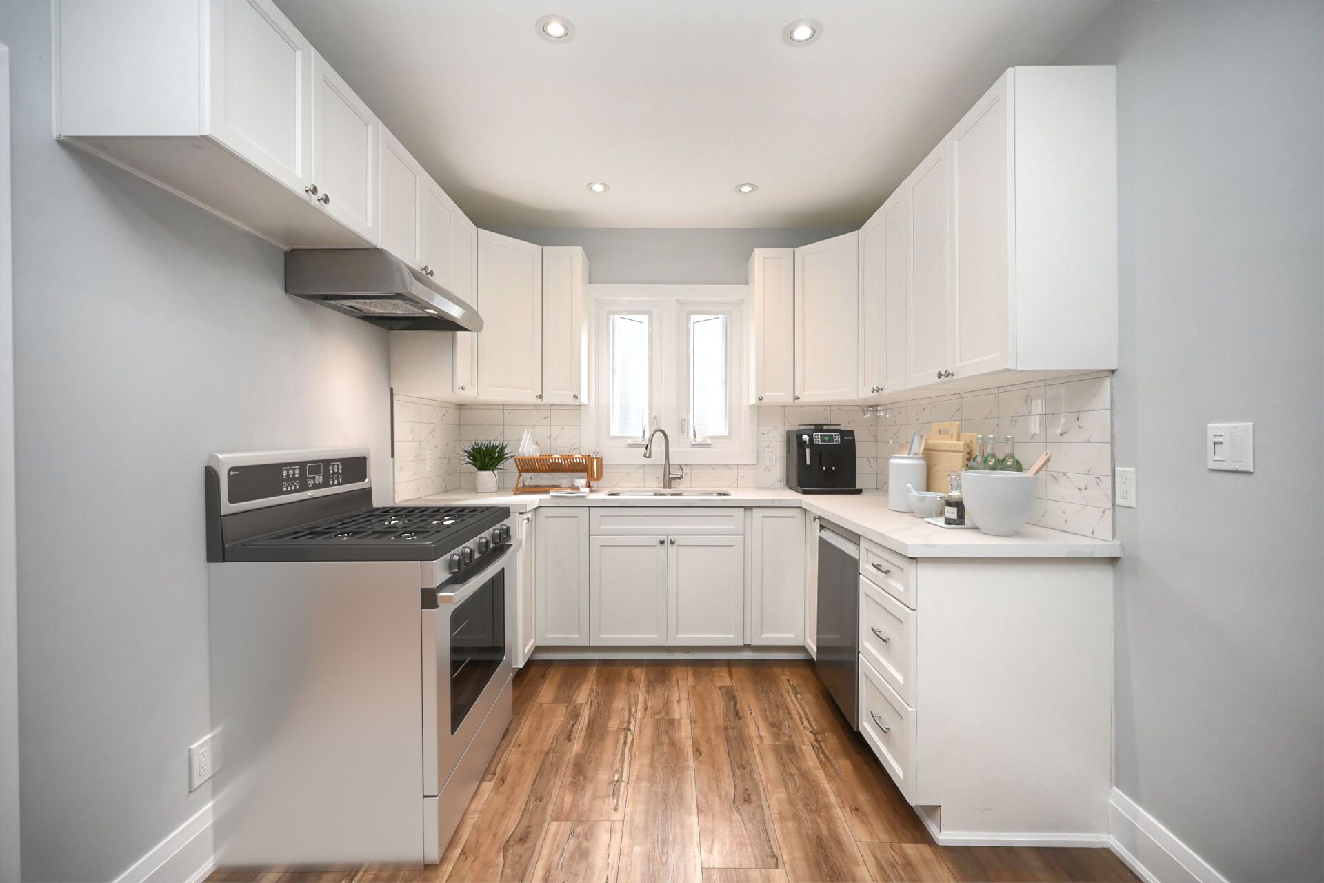 • New kitchen features quartz countertops and waterproof flooring throughout.