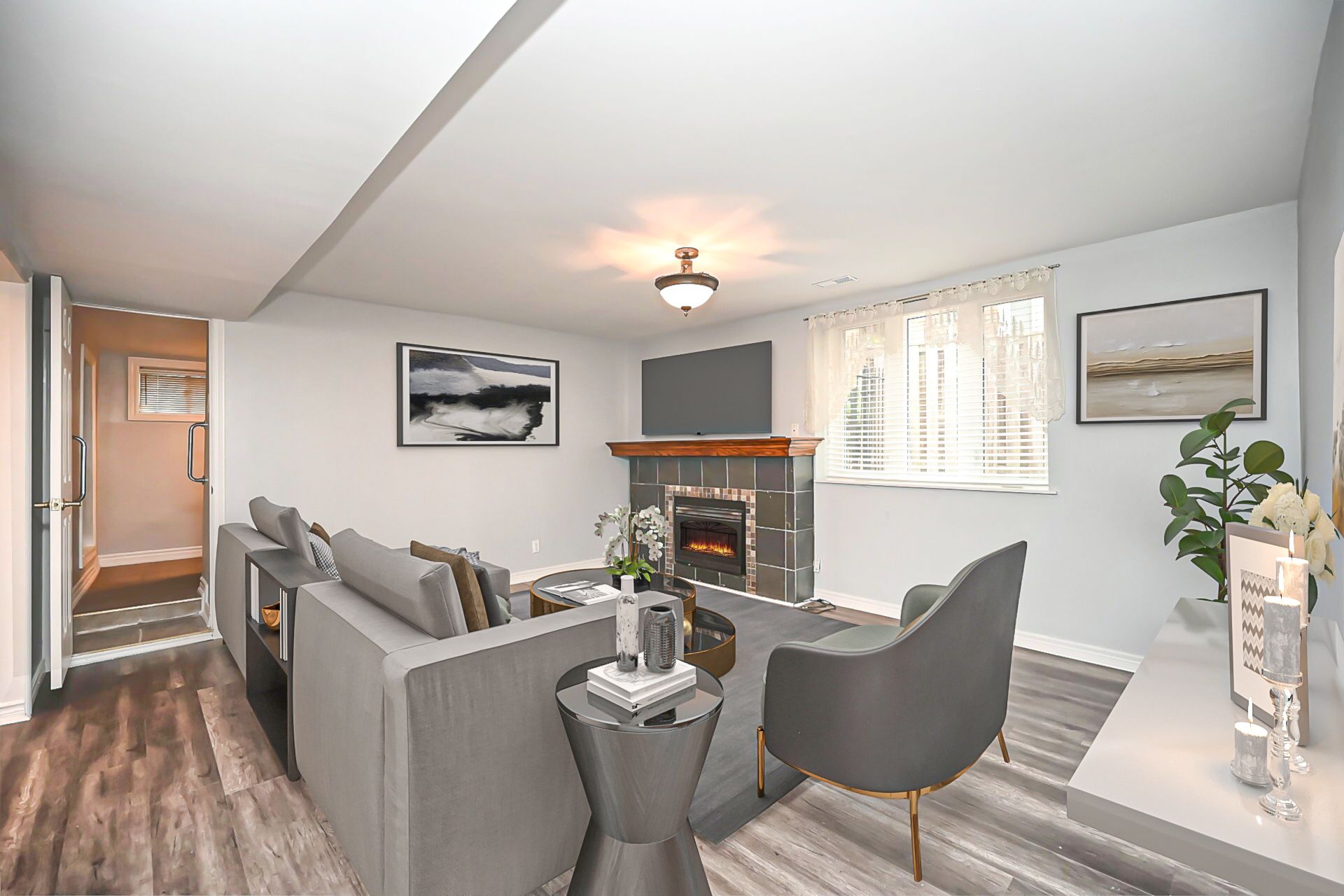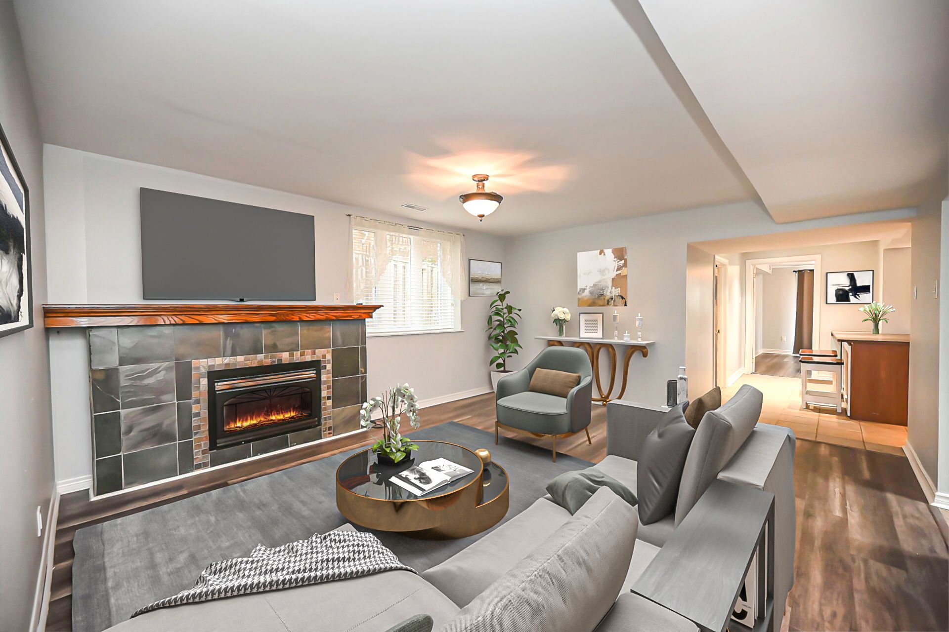 • Spacious lower level includes separate entrances and a gas fireplace in the living room.