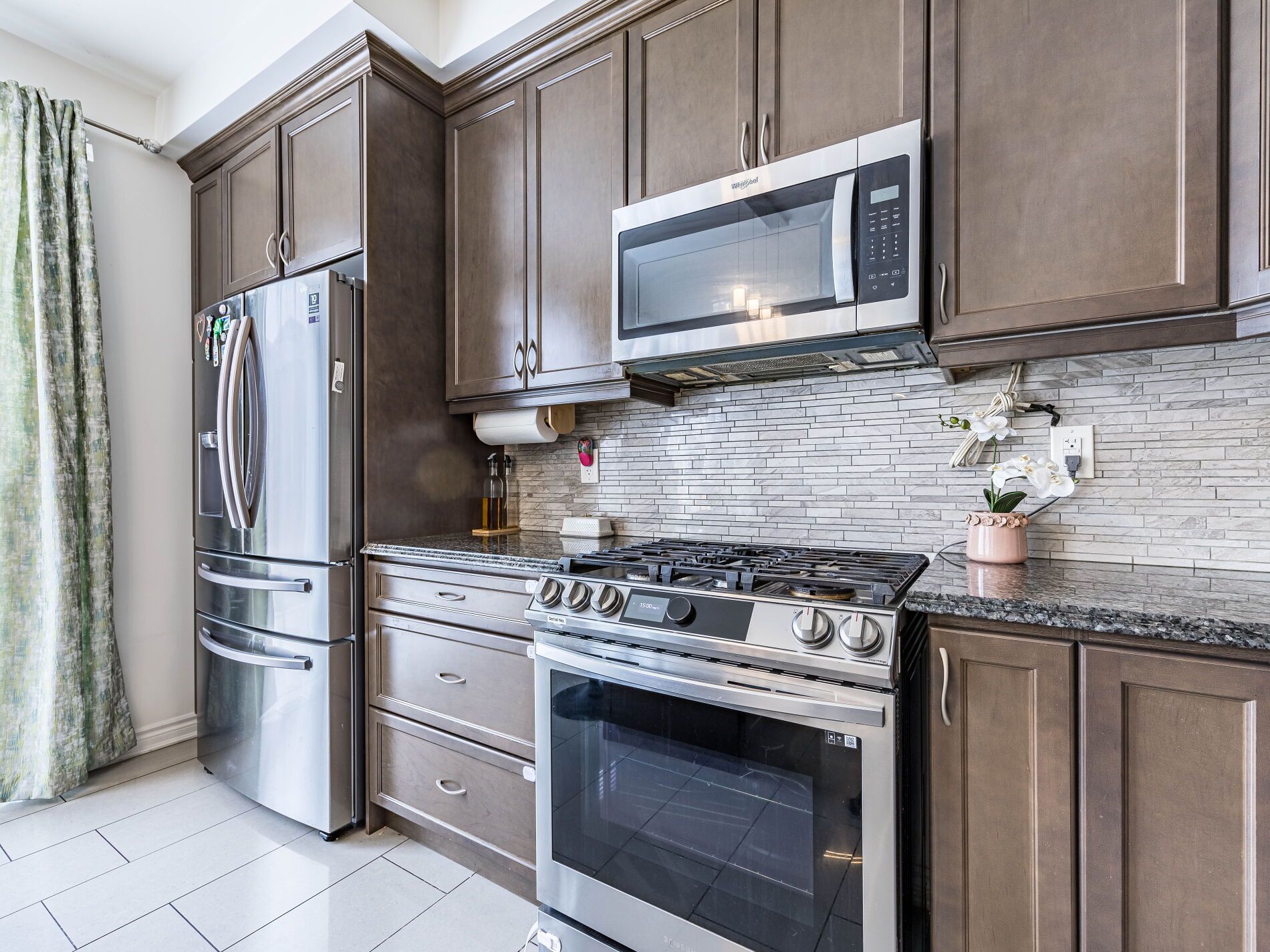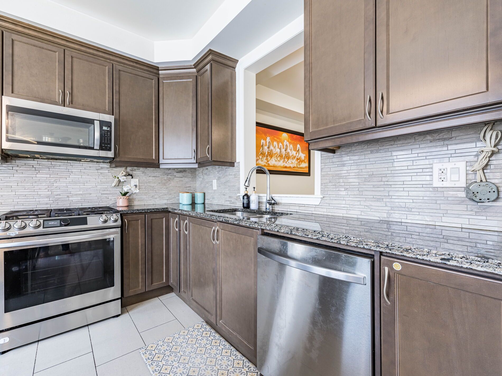 • Modern kitchen with granite countertops and premium stainless steel appliances.