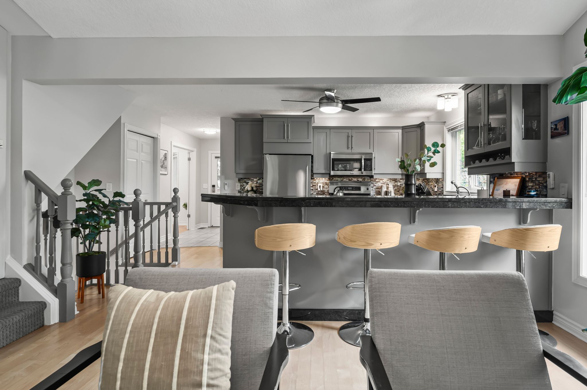 Prime uptown waterloo location - rare freehold end-unit with in-law suite! Welcome to this exceptional 4 bedroom, 3 bath freehold end-unit townhouse located in the heart of prime uptown waterloo-just steps from the lrt, top restaurants, and all the amenities that make this area so desirable. Truly a rare find, this bright, spacious, and meticulously maintained home offers unmatched flexibility, charm, and convenience. One of the standout features is the fully separated in-law suite with a private entrance from the side yard-ideal for extended family, guests, or potential rental income. With no monthly fees, this freehold property offers outstanding value in one of waterloo's most vibrant neighborhoods. The thoughtfully designed layout includes a main floor primary bedroom with a large bathroom featuring a whirlpool tub and separate shower, second bedroom on main floor currently used as dining room, upstairs, you'll find a generously sized bedroom and a full bath, perfect for family or visitors. Enjoy the comfort of a double-wide driveway with additional street parking, a private backyard, and a vaulted-ceiling family room that brings in an abundance of natural light complimented with a gas fireplace . Additional highlights include a covered front porch, generator rough-in for peace of mind, and timeless architectural details throughout. Don't miss this absolutely one-of-a-kind opportunity to own a versatile and beautifully appointed home in one of the region's most sought-after locations. Roof 2010, furnace 2016