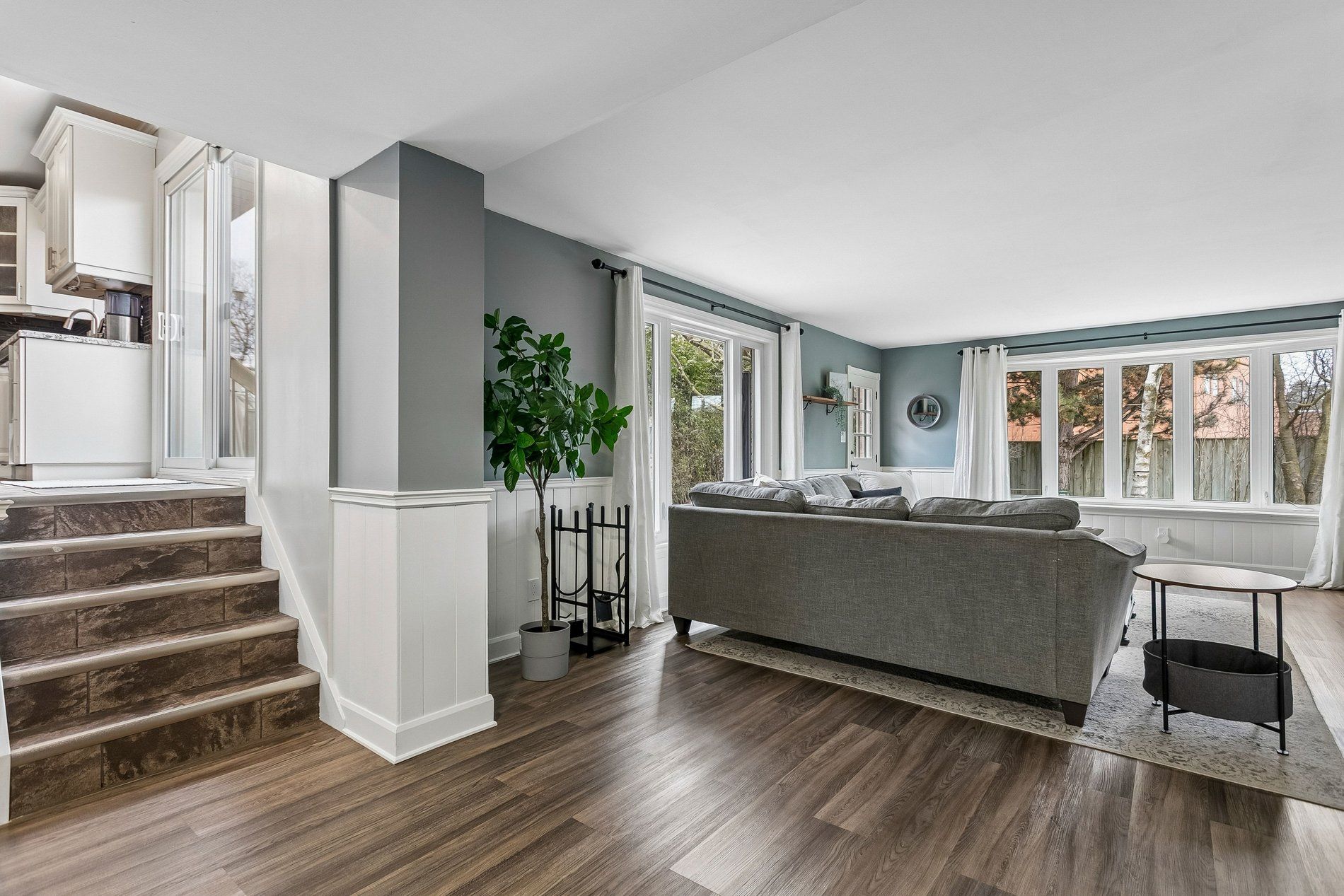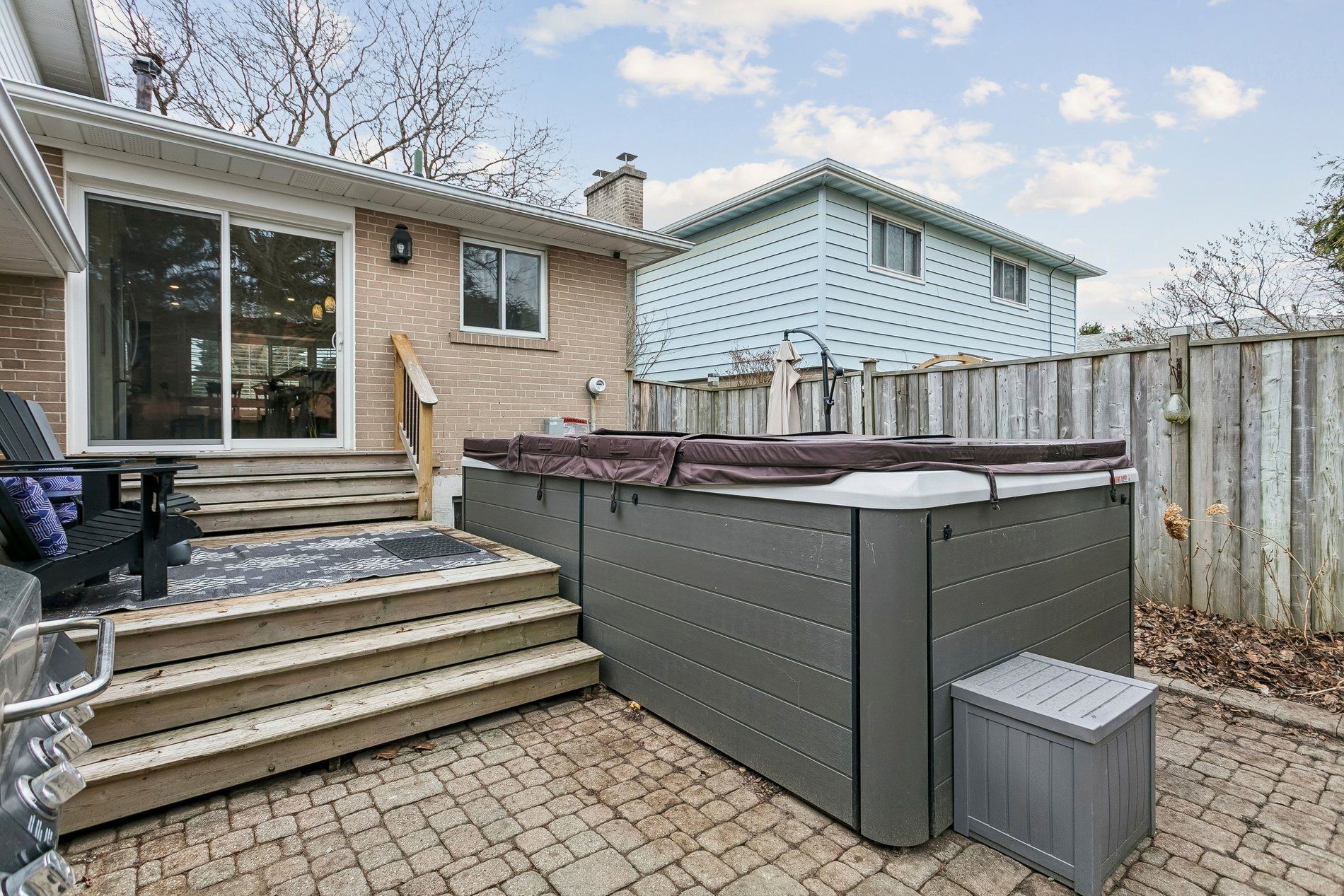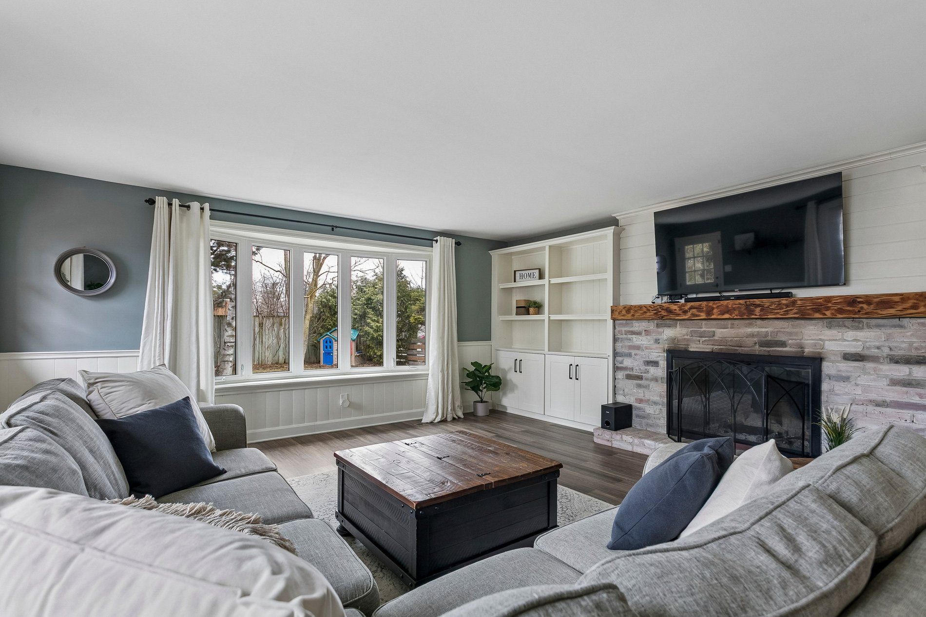 Welcome to 12 ferndale - a warm and inviting home tucked onto a quiet, family-friendly crescent in the sought-after peel village community, with no neighbours behind and backing onto the park path. Freshly painted and filled with natural light, this home offers a bright, airy feel throughout with large windows in every room. The spacious kitchen and dining area is perfect for everyday living and entertaining, featuring granite countertops, ample cabinetry, stainless steel appliances, a gas stove, and a walkout to the backyard. The true standout is the above-grade family room - a stunning great room surrounded by windows, complete with custom built-in cabinetry and a cozy wood-burning fireplace. From here, step out to your private patio and fully fenced yard with mature trees and a beautiful 12 ft swim spa (master spa - 2020). Upstairs offers three bedrooms, while the finished basement includes above-grade windows, adding to the home's bright and functional layout. Tastefully updated throughout, this home offers move-in ready comfort with room for a new owner to make it their own. Additional features include interior garage access, furnace (2022), and a/c (2023), vinyl flooring (2023) dishwasher (2022), 100 amp electrical panel (2022). A truly special home in a great community-focused neighbourhood - just a short walk to all local schools,close to transit, shopping, and 400-series highways.