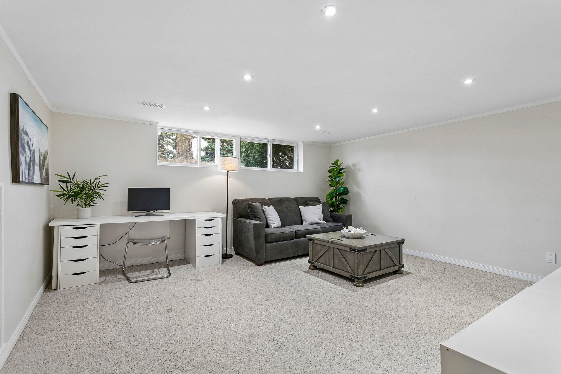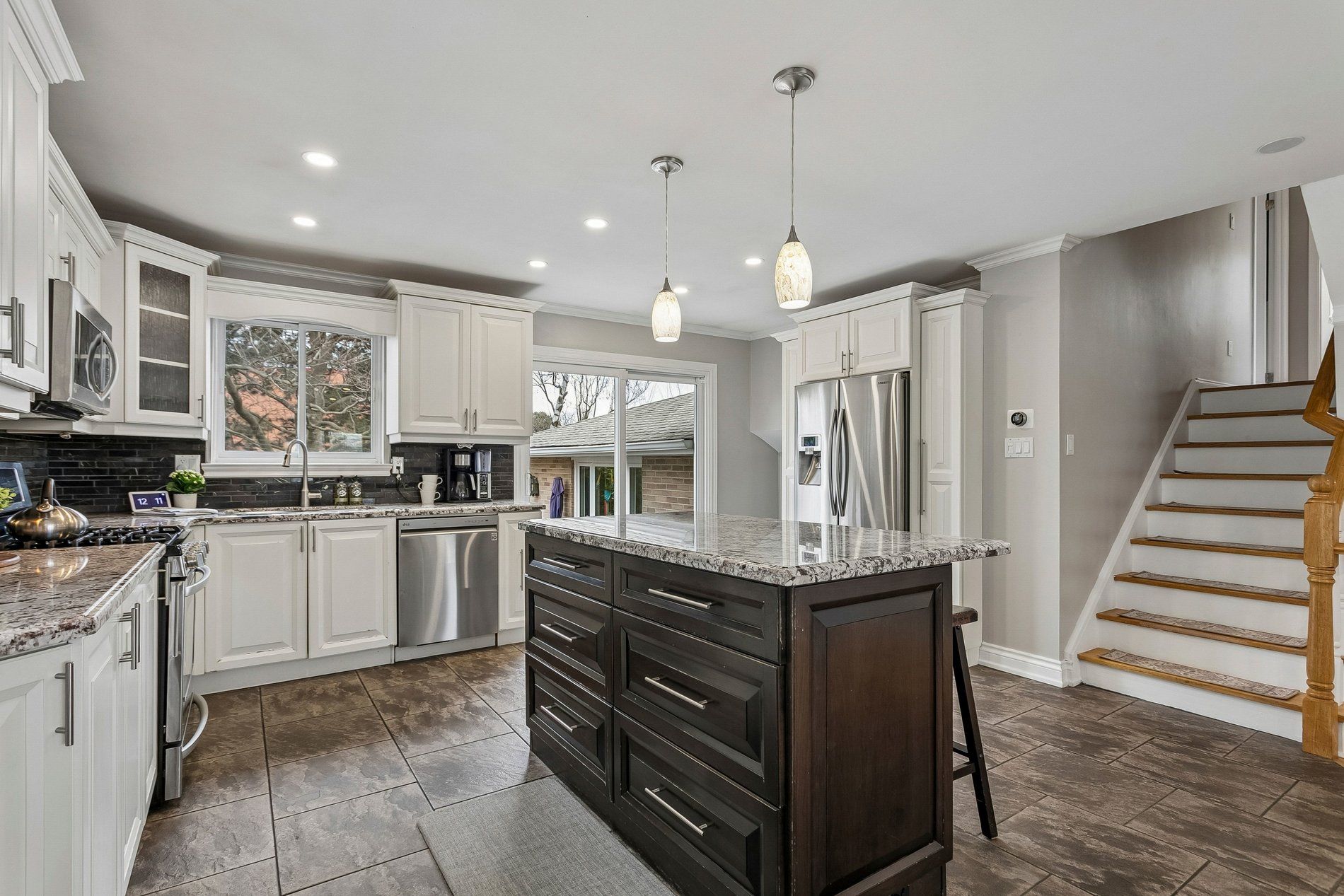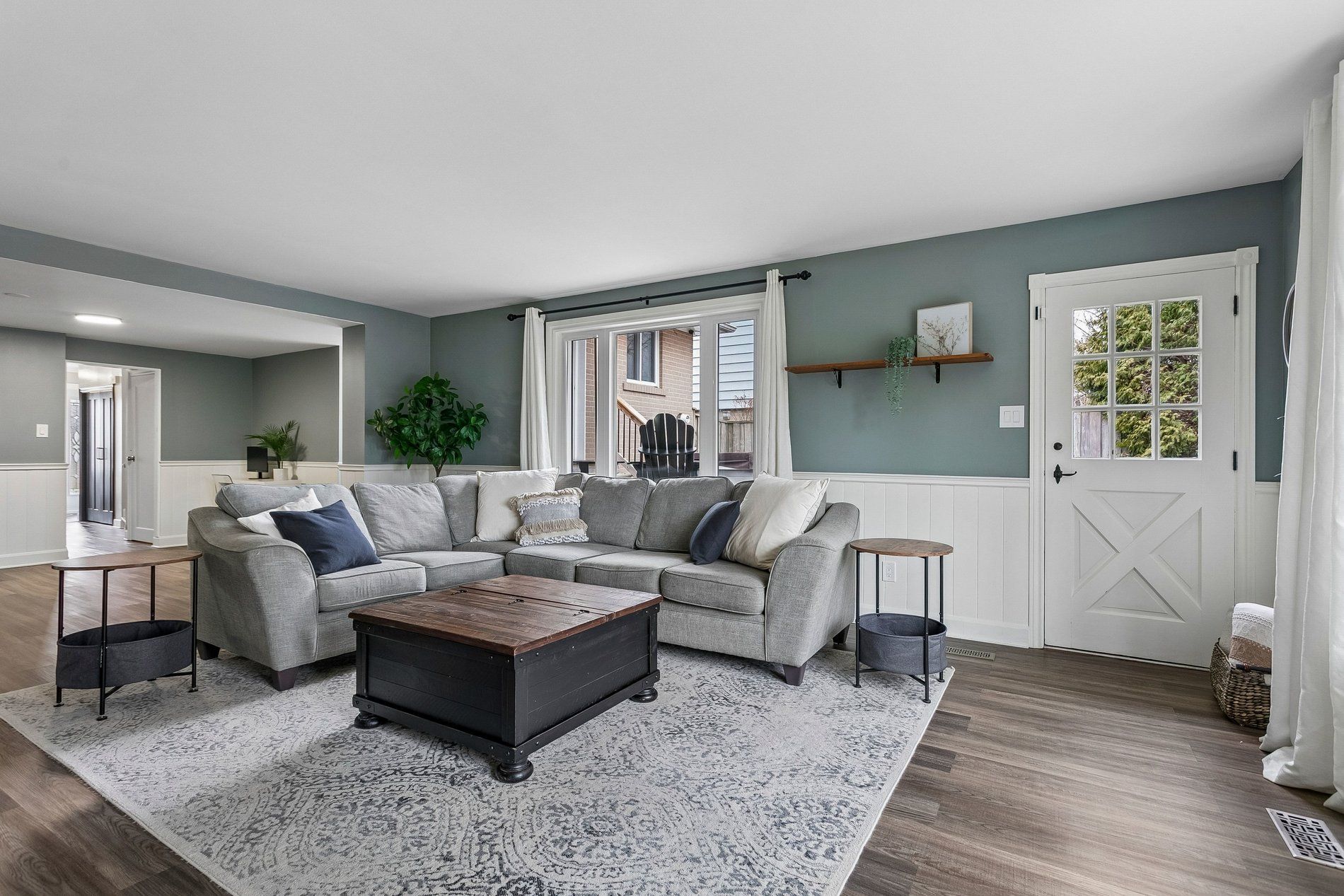 Welcome to 12 ferndale - a warm and inviting home tucked onto a quiet, family-friendly crescent in the sought-after peel village community, with no neighbours behind and backing onto the park path. Freshly painted and filled with natural light, this home offers a bright, airy feel throughout with large windows in every room. The spacious kitchen and dining area is perfect for everyday living and entertaining, featuring granite countertops, ample cabinetry, stainless steel appliances, a gas stove, and a walkout to the backyard. The true standout is the above-grade family room - a stunning great room surrounded by windows, complete with custom built-in cabinetry and a cozy wood-burning fireplace. From here, step out to your private patio and fully fenced yard with mature trees and a beautiful 12 ft swim spa (master spa - 2020). Upstairs offers three bedrooms, while the finished basement includes above-grade windows, adding to the home's bright and functional layout. Tastefully updated throughout, this home offers move-in ready comfort with room for a new owner to make it their own. Additional features include interior garage access, furnace (2022), and a/c (2023), vinyl flooring (2023) dishwasher (2022), 100 amp electrical panel (2022). A truly special home in a great community-focused neighbourhood - just a short walk to all local schools,close to transit, shopping, and 400-series highways.
