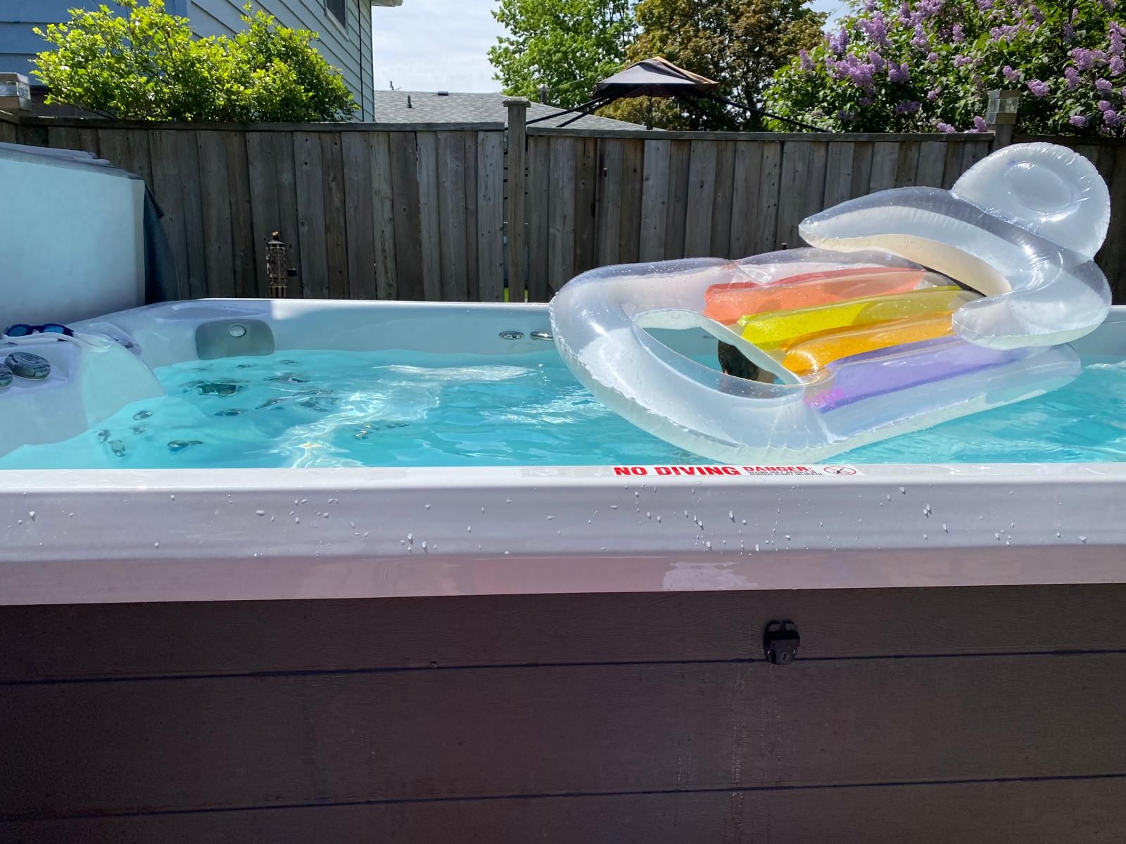 • Private patio and fenced yard featuring a 12 ft swim spa for relaxation.