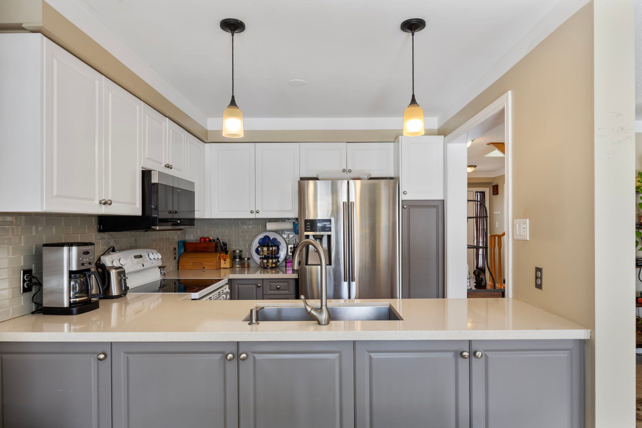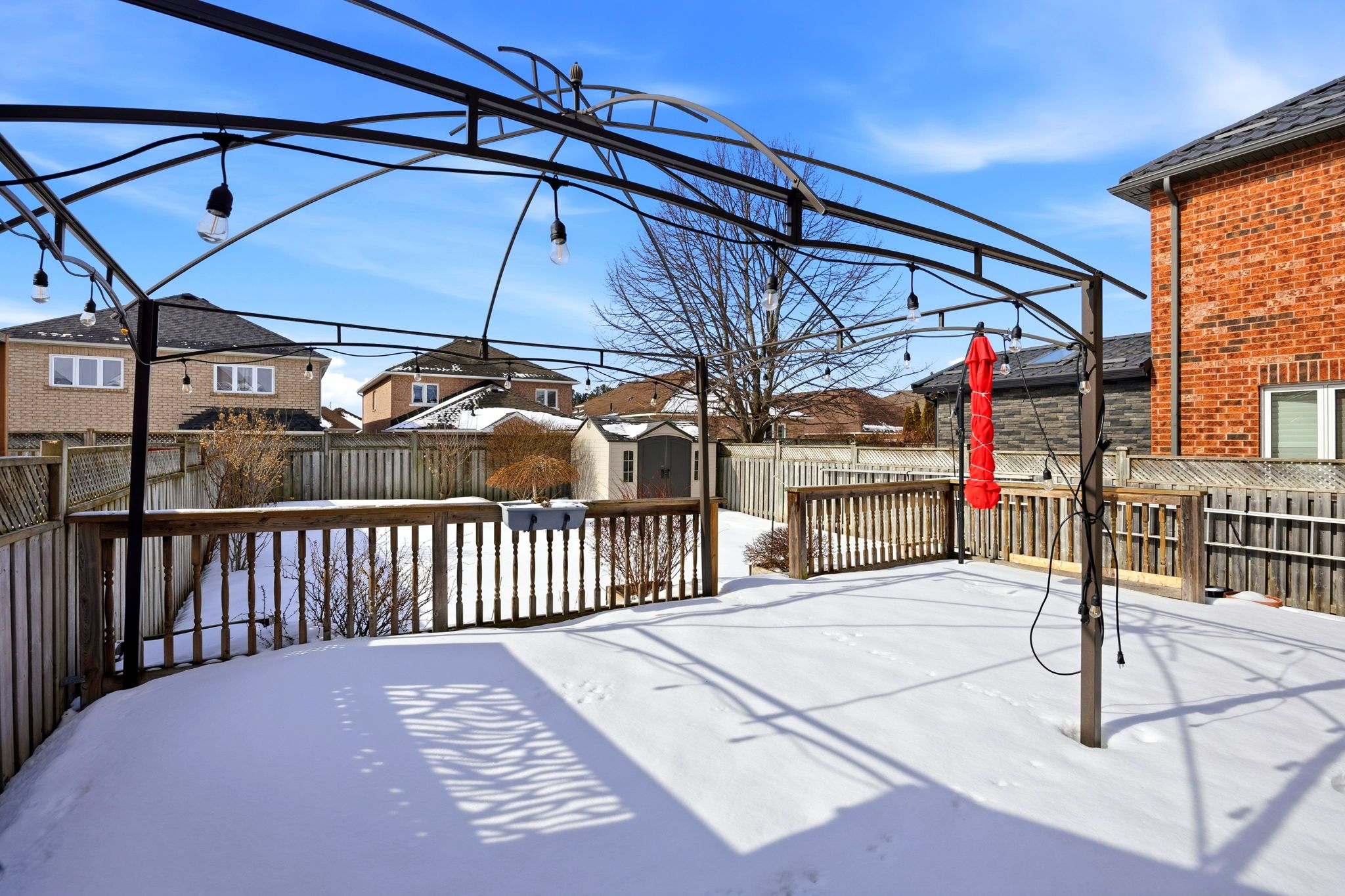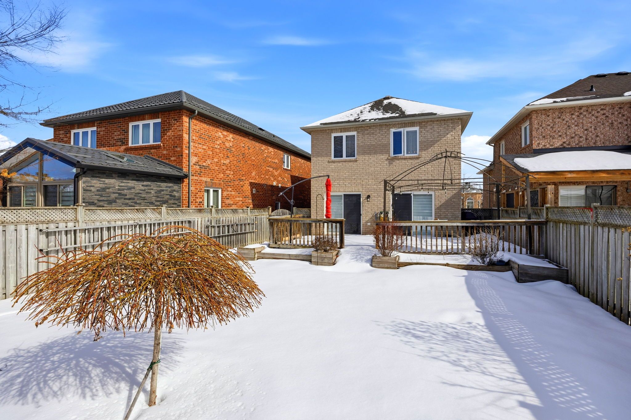 Welcome home to this meticulously maintained, detached solid brick residence in whitby's desirable taunton north community! Offering 3 bedrooms and 2. 5 bathrooms, this move-in-ready property is perfect for families, first-time buyers, or those looking to downsize. Step inside to a bright, sun-filled open concept layout designed for modern living. The spacious living room invites relaxation with its cozy gas fireplace, while the kitchen impresses with quartz countertops, a double sink, and a built-in dishwasher. A main floor powder room adds everyday convenience. A direct entry from the garage ensures ease and security. Entertain effortlessly on the expansive deck, complete with a gazebo, accessed directly from the dining room. It overlooks a beautifully landscaped, fenced, and private backyard - personal oasis. The second floor hosts three good-sized bedrooms and a well-appointed 4-piece main bathroom. The primary suite provides a serene escape with its walk-in closet and private 3-piece ensuite. Additional living space can be found in the finished basement, featuring a versatile rec room, laundry area, and cold storage. This home is move in ready! Updates include: roof, windows, furnace, central air conditioning, garage door & electric garage door opener with remote, driveway widening/interlock, hardwood floors on second level. Enjoy an unbeatable location, just a short walk to schools, parks, trails, public transit, a recreation centre, and shopping. Commuting is a breeze with highways 412, 407 and 401 just minutes away.