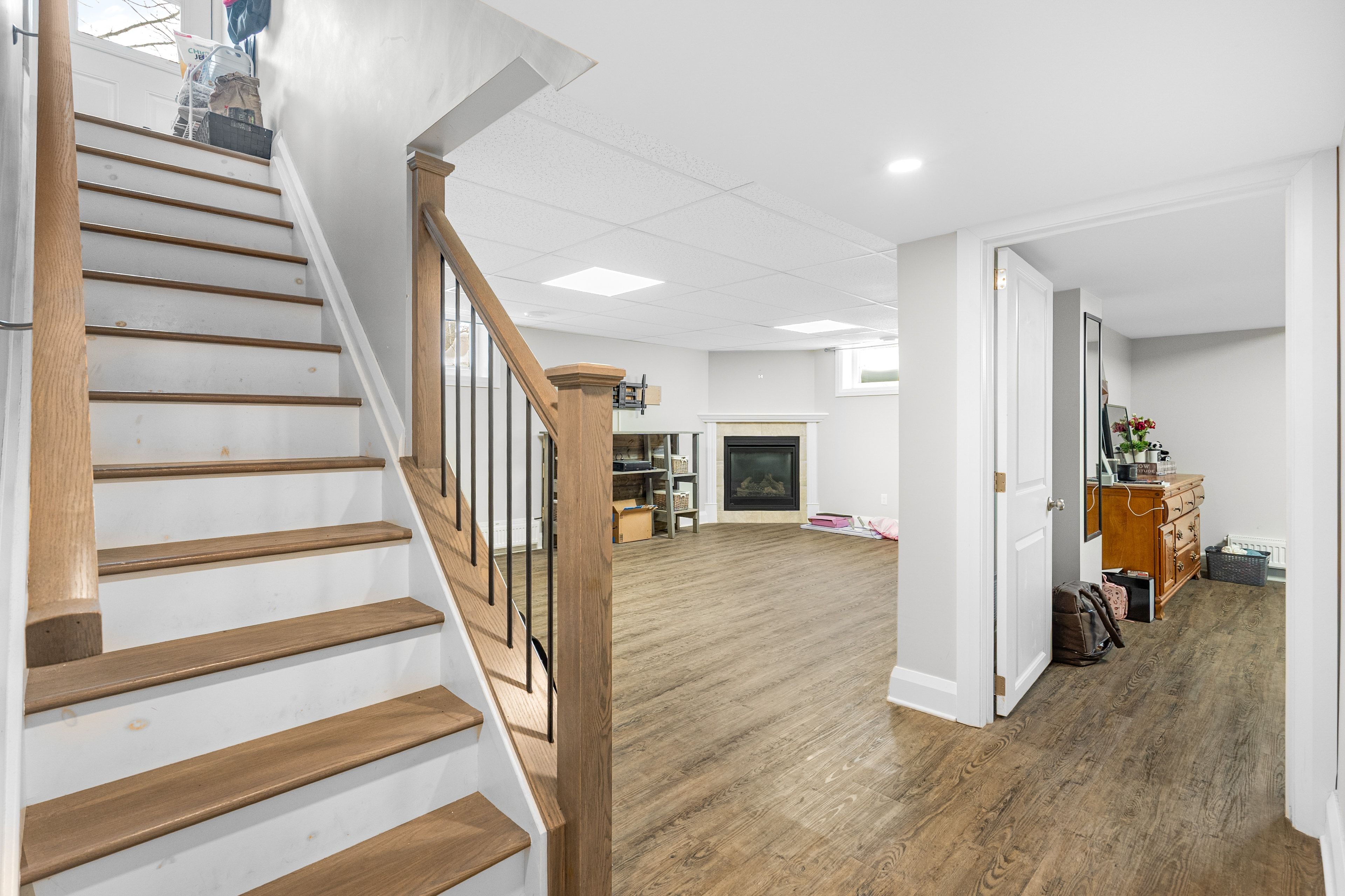 • Finished lower level featuring a home office and cozy gas fireplace.